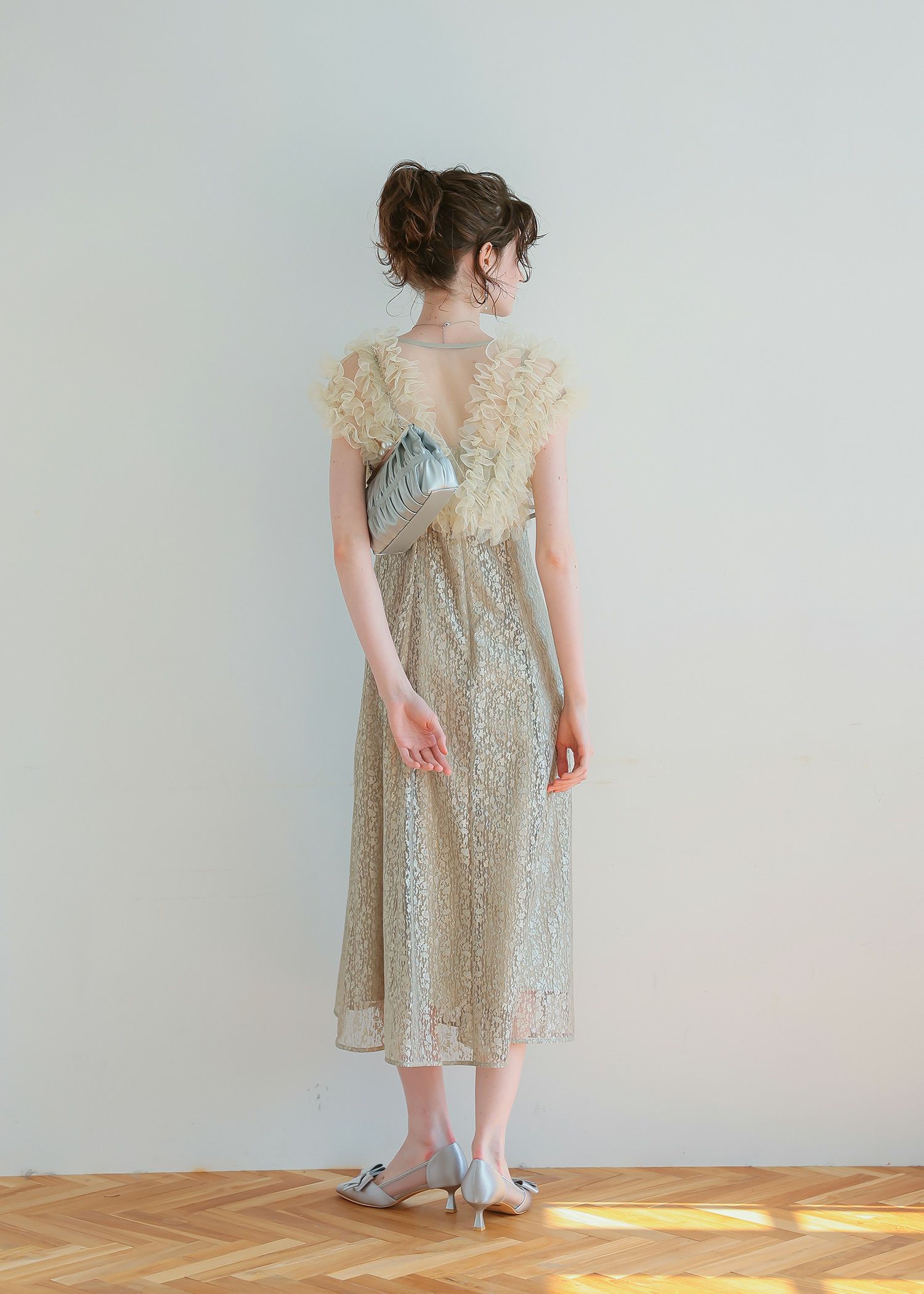 商品説明 ボリュームのあるフリルデザインと繊細なディテールが魅力の ボレロとワンピースがセットになったドレス。 フロントに施された繊細なチュールフリルがふんわりと肩を包み込み 二の腕をさりげなくカバー。 軽やかな透け感が上品な抜け感を与え、エレガントな雰囲気に。 ワンピースは抽象的な珍しい柄がアクセントとなり 光の角度によってラメがさりげなく煌めくため、派手になりすぎないデザインに。 身体のラインを拾いすぎず縦のラインをスッキリ見せてくれるため、脚長効果も期待できます。 ワンピースとボレロは分かれており、それぞれ単体での着用が可能です。 ※商品画像は、光の当たり具合やパソコンなどの閲覧環境により、 実際の色味と異なって見える場合がございます。予めご了承ください。 屋外の写真は通常より明るく見えています。 おすすめのシーン 結婚式・1.5次会・二次会・披露宴・お呼ばれ・成人式・同窓会 女子会・2次会謝恩会・パーティー・デート・演奏会・お食事会・ 発表会など多様なシーンのコーディネートに使えます。 商品詳細 【備考】 〈ボレロ〉 ・裏地なし ・透け感あり 〈ワンピース〉 ・裏地あり ・伸縮性なし ・後ろ背中部分ゴム入り ・背中心ファスナー 原産国:中国 お問い合わせ品番:25628 着用モデル身長176cm 着丈バストウエストヒップ肩幅 ワンピース12382~9178100-- ボレロ3296----48 単位(cm) ▼着用サイズ Mサイズ model 身長 176cm ▼着用サイズ 全てMsize staff着用/身長153cm(グリーン・ブラック) staff着用/身長160cm(ベージュ) お問い合わせ品番:25628 着丈ガイド REVIEW レビュー