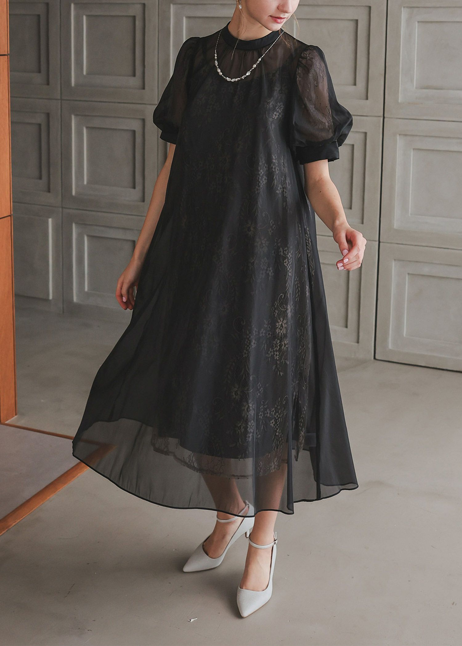 シアーオーバーワンピースと、レースキャミワンピのレイヤードセット商品です。