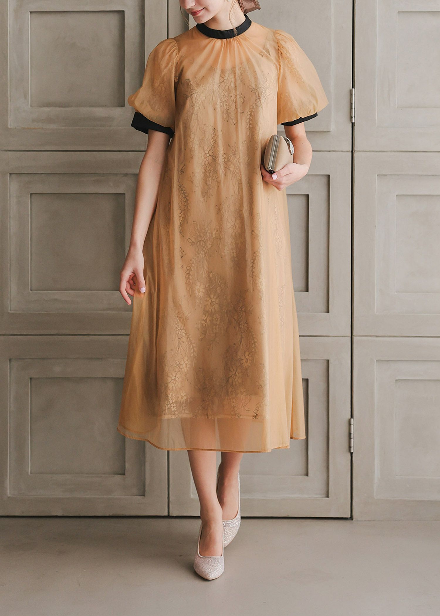 袖はボリュームのあるパフスリーブで二の腕をカバー◎