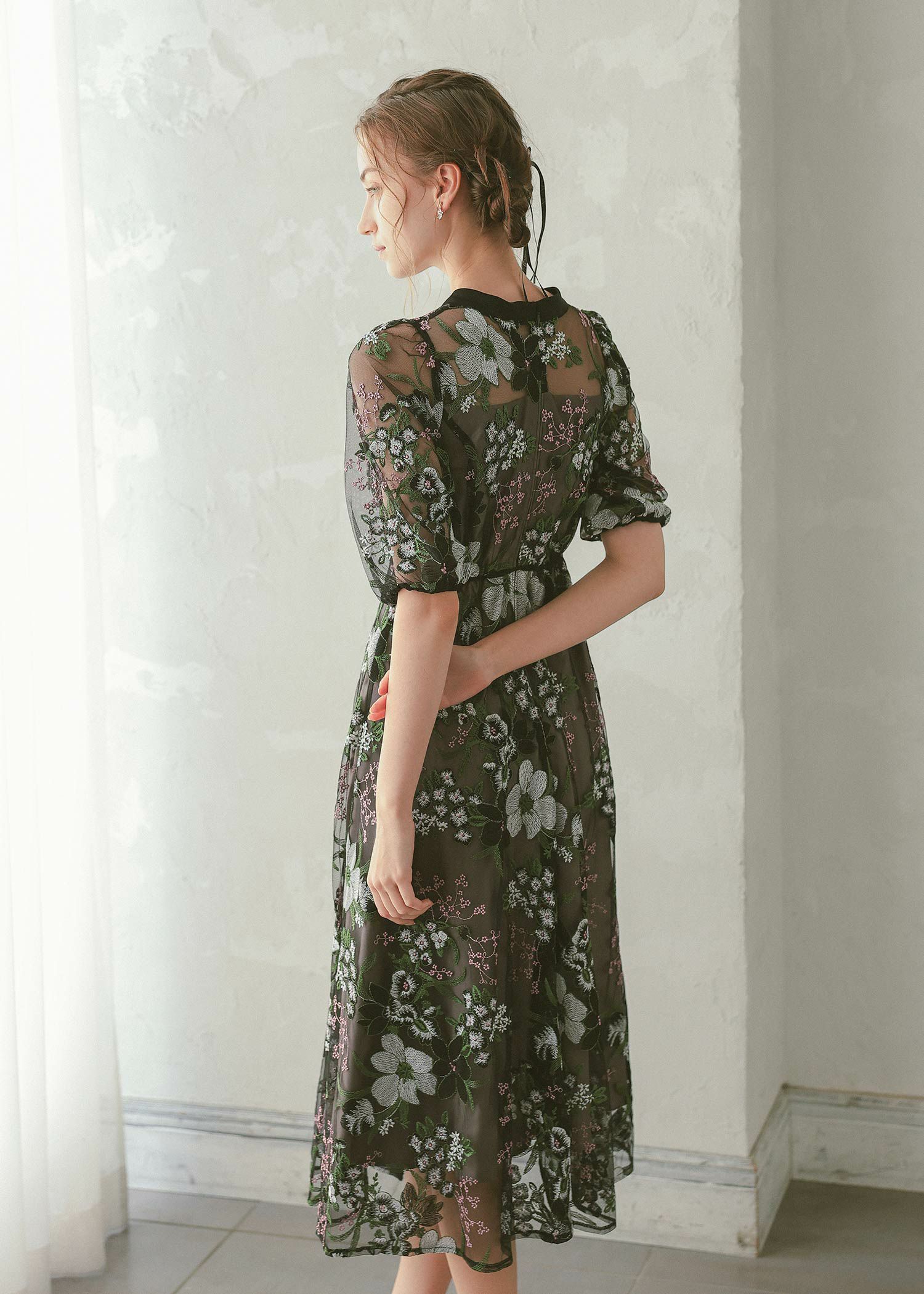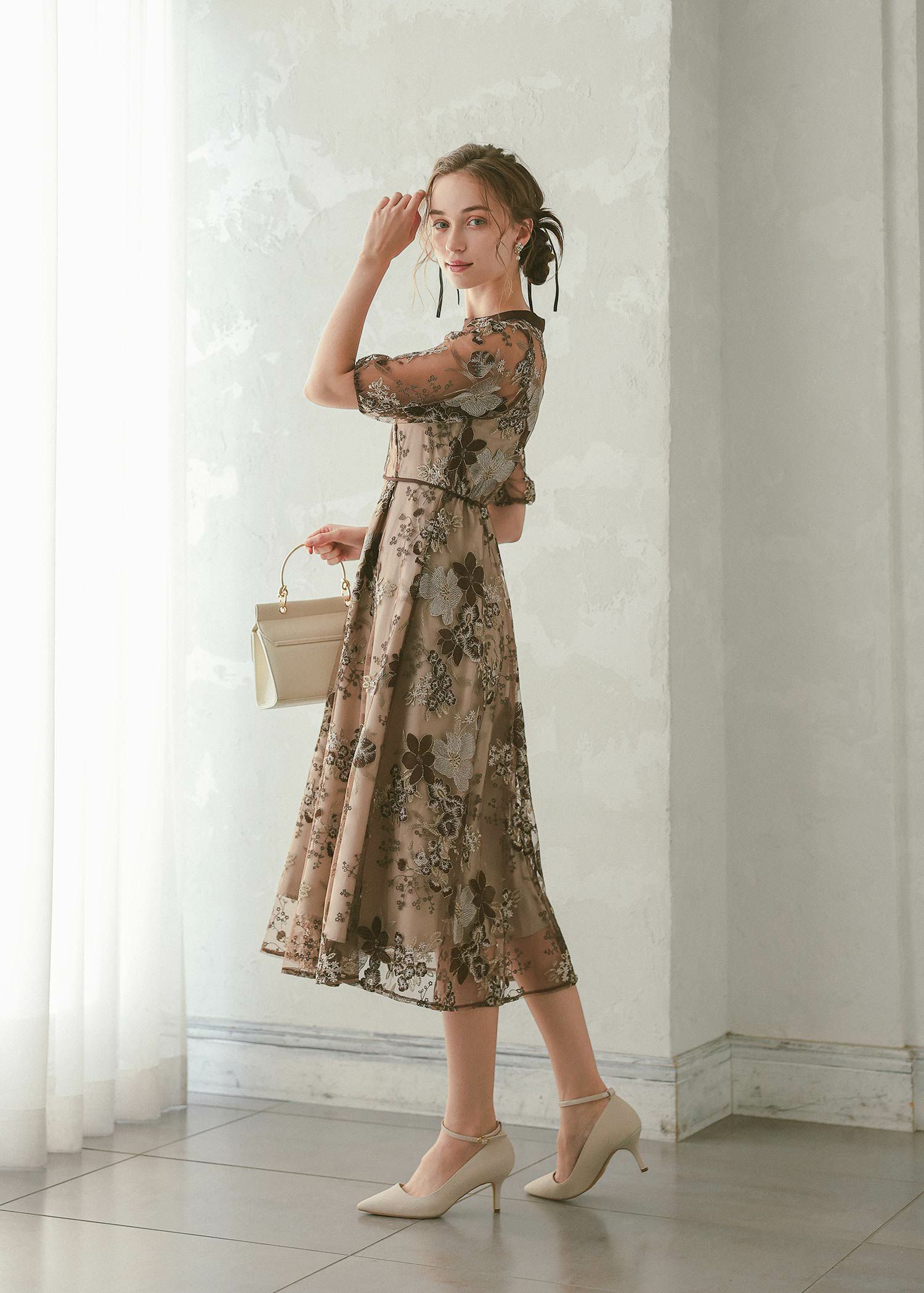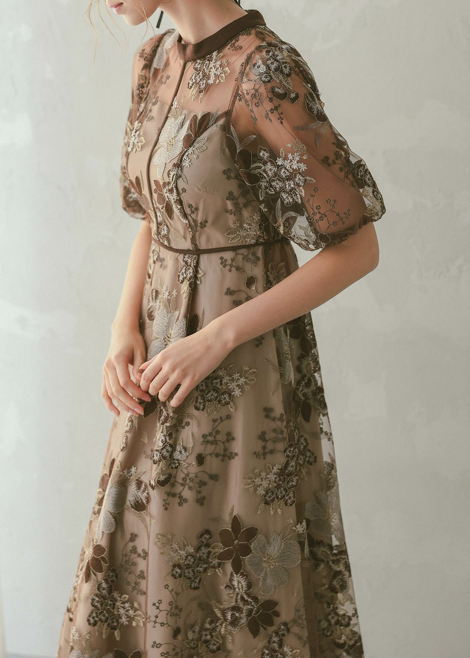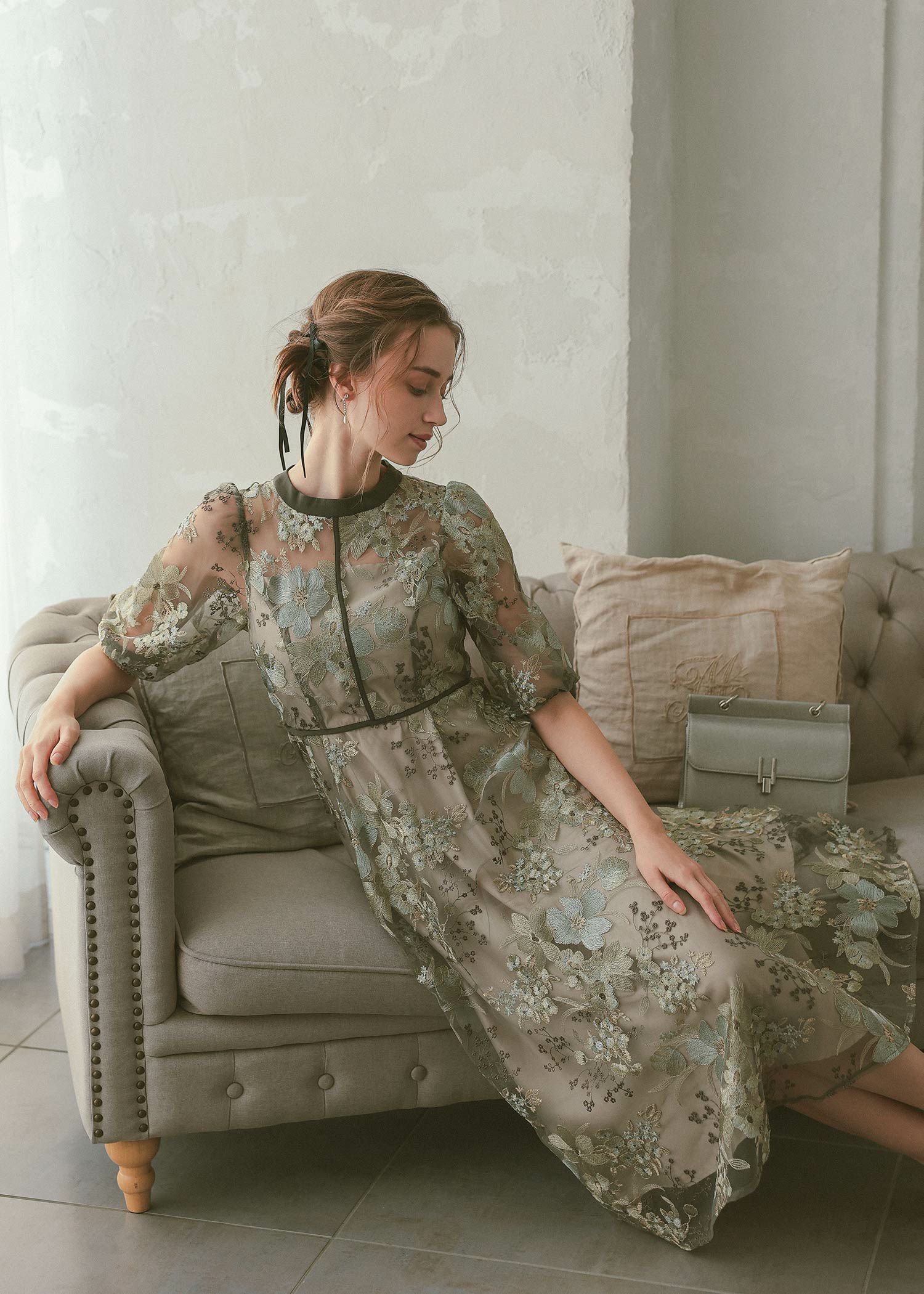 華やかで可憐な花柄刺繍を全体的にほどこし、