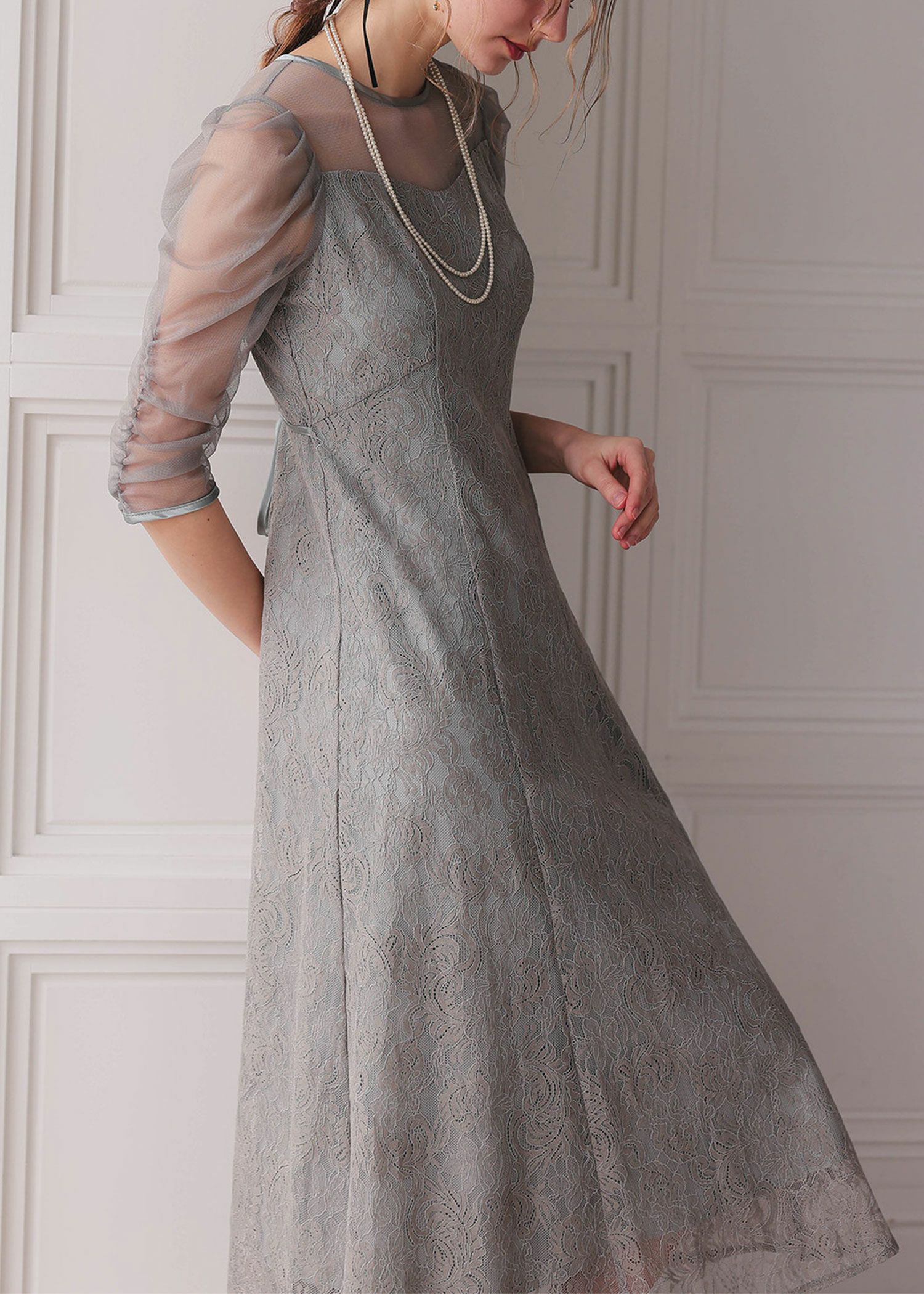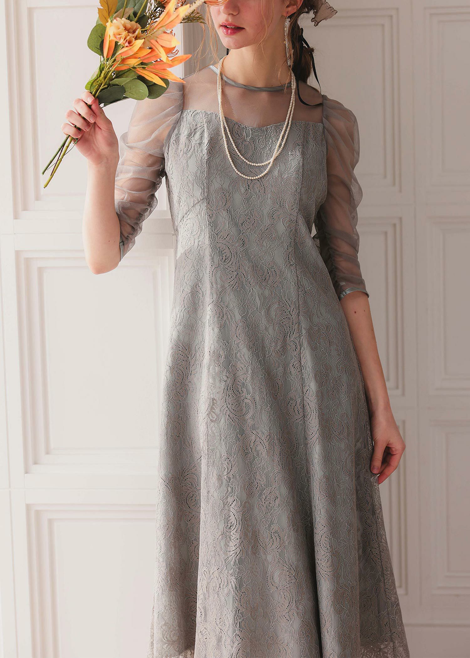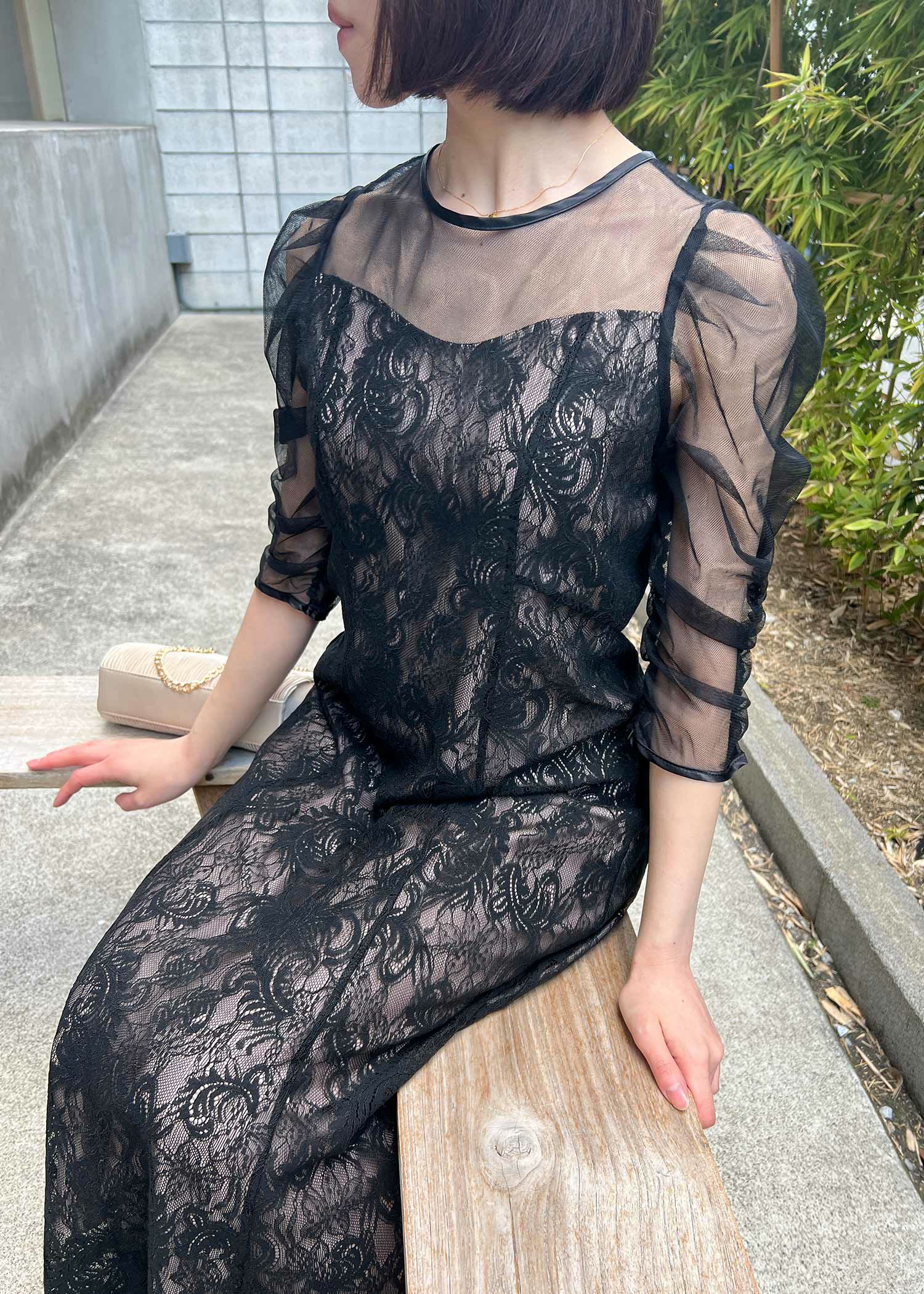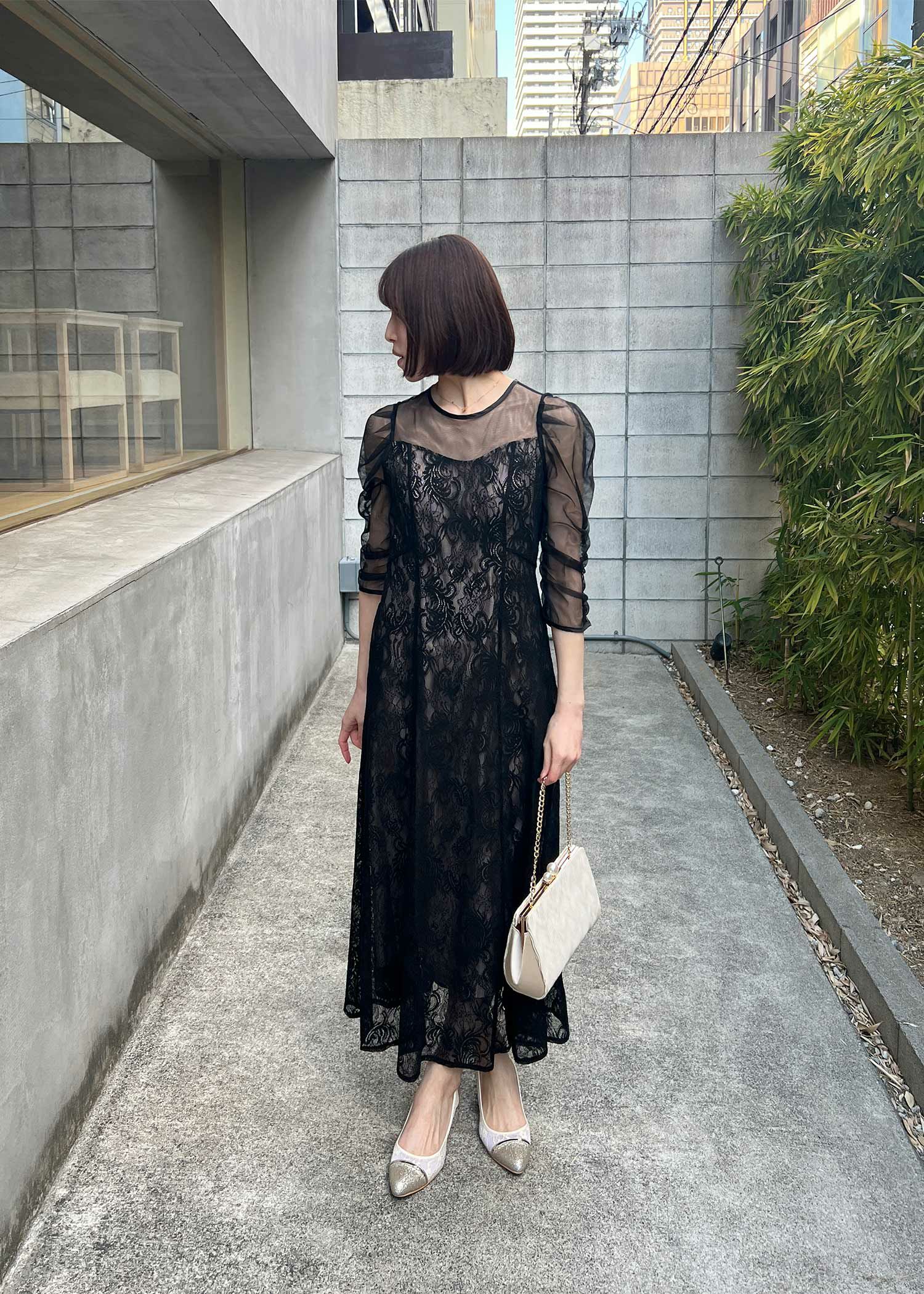 オリジナル柄レース×プリーツワンピース