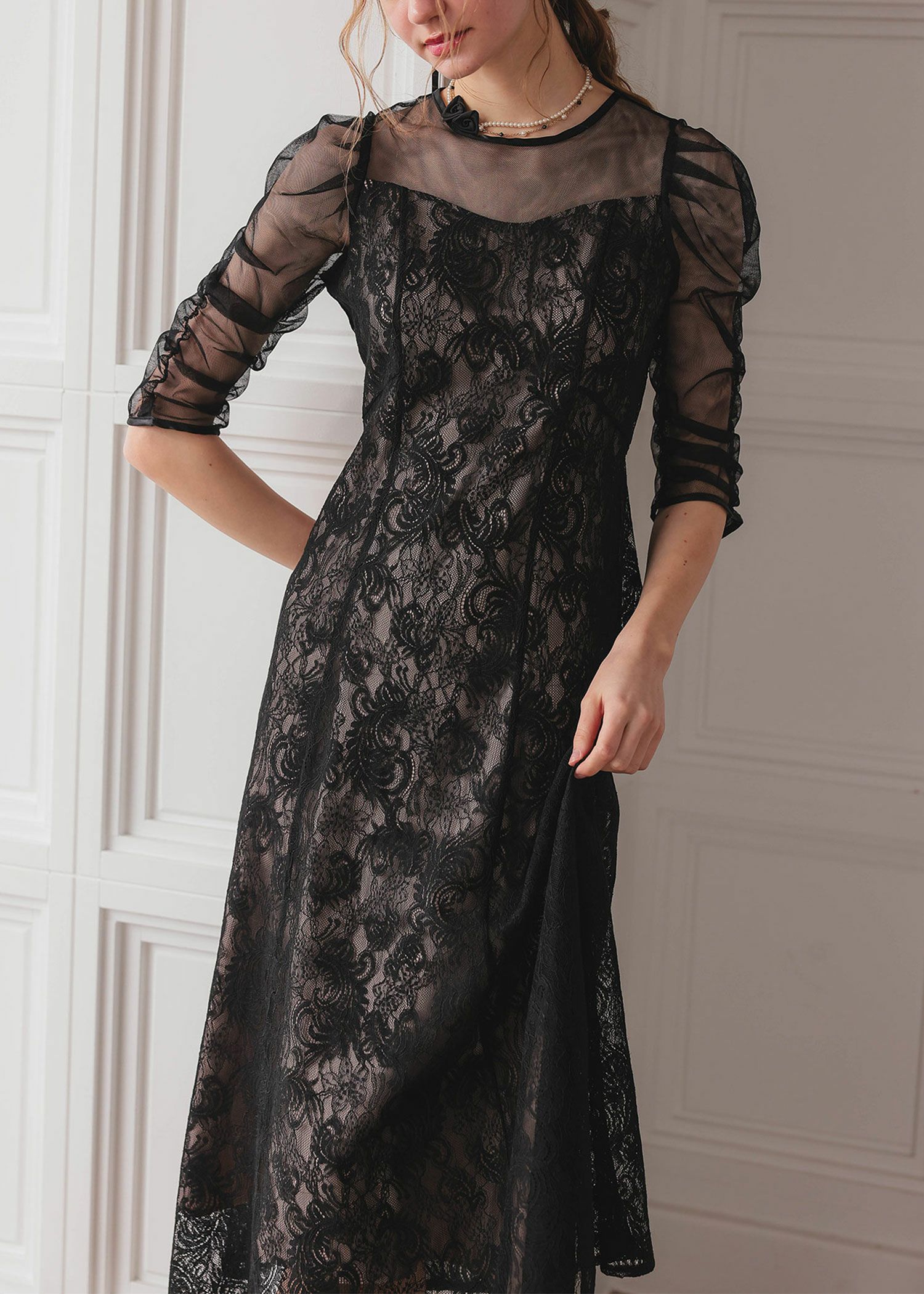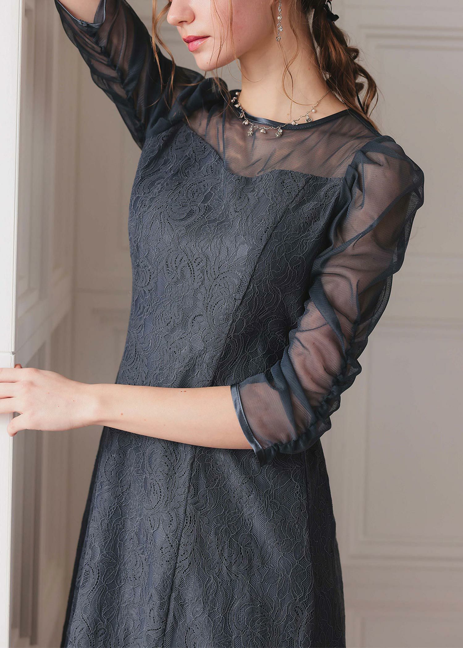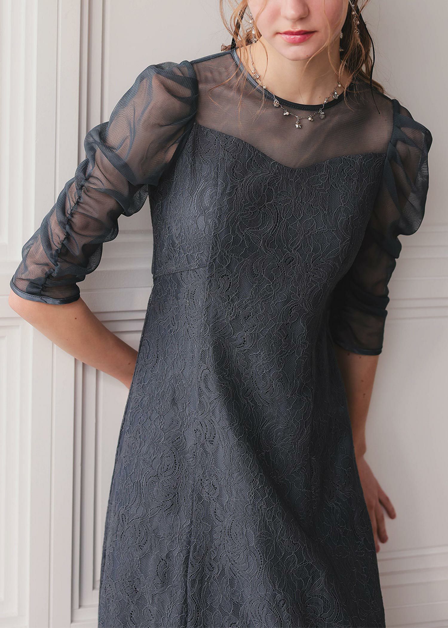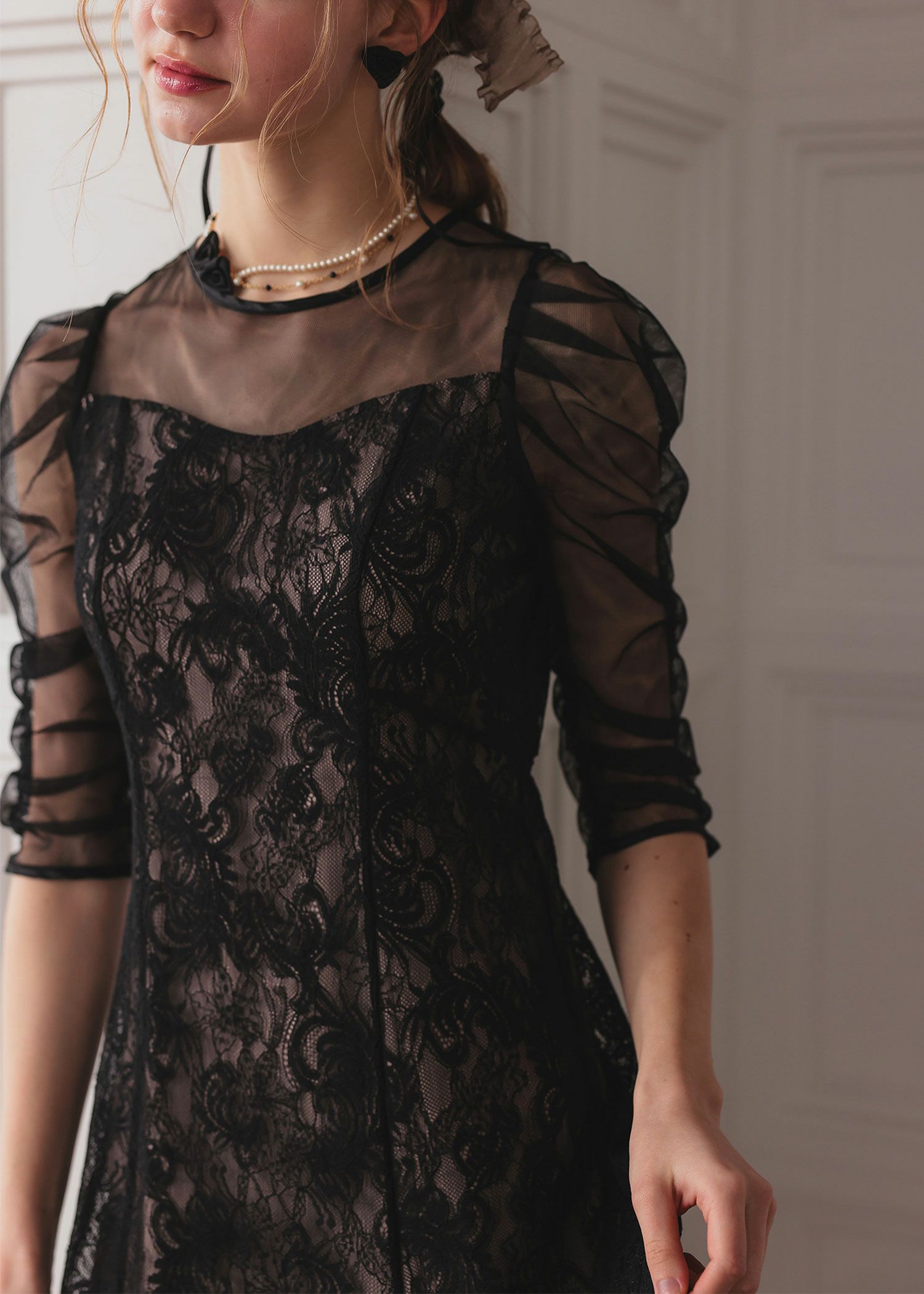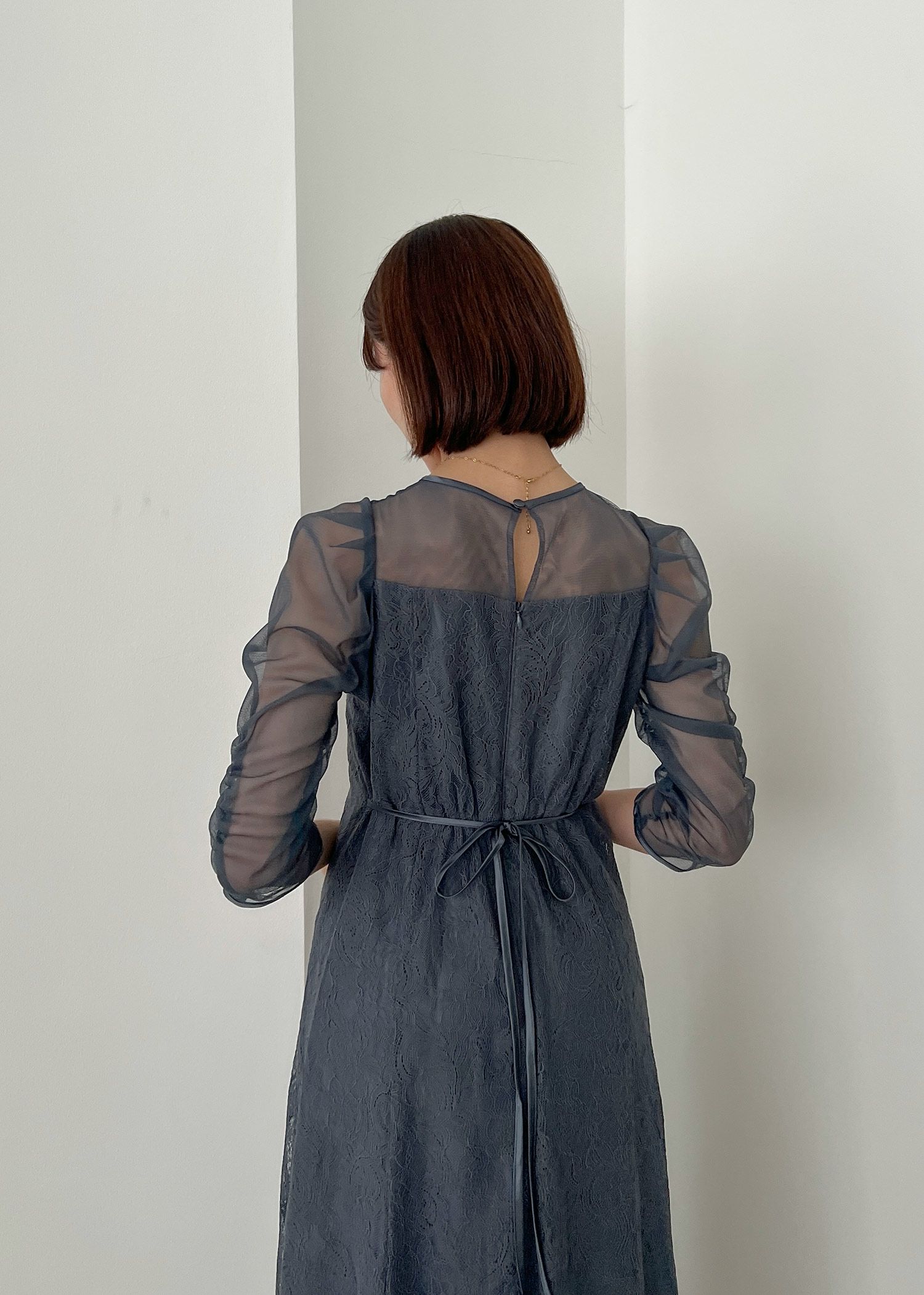 オリジナル柄レース×プリーツワンピース
