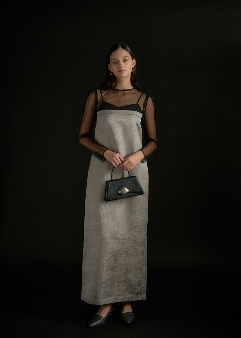 こなれ感を演出するレイヤード風デザインが魅力のジャガードドレス。