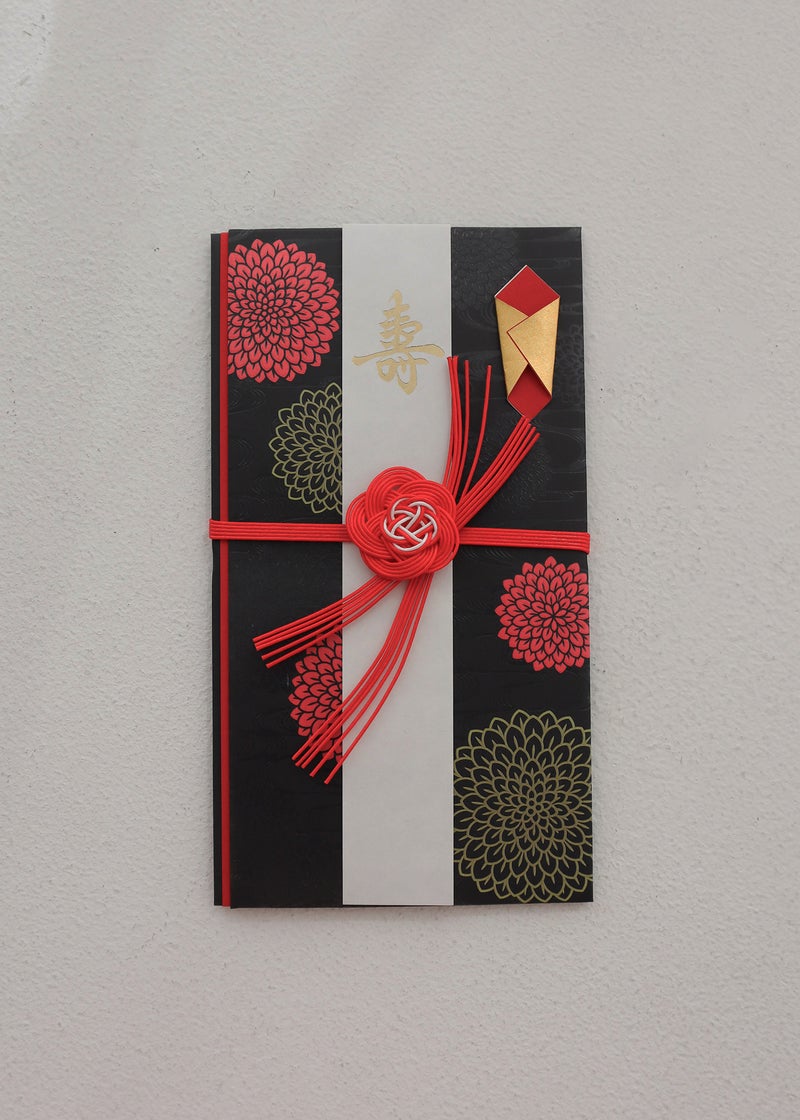 商品説明 艶やかな黒地に咲く大輪の菊と、金箔の「寿」が格調高く映える祝儀袋。 花の形に結ばれた紅白の水引は、ご縁を結ぶ想いを美しく表現します。 上品さの中に華やぎを添え、結婚祝いはもちろん、特別なお祝いの席にもふさわしい佇まい。 手にした瞬間から“きちんと感”が伝わり、大切な気持ちをより印象的に届けます。 贈る相手の記憶に残る、ワンランク上の一枚です。 ※商品のカラーは照明の関係で実物と多少の違いが生じることがございます。 ■Select Brand【MARUAI】 【商品付属品】 ・本体1枚 ・中袋1枚 ・短冊3枚(壽/ご結婚祝い/無地) 原産国 ベトナム お問い合わせ品番:25193