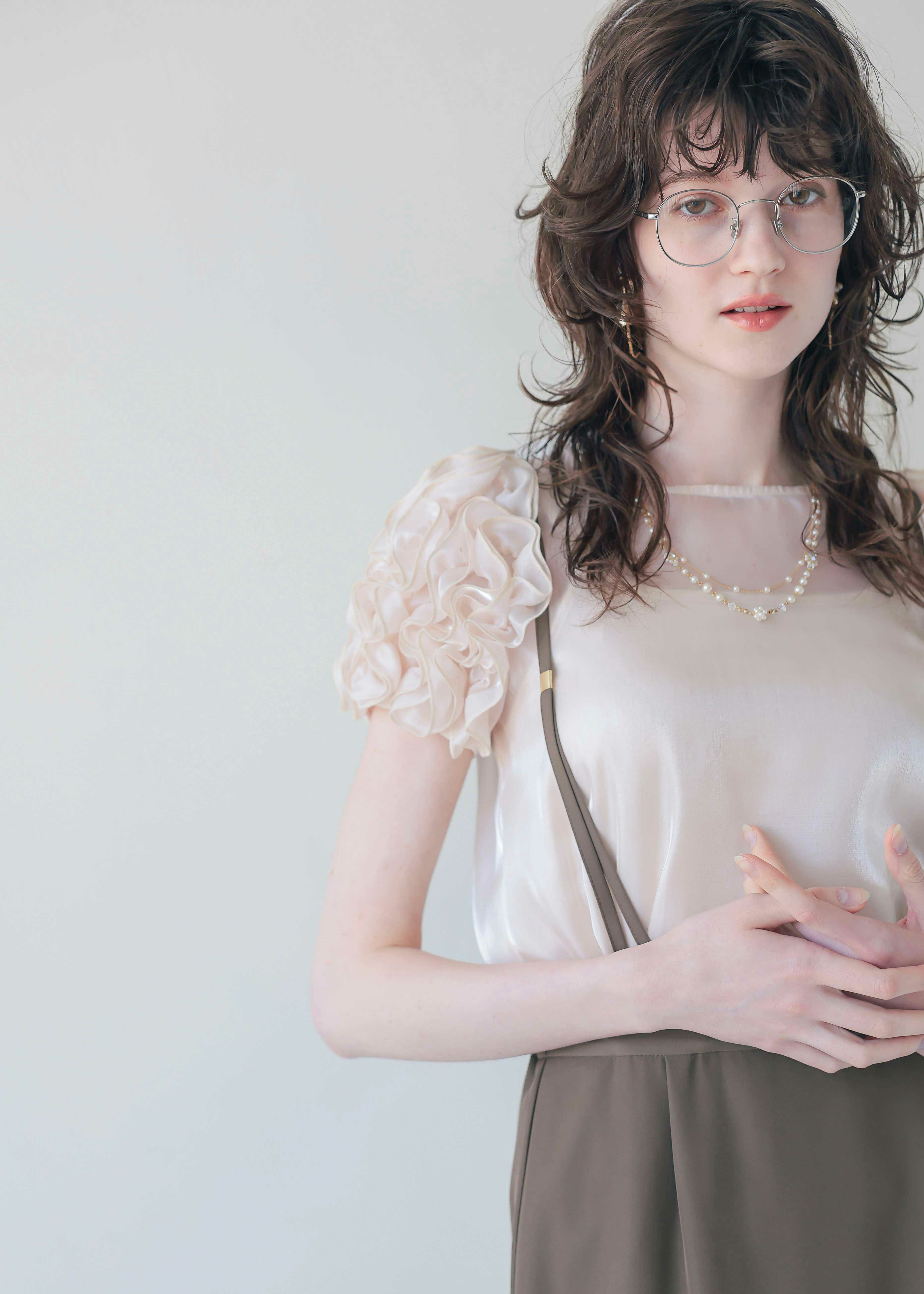 商品説明 トレンド感のあるシアー素材を使用したフリルディテールが魅力のエアリーなブラウス。 肩のフリルが二の腕をカバーしつつ華やかさをプラスし抜け感あるシルエットに。 上品な艶感のあるオーガンジー素材で女性らしさを演出。 カジュアルにもキレイめにもマッチする上品な素材です。 キャミドレスのインナーや、セットアップアイテムと合わせて頂くのがおすすめです。 また、綺麗めにペンシルスカートやタックパンツと合わせたり デニムなどでカジュアルに合わせて、オンオフで着回しが効く嬉しいアイテムです♪ ※ハンガー掛けの商品画像が実際の商品のお色味に近くなっております。 ※商品画像は、光の当たり具合やパソコンなどの閲覧環境により、 実際の色味と異なって見える場合がございます。予めご了承ください。 モデル着用サイズ 174cm/Mサイズ おすすめのシーン カジュアルな結婚式・二次会・お呼ばれ・成人式・同窓会・ 女子会・謝恩会 パーティー・演奏会・お食事会など多様なシーンのコーディネートに使えます。 商品詳細 【備考】 ・裏地なし ・伸縮性なし ・透け感あり ・後ろ襟ぐり涙あき 洗濯方法:クリーニング店にご相談ください。 ※その他お取り扱いに関しましては、商品に付属のアテンションタグをご覧ください。 原産国:中国 お問い合わせ品番:25181 着用モデル身長--cm