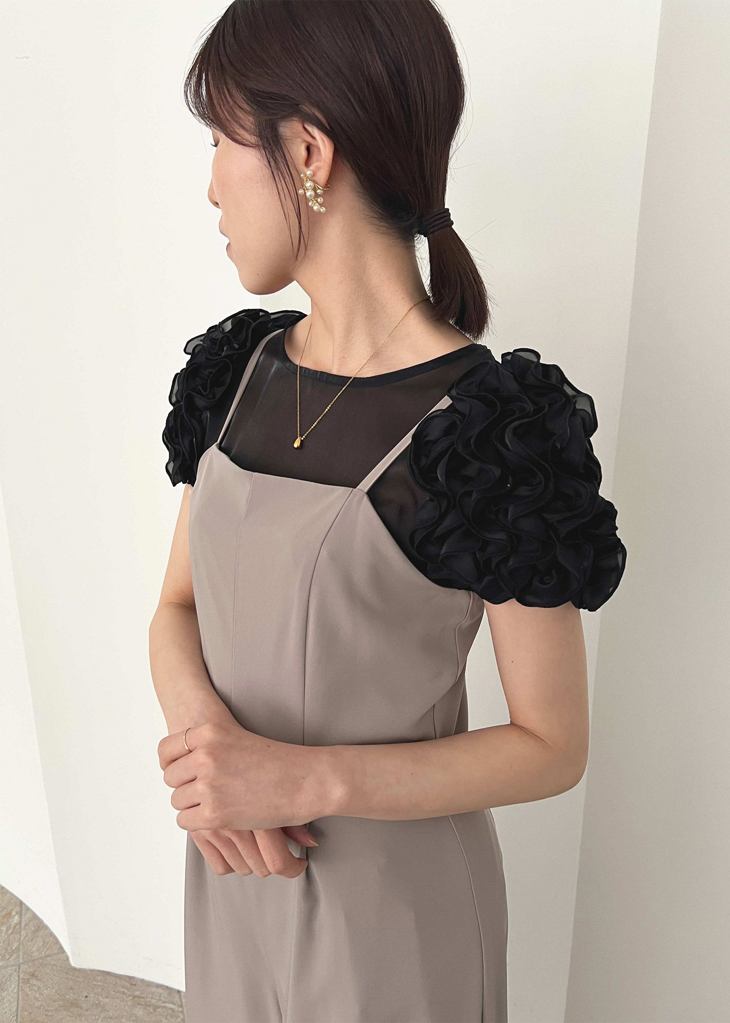 商品説明 トレンド感のあるシアー素材を使用したフリルディテールが魅力のエアリーなブラウス。 肩のフリルが二の腕をカバーしつつ華やかさをプラスし抜け感あるシルエットに。 上品な艶感のあるオーガンジー素材で女性らしさを演出。 カジュアルにもキレイめにもマッチする上品な素材です。 キャミドレスのインナーや、セットアップアイテムと合わせて頂くのがおすすめです。 また、綺麗めにペンシルスカートやタックパンツと合わせたり デニムなどでカジュアルに合わせて、オンオフで着回しが効く嬉しいアイテムです♪ ※ハンガー掛けの商品画像が実際の商品のお色味に近くなっております。 ※商品画像は、光の当たり具合やパソコンなどの閲覧環境により、 実際の色味と異なって見える場合がございます。予めご了承ください。 モデル着用サイズ 174cm/Mサイズ おすすめのシーン カジュアルな結婚式・二次会・お呼ばれ・成人式・同窓会・ 女子会・謝恩会 パーティー・演奏会・お食事会など多様なシーンのコーディネートに使えます。 商品詳細 【備考】 ・裏地なし ・伸縮性なし ・透け感あり ・後ろ襟ぐり涙あき 洗濯方法:クリーニング店にご相談ください。 ※その他お取り扱いに関しましては、商品に付属のアテンションタグをご覧ください。 原産国:中国 お問い合わせ品番:25181 着用モデル身長--cm 着丈肩幅バストウエスト袖丈 M583096--20 単位(cm) ▼着用サイズ全てMsize model 174cm/ベージュ着用 staff 160㎝/ベージュ・ブラック REVIEW レビュー Dorry Doll フリルパフスリーブブラウス 当店特別価格 ¥ 8,910 税込 商品番号 25181 レビューを書く [ 81 ポイント進呈 ] 明日09時00分までのご注文で2026/01/17(土)に佐川急便でお届けします。 この地域へのお届け日は表示できません 大阪府 お届け先を変更 05_ベージュ M 残りわずか お気に入りに登録する カートに入れる 99_ブラック M お気に入りに登録する カートに入れる 商品についてのお問い合わせ 商品詳細 商品説明 トレンド感のあるシアー素材を使用したフリルディテールが魅力のエアリーなブラウス。 肩のフリルが二の腕をカバーしつつ華やかさをプラスし抜け感あるシルエットに。 上品な艶感のあるオーガンジー素材で女性らしさを演出。 カジュアルにもキレイめにもマッチする上品な素材です。 キャミドレスのインナーや、セットアップアイテムと合わせて頂くのがおすすめです。 また、綺麗めにペンシルスカートやタックパンツと合わせたり デニムなどでカジュアルに合わせて、オンオフで着回しが効く嬉しいアイテムです♪ ※ハンガー掛けの商品画像が実際の商品のお色味に近くなっております。 ※商品画像は、光の当たり具合やパソコンなどの閲覧環境により、 実際の色味と異なって見える場合がございます。予めご了承ください。 モデル着用サイズ 174cm/Mサイズ おすすめのシーン カジュアルな結婚式・二次会・お呼ばれ・成人式・同窓会・ 女子会・謝恩会 パーティー・演奏会・お食事会など多様なシーンのコーディネートに使えます。 商品詳細 【備考】 ・裏地なし ・伸縮性なし ・透け感あり ・後ろ襟ぐり涙あき 洗濯方法:クリーニング店にご相談ください。 ※その他お取り扱いに関しましては、商品に付属のアテンションタグをご覧ください。 原産国:中国 お問い合わせ品番:25181 着用モデル身長--cm 素材 材質 本体 ポリエステル100% 厚地 薄地 透ける 透けない 柔らかい 固い 光沢 マット 洗濯方法:クリーニング店にご相談ください。 ※その他お取り扱いに関しましては、商品に付属のアテンションタグをご覧ください。 サイズ 着丈肩幅バストウエスト袖丈 M583096--20 単位(cm) ▼着用サイズ全てMsize model 174cm/ベージュ着用 staff 160㎝/ベージュ・ブラック REVIEW レビュー RECOMMENDATIONあなたへのおすすめアイテム HISTORY最近チェックしたアイテム