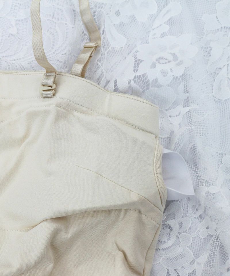 こちらのキャミソールならラメ部分が見えてもゴージャス感が増し、同時にドレスへの汗ジミも防いでくれるので、機能性、デザイン性ともに優秀です。
