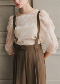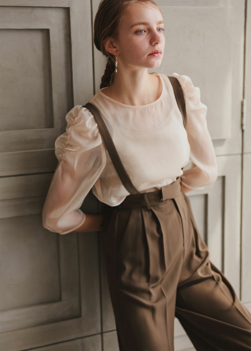 商品説明 ドレスのインナーなどにぴったりなトップス。 グロッシーなツヤ感が華やかです。 袖はパフスリーブで女性らしく、二の腕をカバーにもなります。 ギャザー部分に素材特有の陰影がうまれ、目を惹くポイントに。 キャミドレスのインナーや、セットアップアイテムと合わせて頂くのがおすすめです。 また、デニムなどデイリーなコーデにも合わせやすいアイテムです。 1着持っていると活躍する事間違いなしのアイテムです♪ ※ハンガー掛けの商品画像が実際の商品のお色味に近くなっております。 ※商品画像は、光の当たり具合やパソコンなどの閲覧環境により、 実際の色味と異なって見える場合がございます。予めご了承ください。 モデル着用サイズ 174cm/Mサイズ おすすめのシーン カジュアルな結婚式・二次会・お呼ばれ・成人式・同窓会・ 女子会・謝恩会 パーティー・演奏会・お食事会など多様なシーンのコーディネートに使えます。 商品詳細 【備考】 ・裏地なし ・伸縮性なし ・透け感あり ・後ろ襟ぐり涙あき 洗濯方法:クリーニング店にご相談ください。 ※その他お取り扱いに関しましては、商品に付属のアテンションタグをご覧ください。 原産国:中国 お問い合わせ品番:25165 着用モデル身長--cm