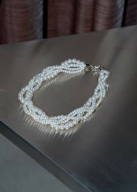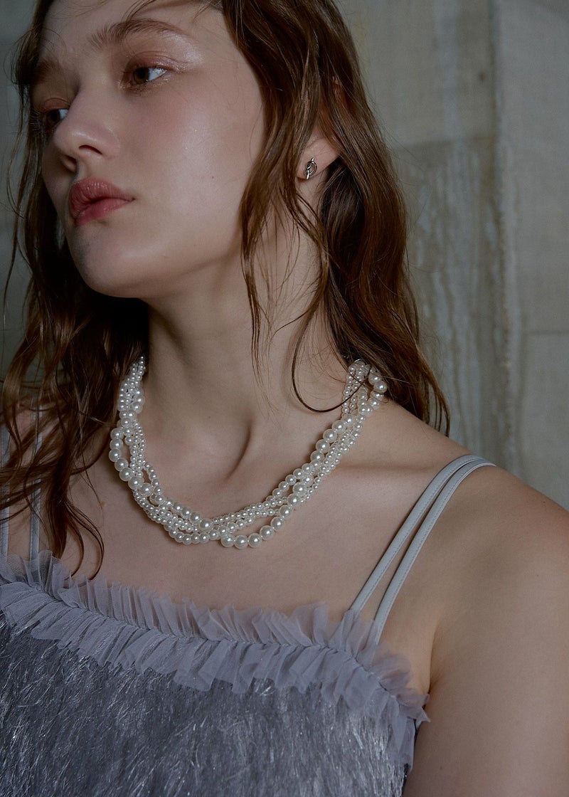大小異なるパールをレイヤード風なデザインに落とし込み、