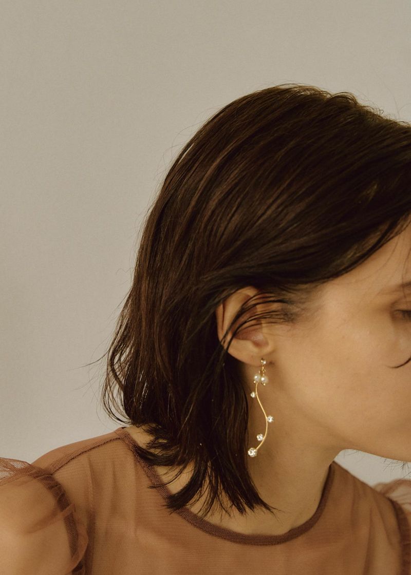 しなやかなゴールドの曲線が美しいビジューとパールを施したピアス。