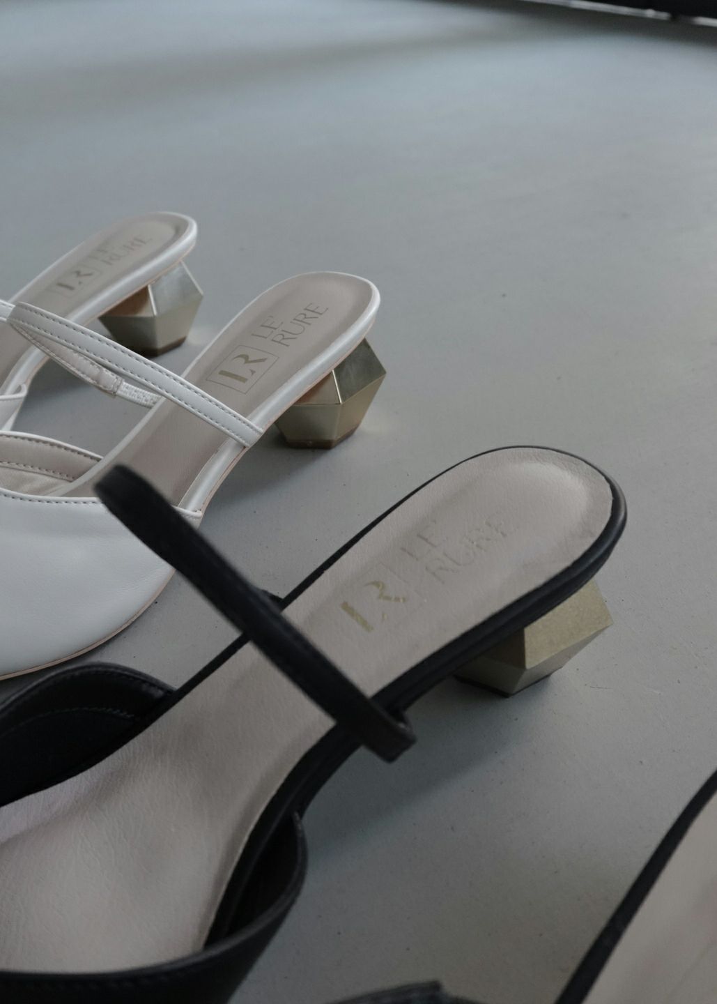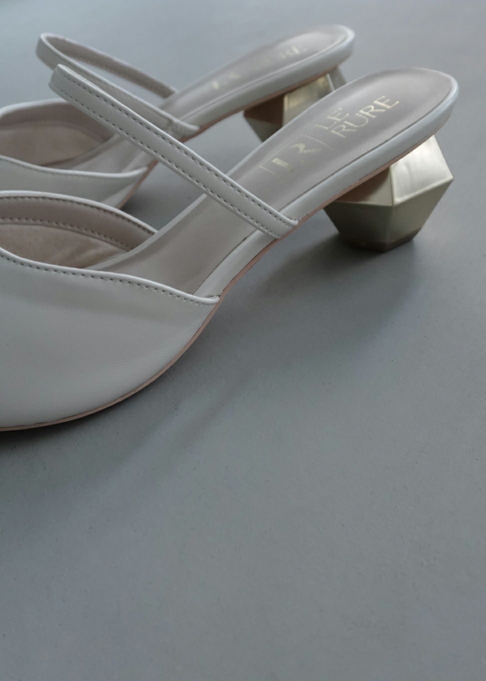 多角形でダイヤのようなデザインヒールが視線を奪う特別な一足です。