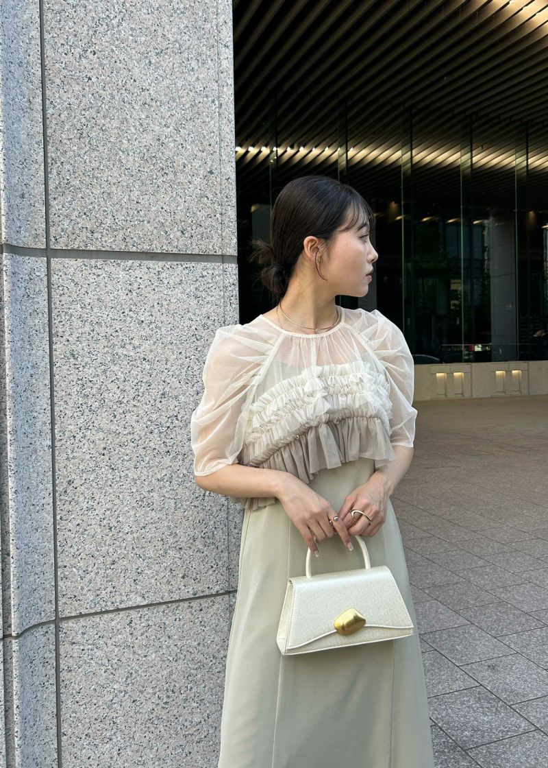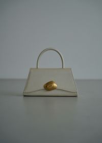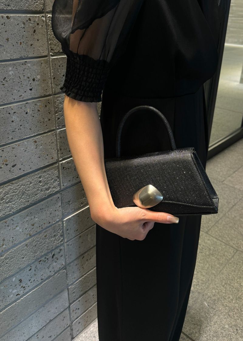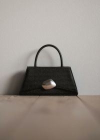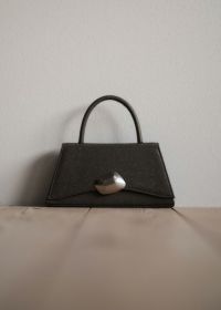上品な光沢感のある、トランぺジウムフォルムのバッグ。