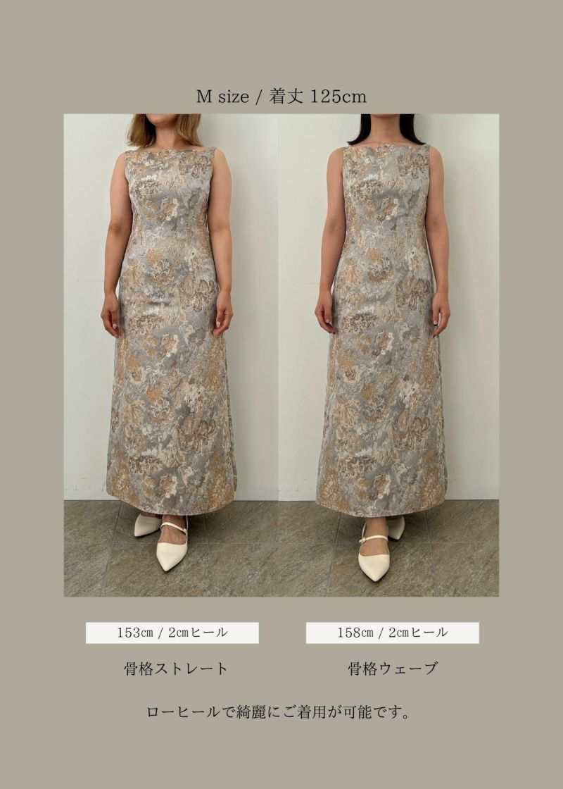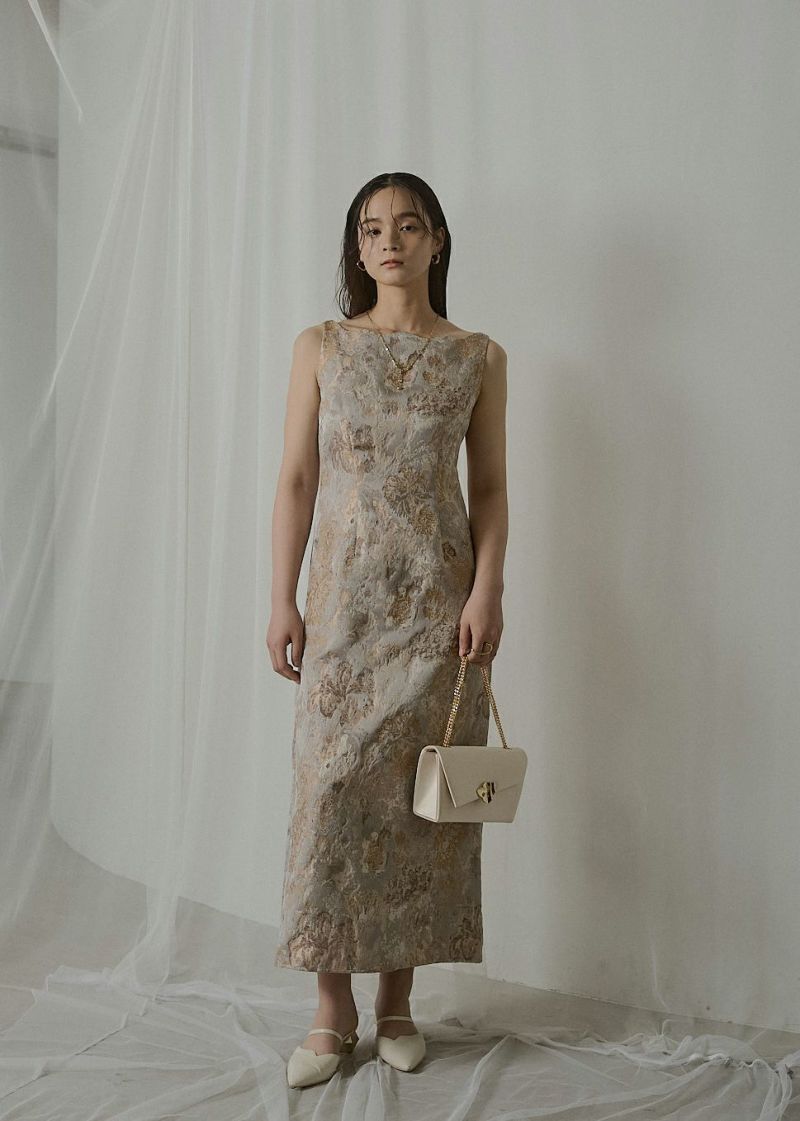 商品説明 都会的で存在感あるジャガードドレス。 24'PRE FALLではベージュ、ブラウンの2色展開でご用意いたしました。 ジャガード生地とデコルテ部分のデザインは 他にないひと癖ある〝LE'RUREらしさ〟を表現し 抜け感と、お顔周りを柔らかな印象にしてくれます。 程よくシェイプなウエストに仕上げ、立体感とスタイルアップ効果を。 スカート部分は得意とする緩やかで丸みのあるコクーンシルエットに。 着心地、歩きやすさも重視しバックスリットを施しました。 軽やかで程よく薄手のジャガード生地ですので お手持ちであれば、フィット感のあるシアー素材やチュールトップスのレイヤード。 ジャケット合わせ、冬はファーコート等とも相性抜群な万能アイテム。 結婚式などのオケージョンシーンに限らず、特別な日に着ていただきたい1着です。 ※商品画像は、光の当たり具合や端末等の閲覧環境によって、 実際の色味と異なって見える場合がございます。予めご了承ください。 ※画像の商品はサンプルの為、実際の商品とサイズ感が異なっています。 予めご了承ください。 おすすめのシーン 結婚式・二次会・披露宴・成人式・同窓会・ 2次会謝恩会・パーティー・デート・演奏会・お食事会など多様なシーンのコーディネートに使えます。 商品詳細 【備考】 ・バックファスナー仕様 ・バックスリットあり 洗濯方法:クリーニング店にご相談ください。 ※その他お取り扱いに関しましては、商品に付属のアテンションタグをご覧ください。 原産国:MADE IN CHINA お問い合わせ品番:9552 着用モデル身長163cm Msize