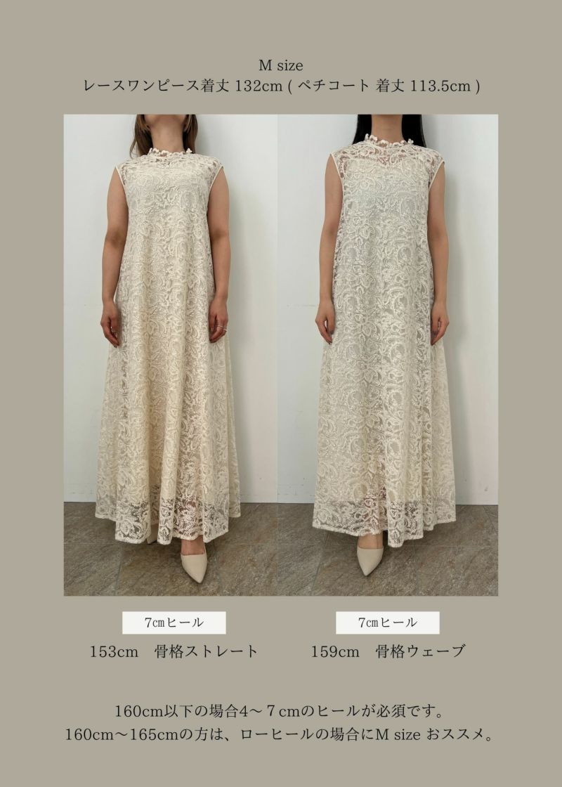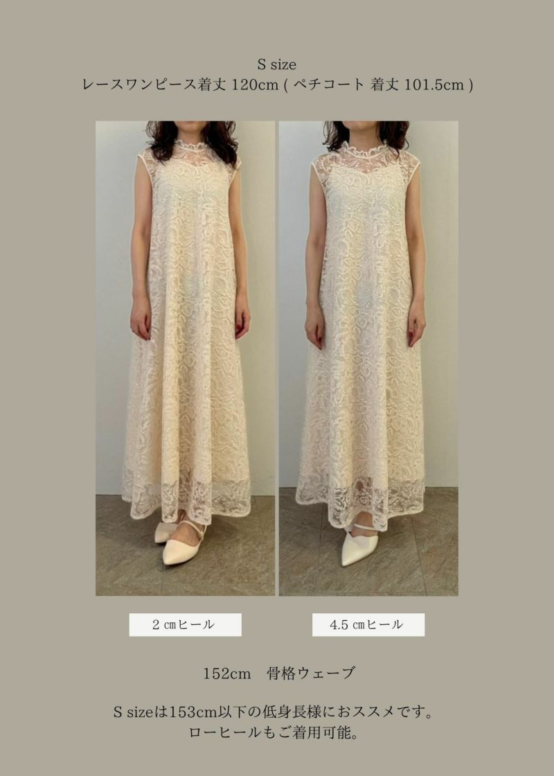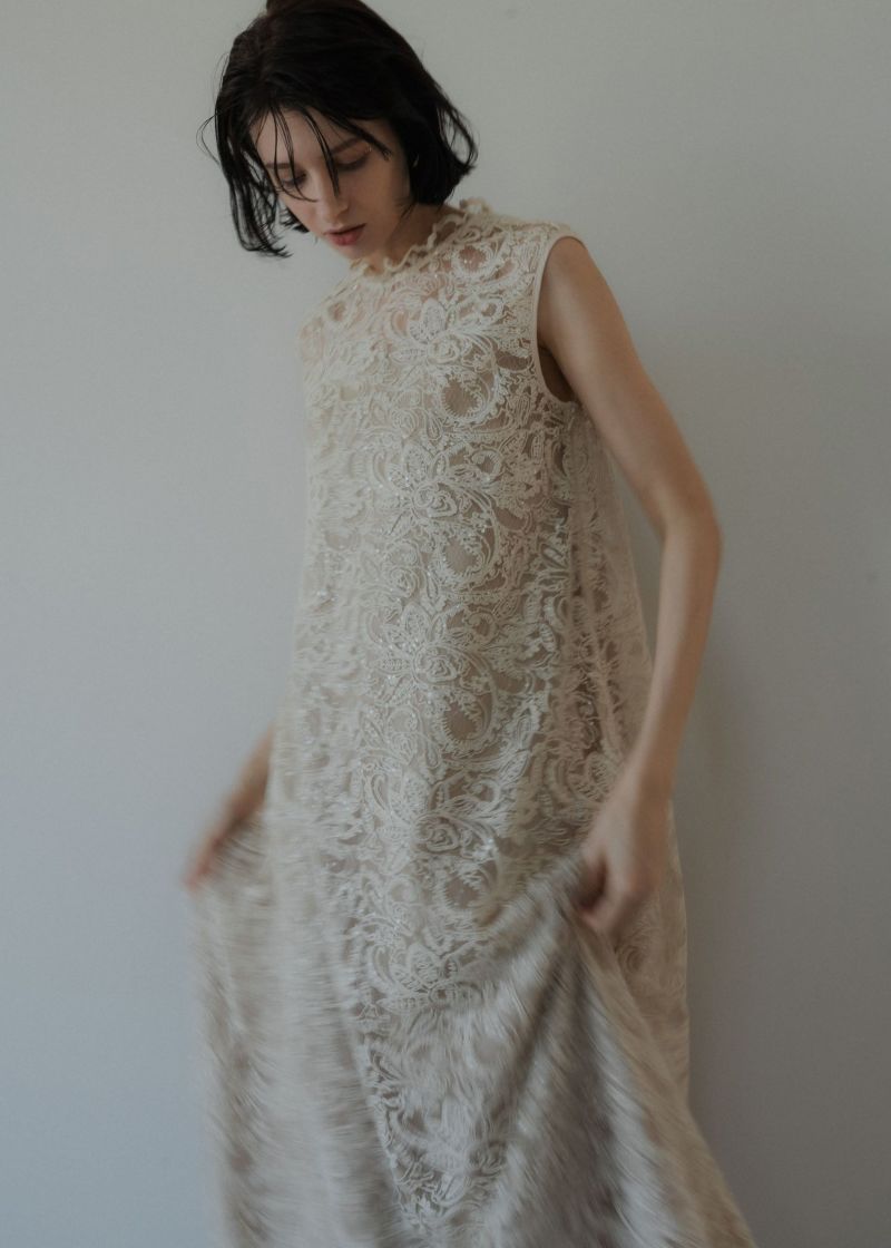 また、丈感は足元までレースを纏うよう生地をたっぷり贅沢に。