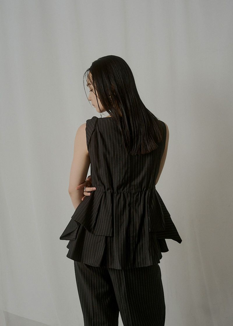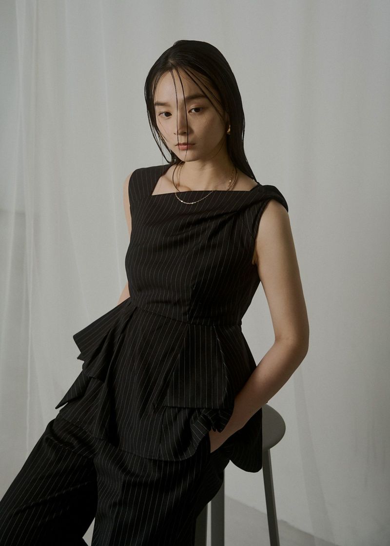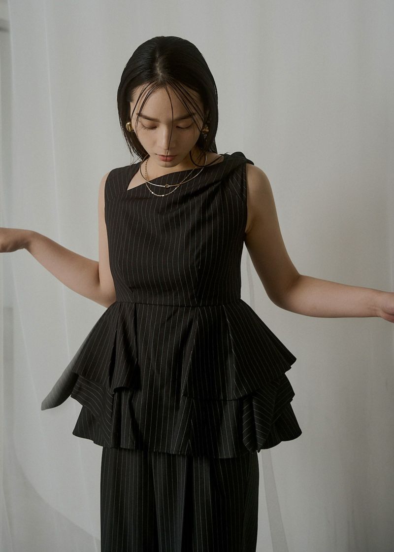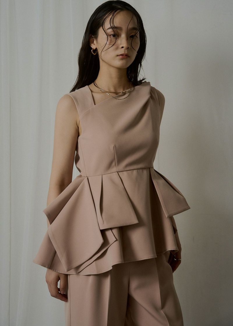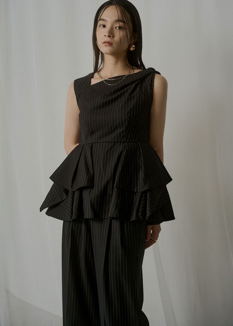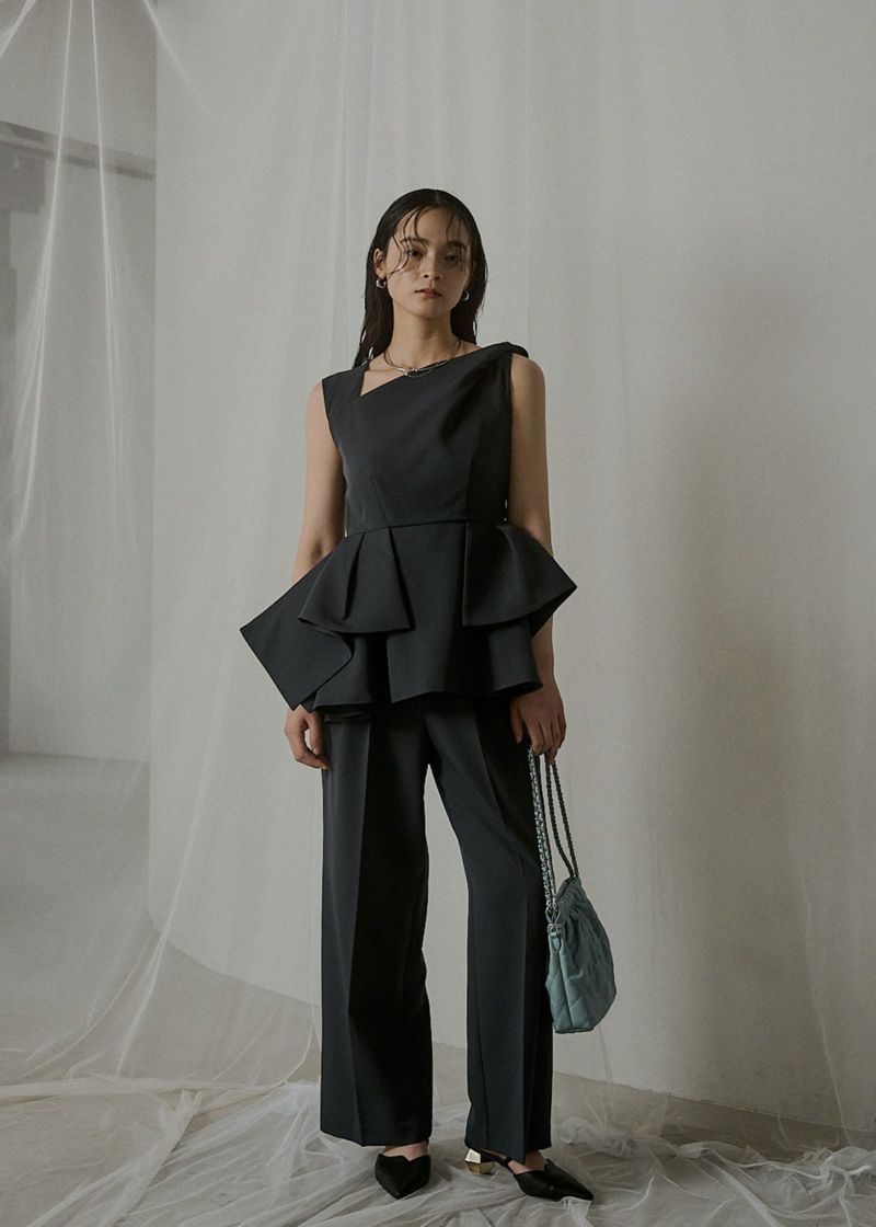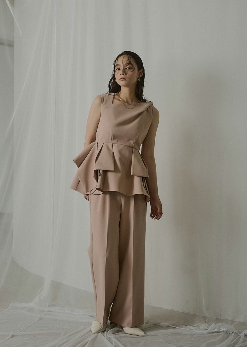 商品説明 メリハリのある立体的なペプラムが目を惹く 都会的モードなセットアップパンツ。 デコルテをきれいに魅せてくれる変形ツイストのネックデザインと ボディラインを美しく魅せるペプラムトップスは、 ウエスト位置を高く設計し、パネルラインの切り替えから裾に向かって ふんわり広がりメリハリのあるシルエットがポイント。 しっかりとした生地に更に芯を貼ることで構築的なラインに。 ひとつひとつのフリルパーツの角度を調整しながらパターンを組み 立体感あるシルエットに拘り作り込まれたディティールです。 女性らしい印象のトップスに、あえてパンツスタイルにすることで マニッシュ要素も取り入れた、都会的モードなセットアップに。 トップスとパンツ、マルチに使えるアイテムだからこそ ストライプ生地とノーマル生地の2パターンをご用意。 単品使いでも合わせやすくコーディネートの幅も広がります。 ※商品画像は、光の当たり具合や端末等の閲覧環境によって、 実際の色味と異なって見える場合がございます。予めご了承ください。 ※画像の商品はサンプルの為、実際の商品とサイズ感が異なっています。 予めご了承ください。 おすすめのシーン 結婚式・二次会・披露宴・成人式・同窓会・ 2次会謝恩会・パーティー・デート・演奏会・お食事会など多様なシーンのコーディネートに使えます。 商品詳細 【備考】 トップス ・バックファスナー仕様 ・ウエスト後ろ部分にゴム入り パンツ ・サイドポケット有り (バックポケットはデザイン仕様) ・バック部分ゴム入り 洗濯方法:クリーニング店にご相談ください。 ※その他お取り扱いに関しましては、商品に付属のアテンションタグをご覧ください。 原産国:MADE IN CHINA お問い合わせ品番:9590 着用モデル身長163cm (M/long size)