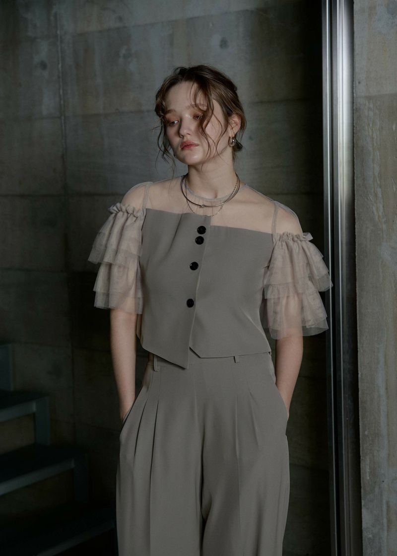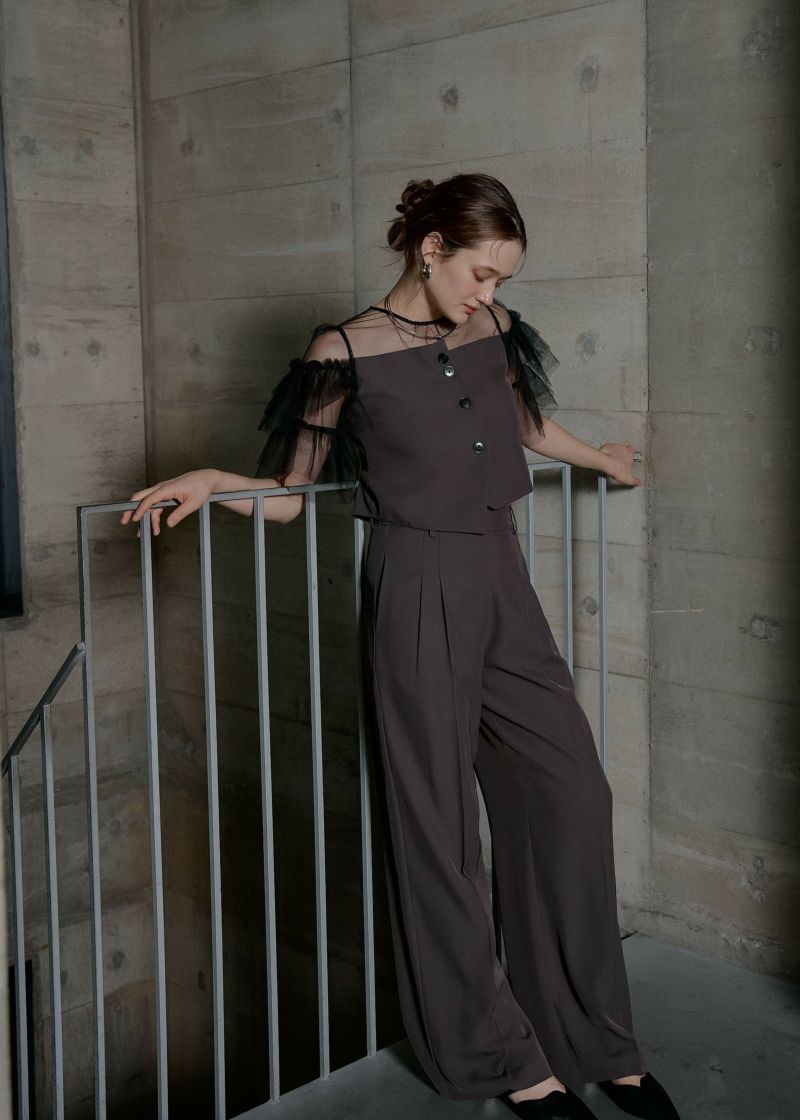 商品説明 上品さと抜け感を両立させた イレギュラーデザインのパンツドレス。 とろみのある落ち感素材が 体のラインをキレイに魅せ 動くたび、しなやかに揺れるシルエットが印象的。 肩のチュールフリルは、甘くなりすぎず 大人の華やかさをPLUS+ 二の腕まわりもさりげなくカバーしつつ、程よい肌見せで軽さを出します。 トップスはコンパクトに。 パンツはワイドストレートでスタイルUPが狙えるバランス設計。 結婚式・パーティーなどフォーマルな場はもちろん、 きちんと見せたいお呼ばれシーンにも使える一着です。 ※商品画像は、光の当たり具合や端末等の閲覧環境によって、 実際の色味と異なって見える場合がございます。予めご了承ください。 ※画像の商品はサンプルの為、実際の商品とサイズ感が異なっています。 予めご了承ください。 おすすめのシーン 結婚式・二次会・披露宴・成人式・同窓会・ 2次会謝恩会・パーティー・デート・演奏会・お食事会など多様なシーンのコーディネートに使えます。 商品詳細 【備考】 トップス ・バックファスナー仕様 ・トップにデザインボタン有り パンツ ・サイドポケット有り (バックポケットはデザイン仕様) ・バック部分ゴム入り 洗濯方法:クリーニング店にご相談ください。 ※その他お取り扱いに関しましては、商品に付属のアテンションタグをご覧ください。 原産国:MADE IN CHINA お問い合わせ品番:9607 着用モデル身長173cm/Model size