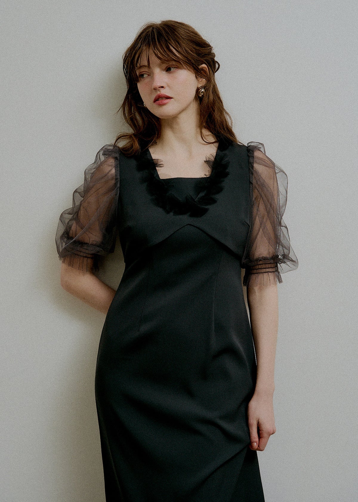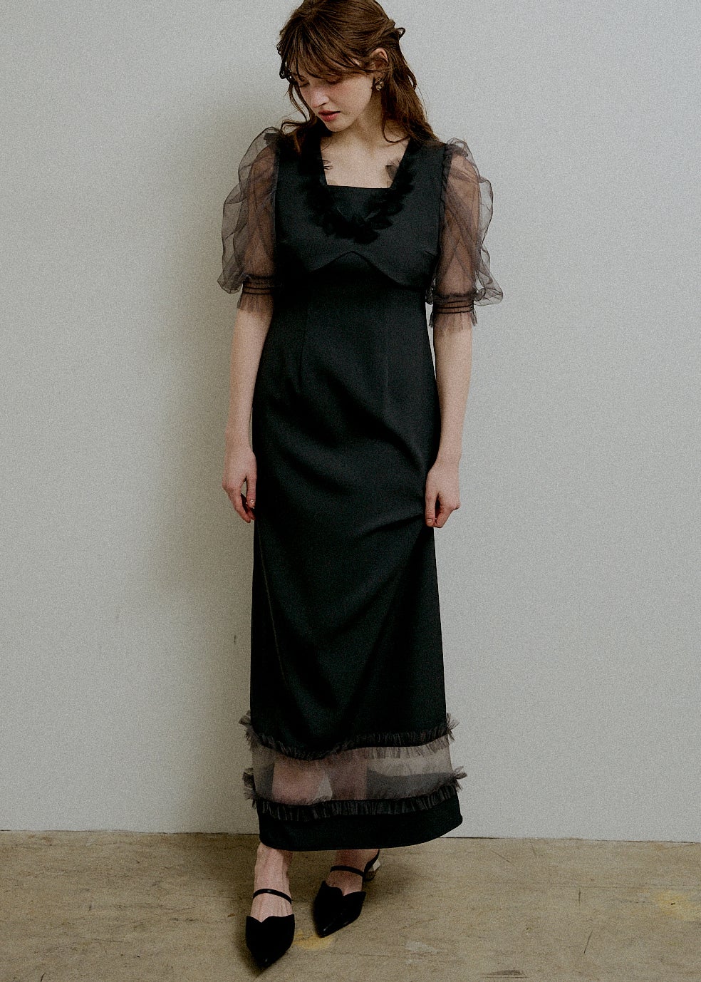 Flower tulle frill line dress