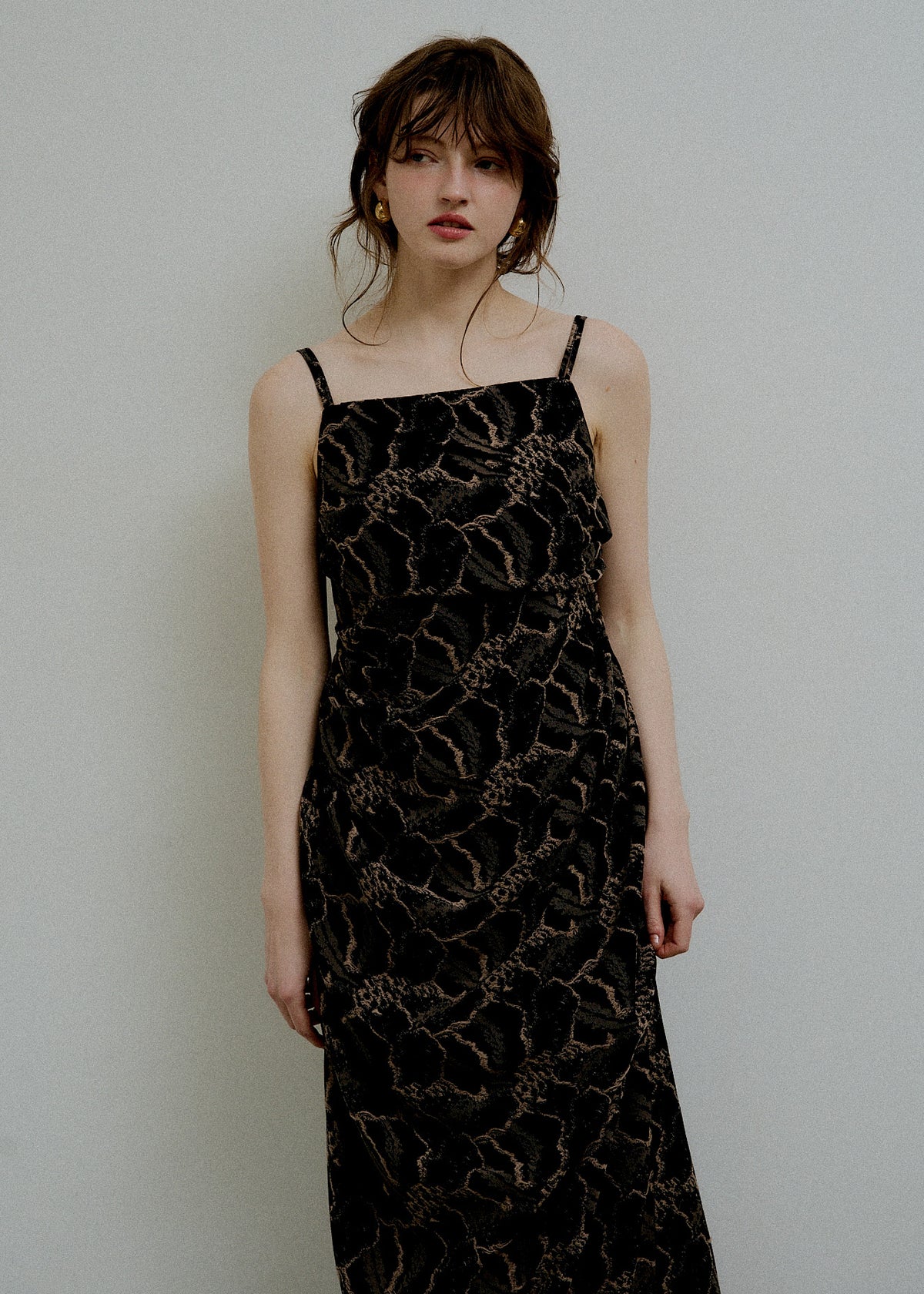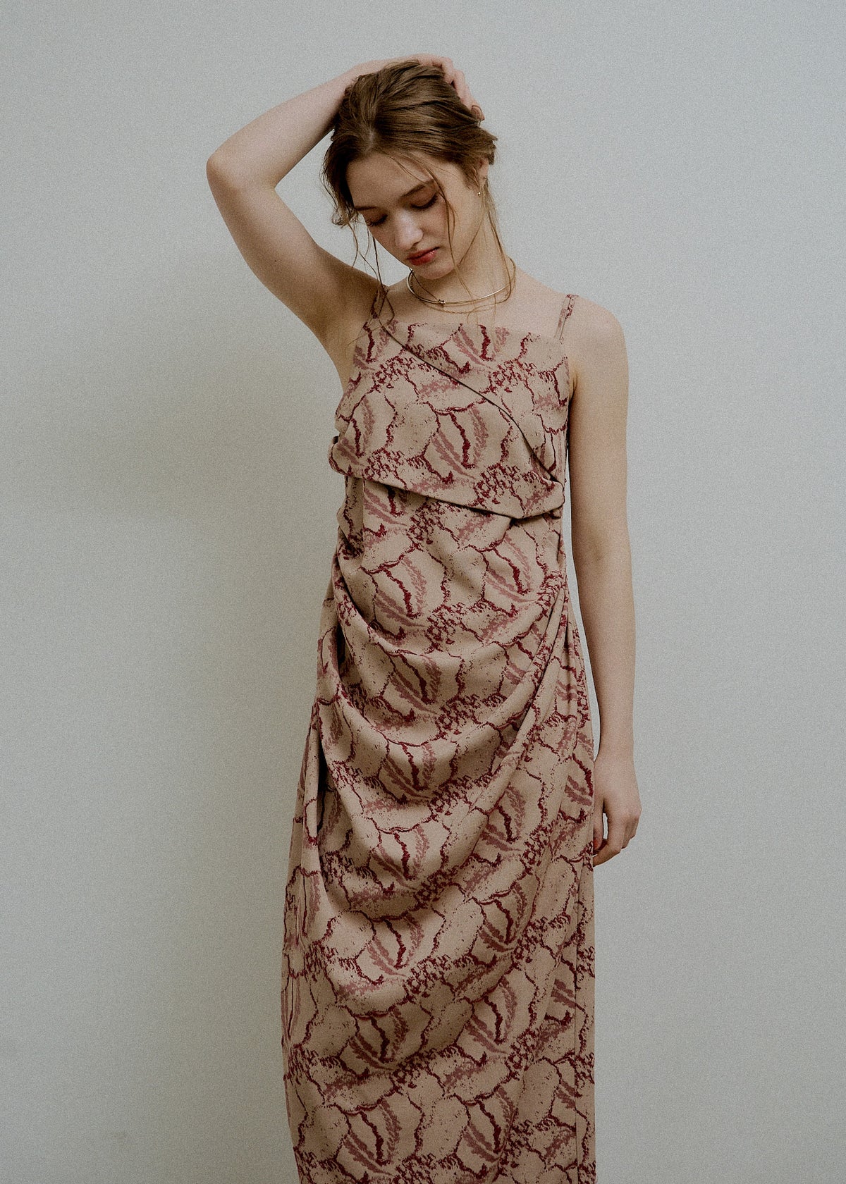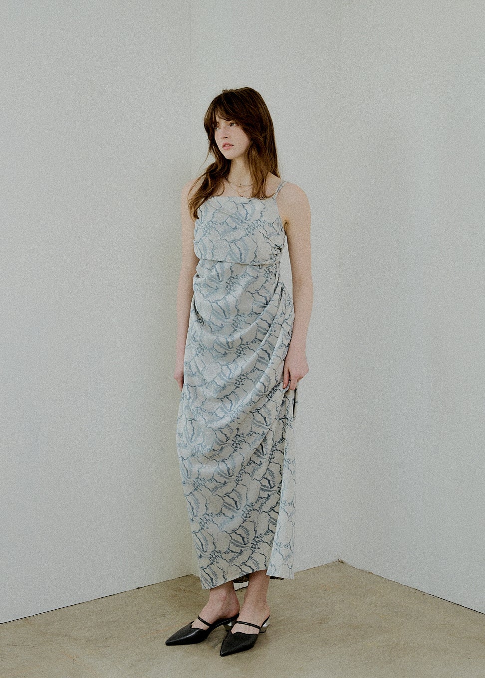 Jacquard cami drape dress