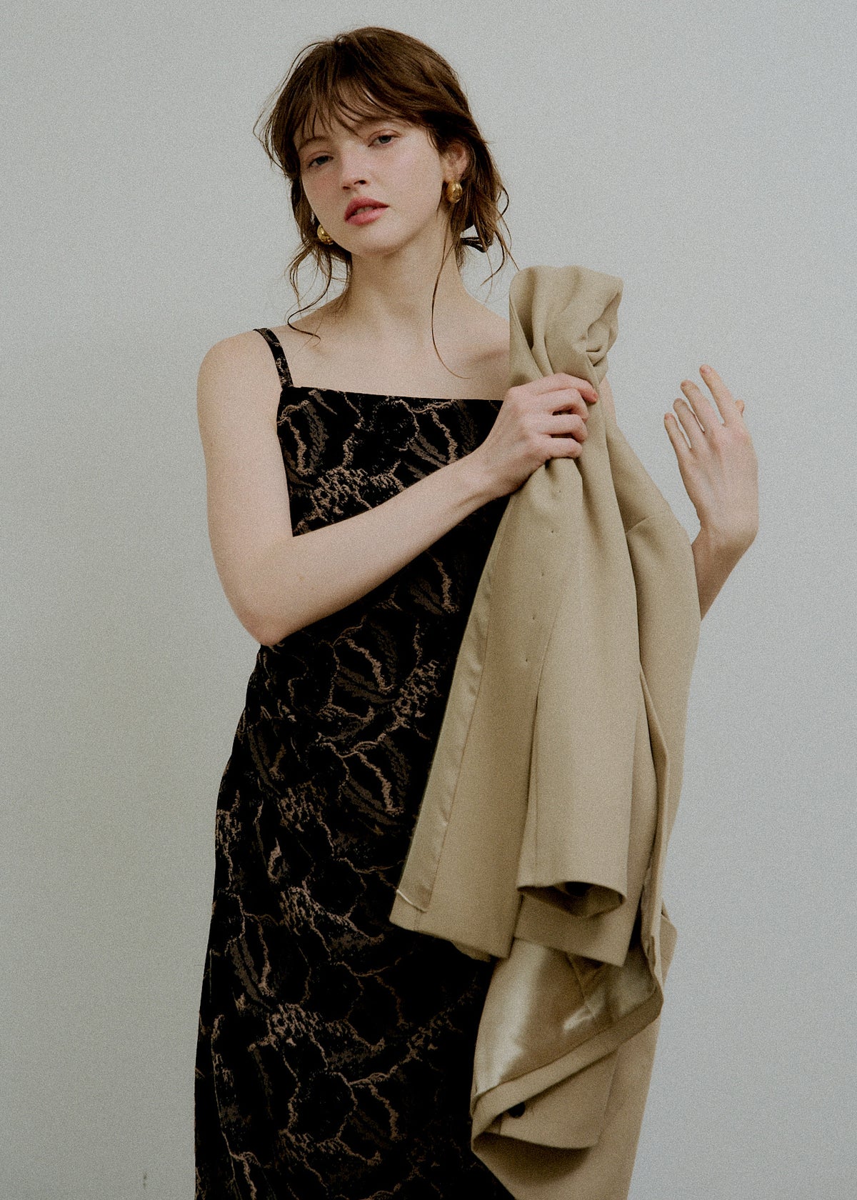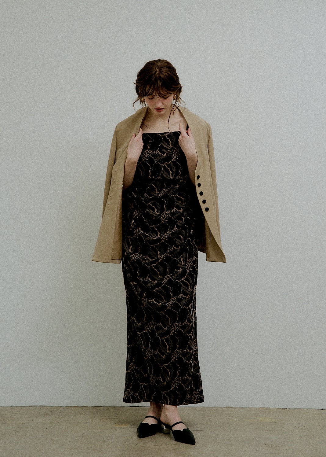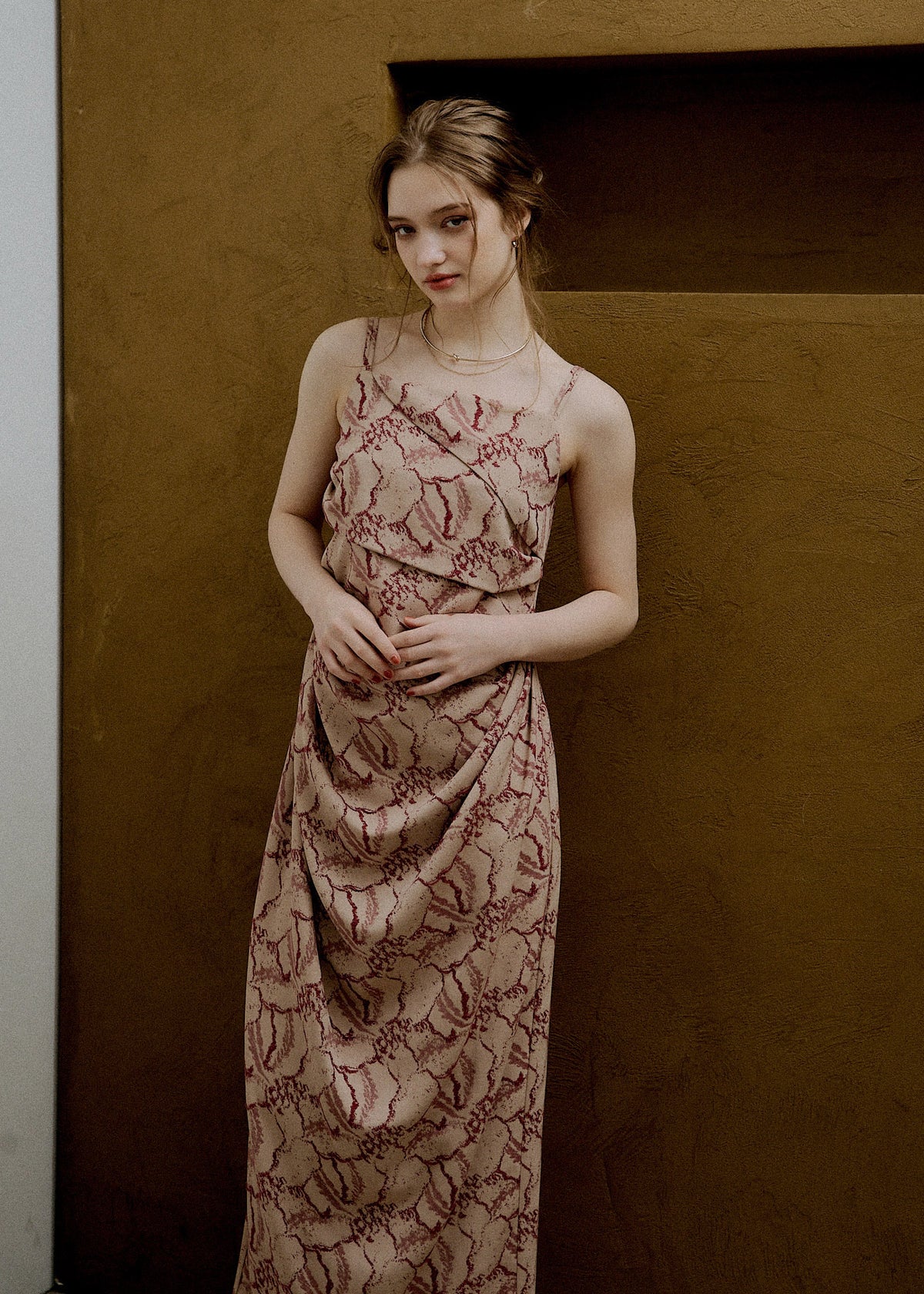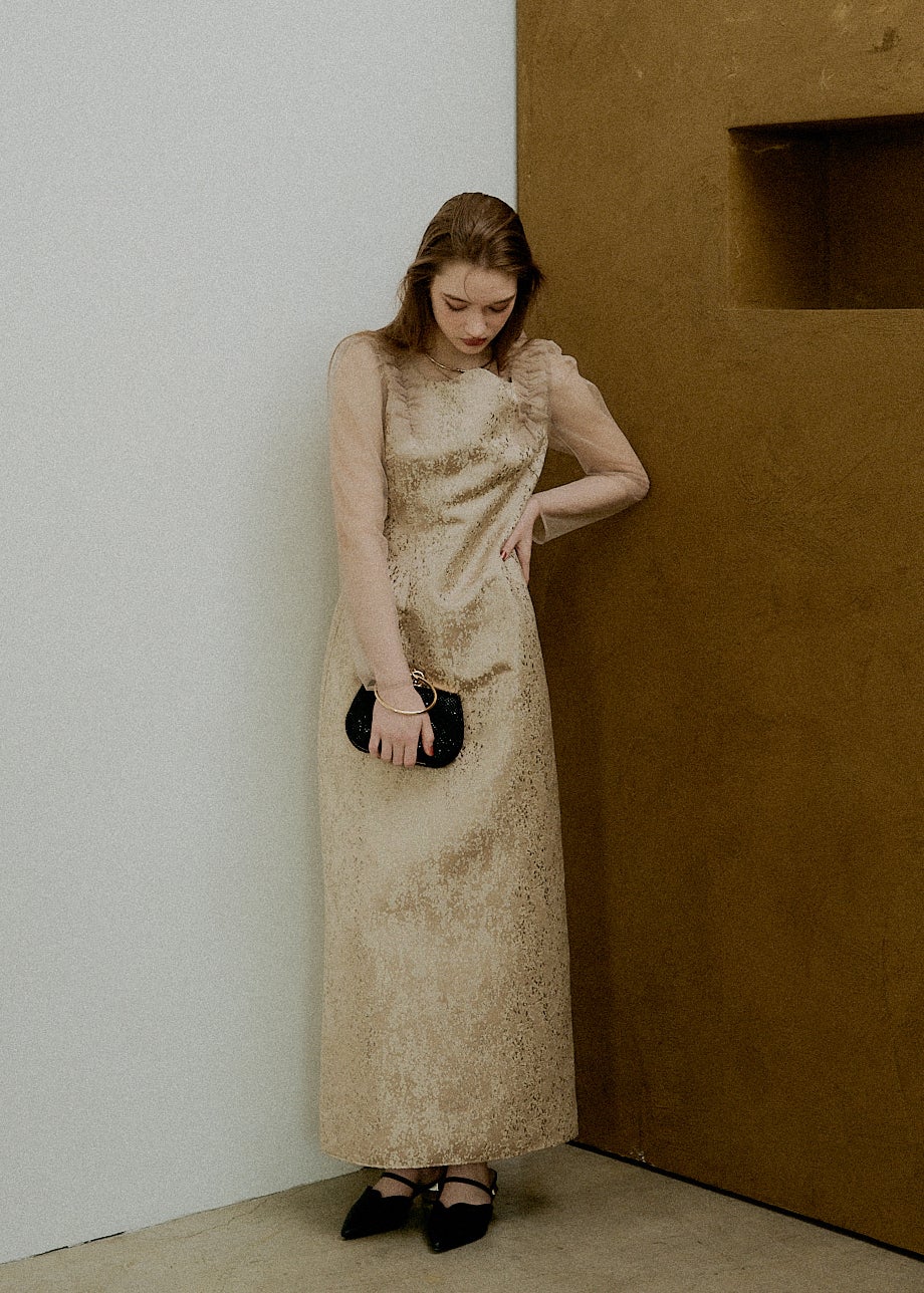 Jacquard cami drape dress