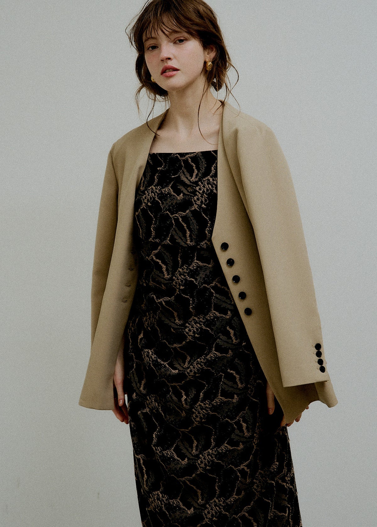 Melange collarless jacket