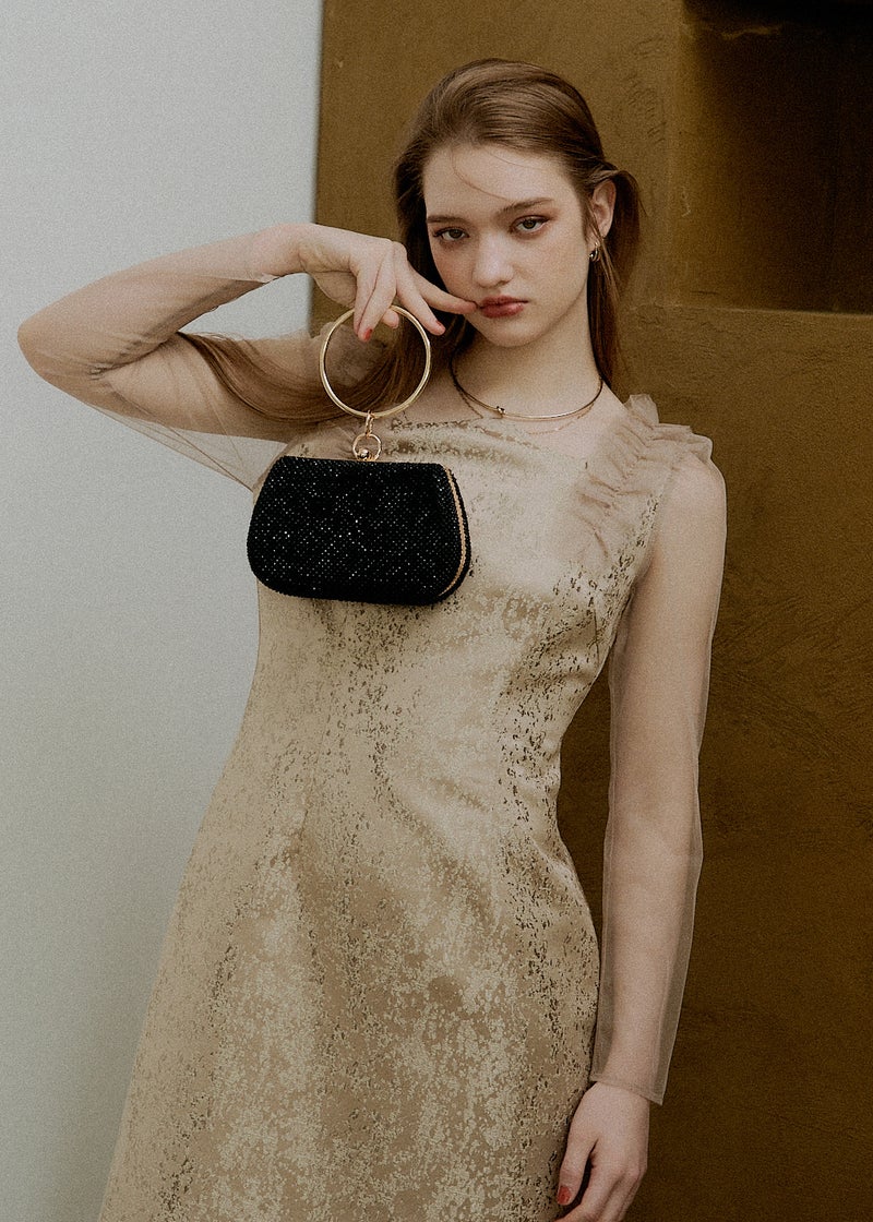 繊細な輝きを纏ったストーンが手元を華やかに彩るミニバッグ。