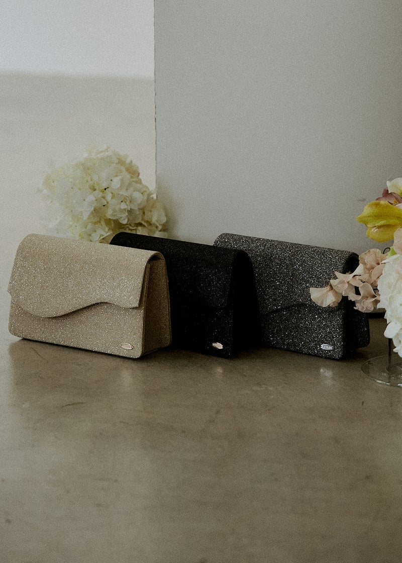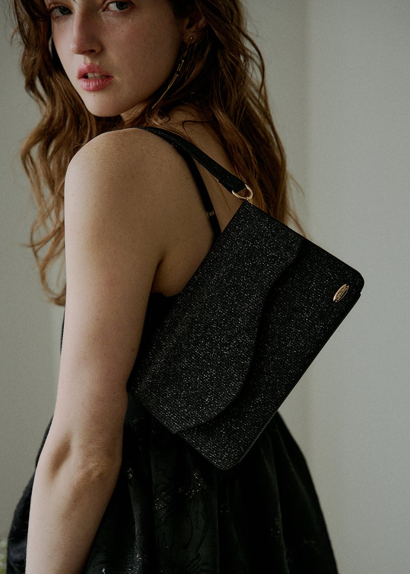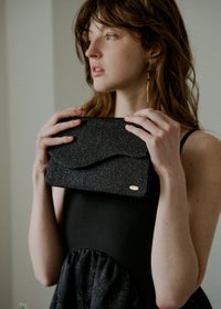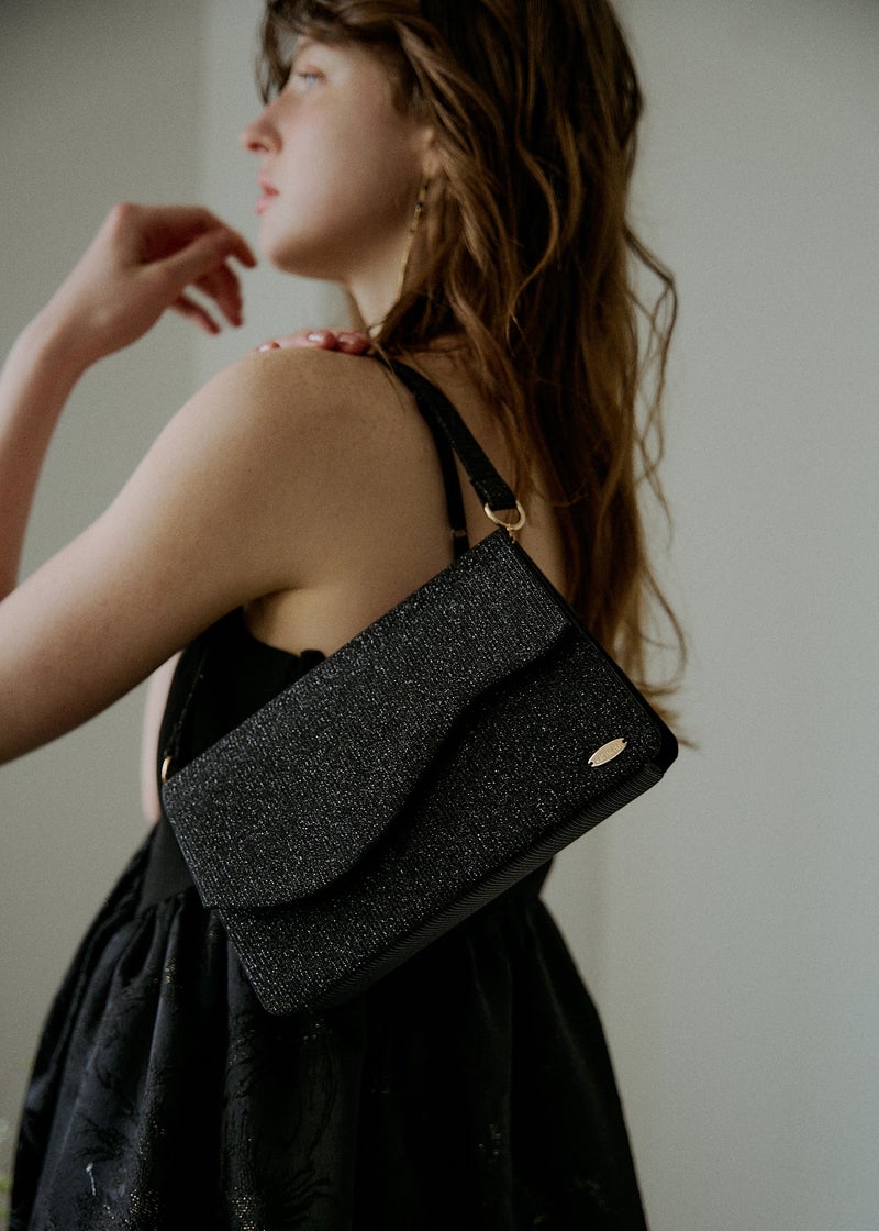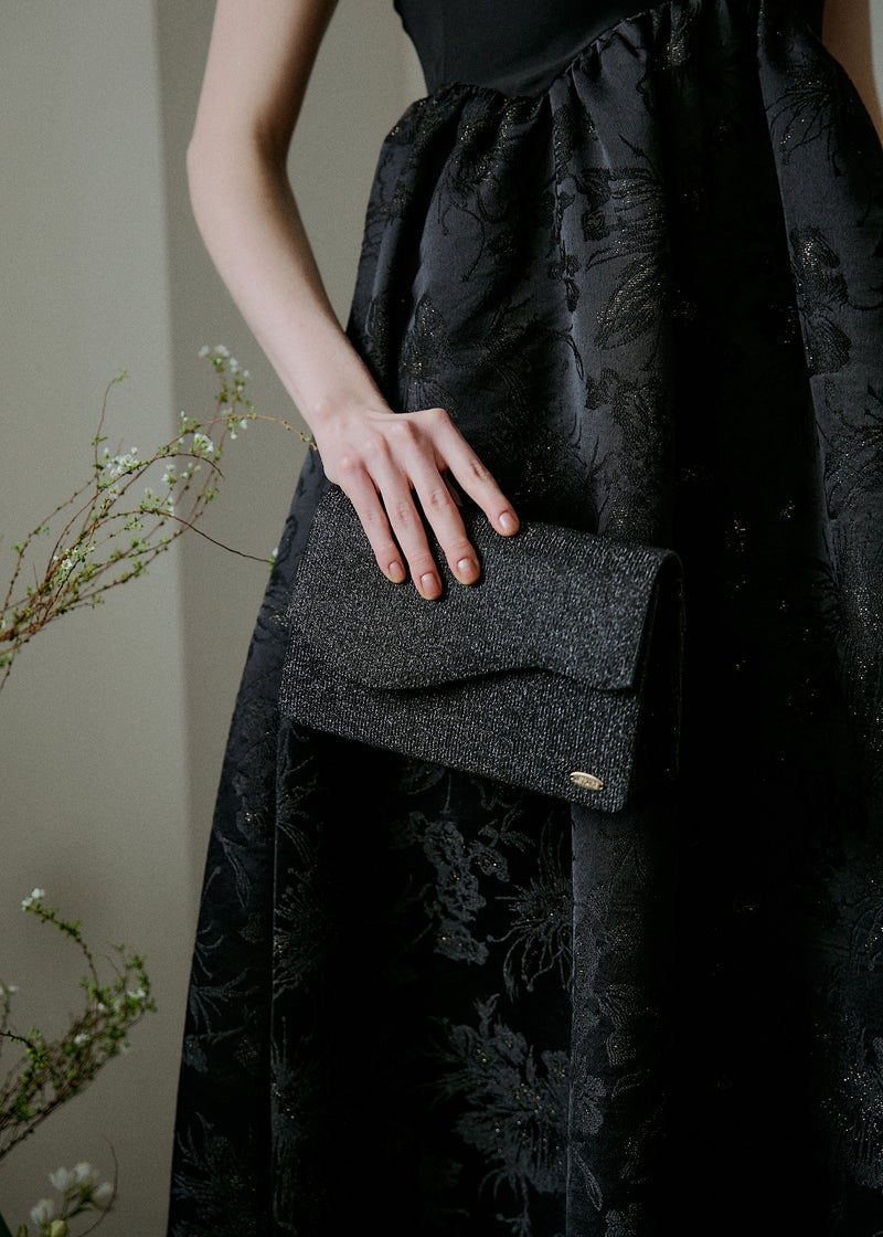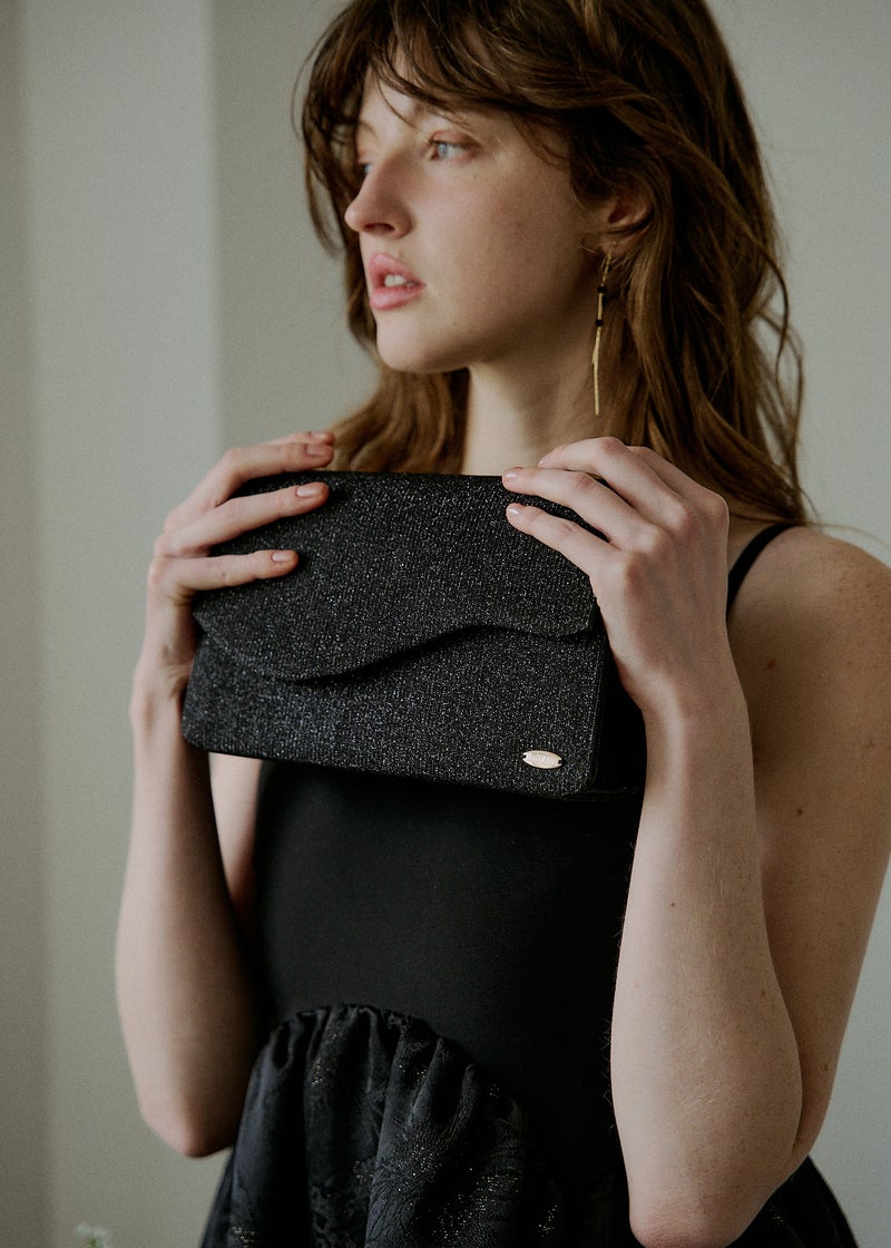 さりげなく輝くラメ素材が、手元を上品に彩るマルチバッグ。