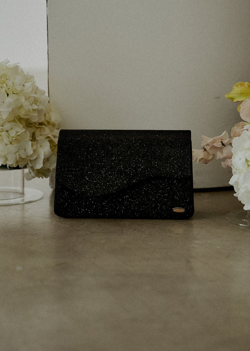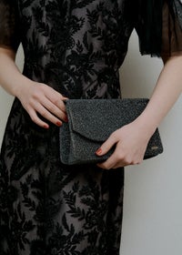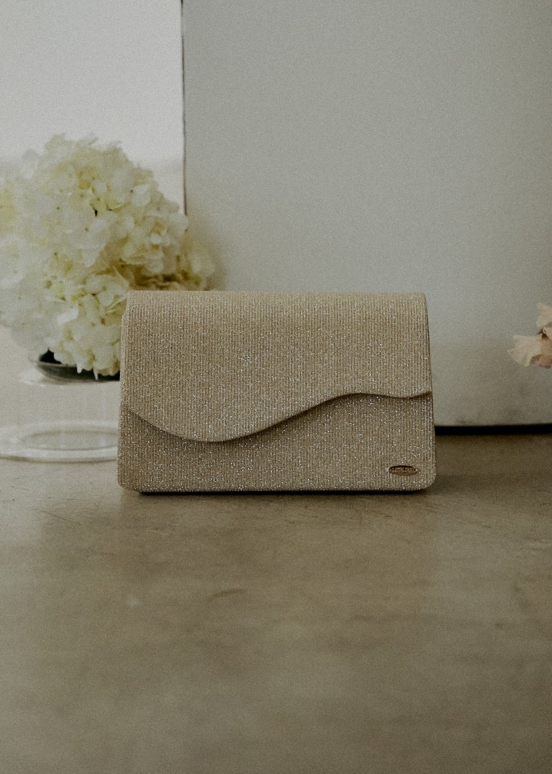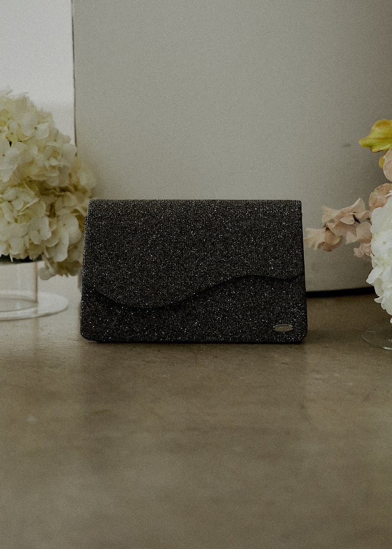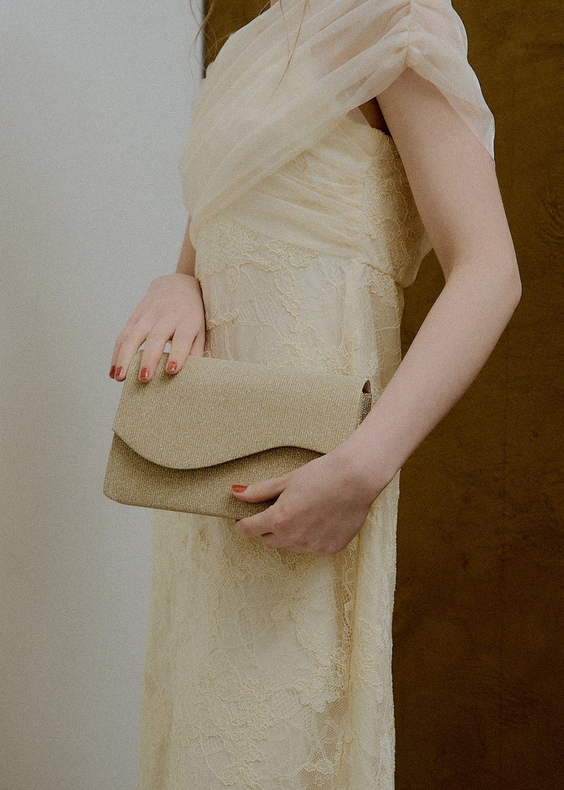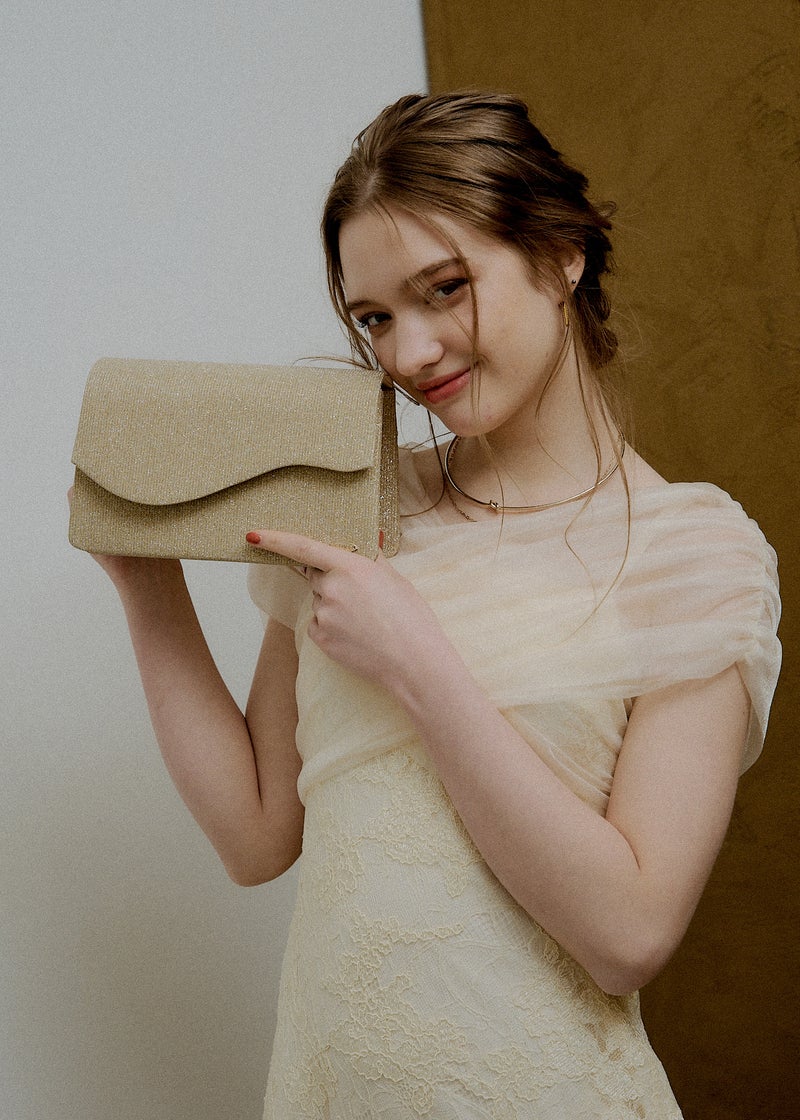 さりげなく輝くラメ素材が、手元を上品に彩るマルチバッグ。