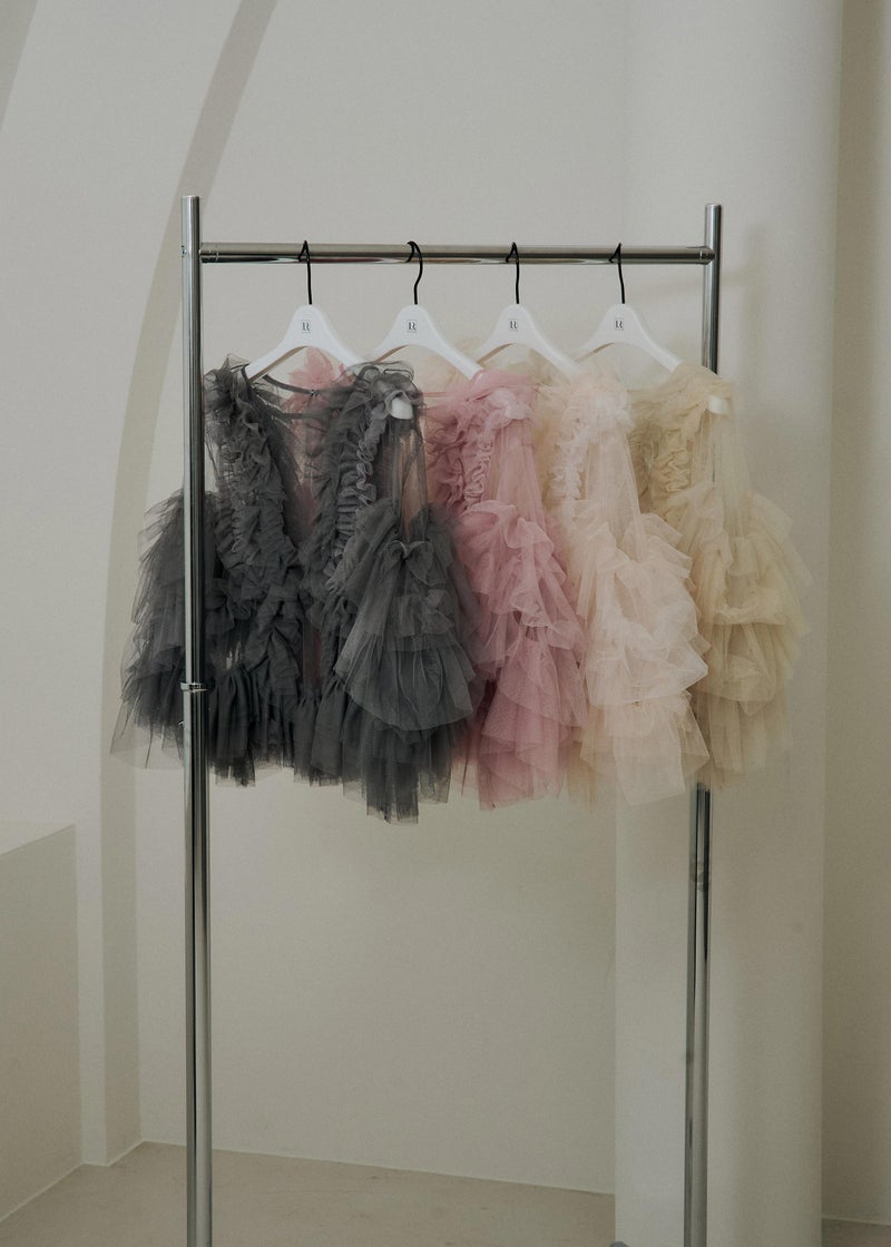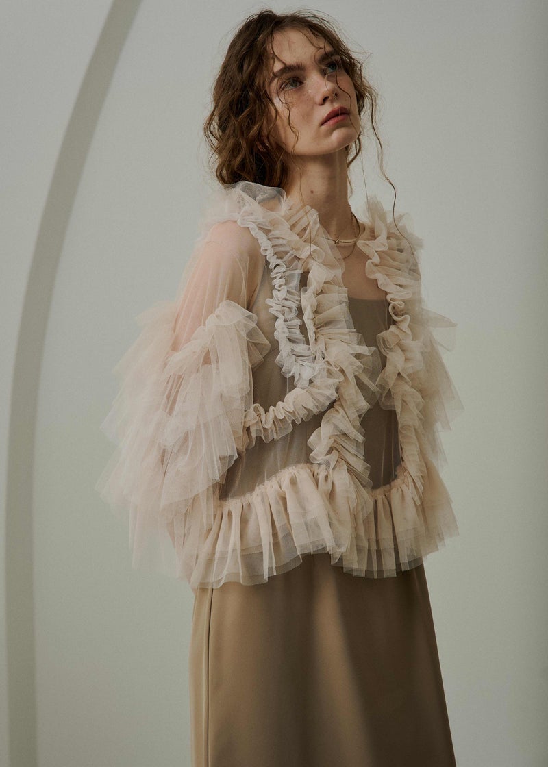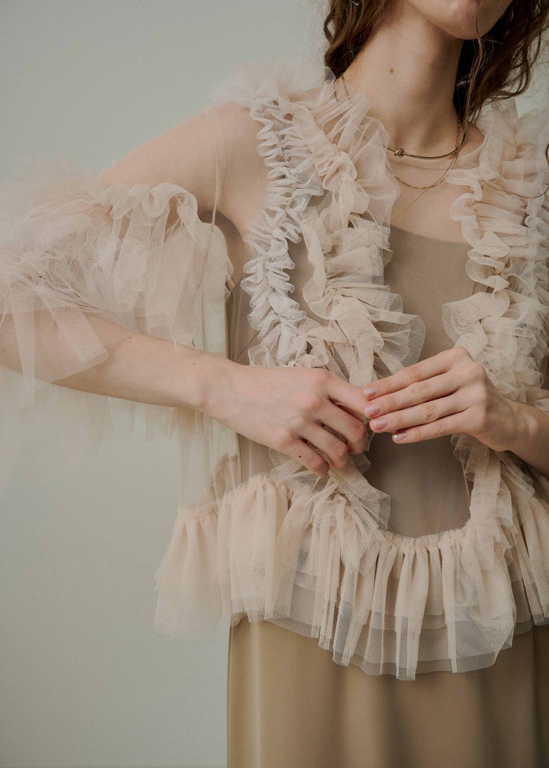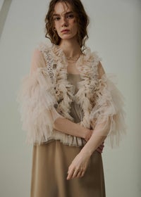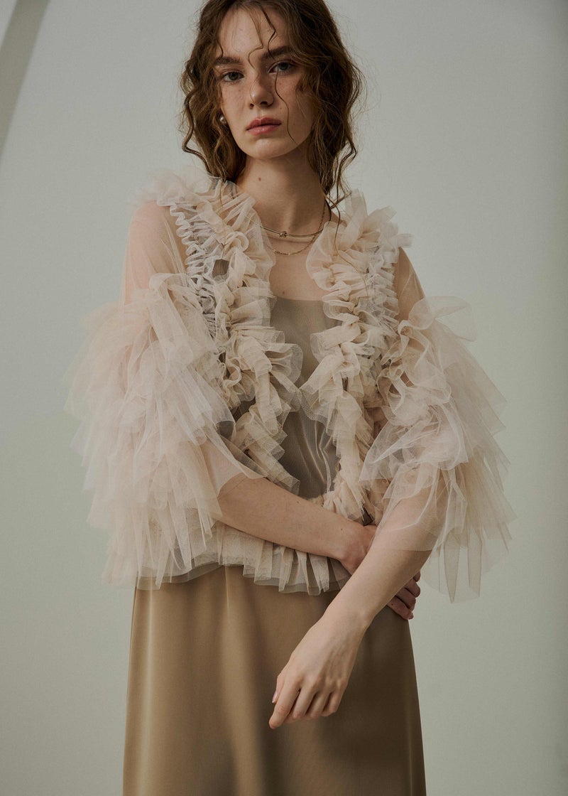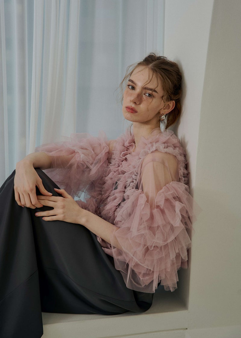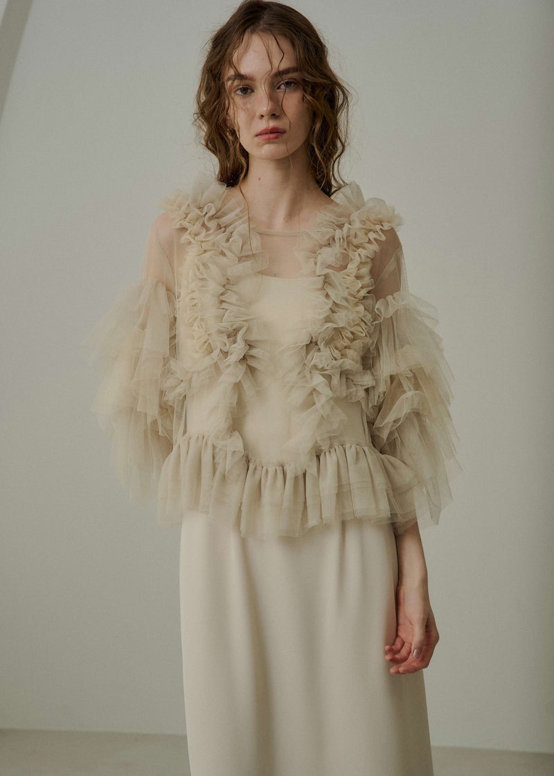 空気を纏うような軽やかなチュールに柔らかなフリルをPLUS+