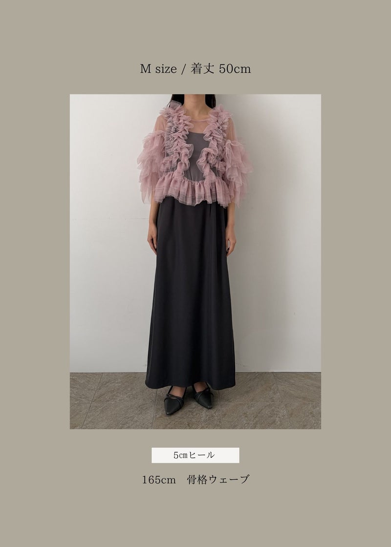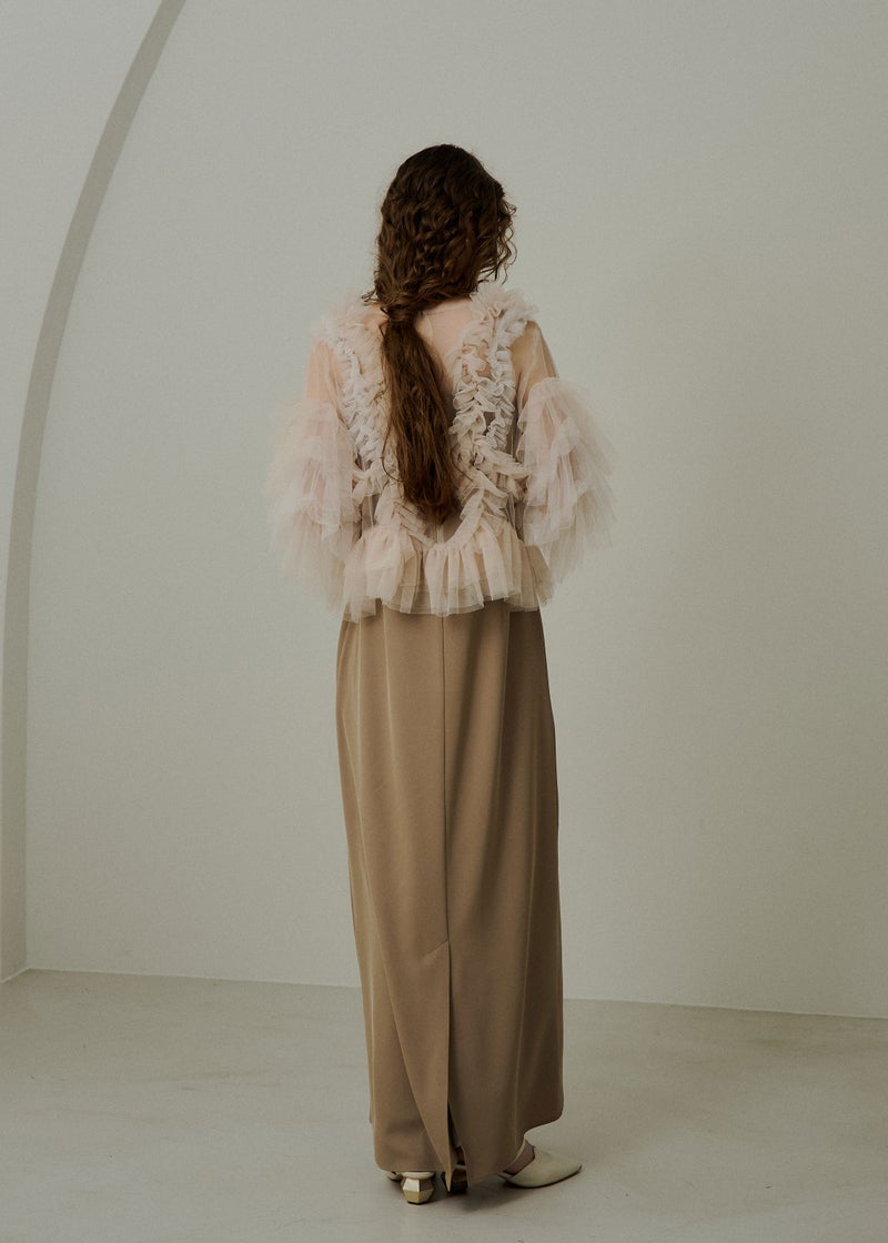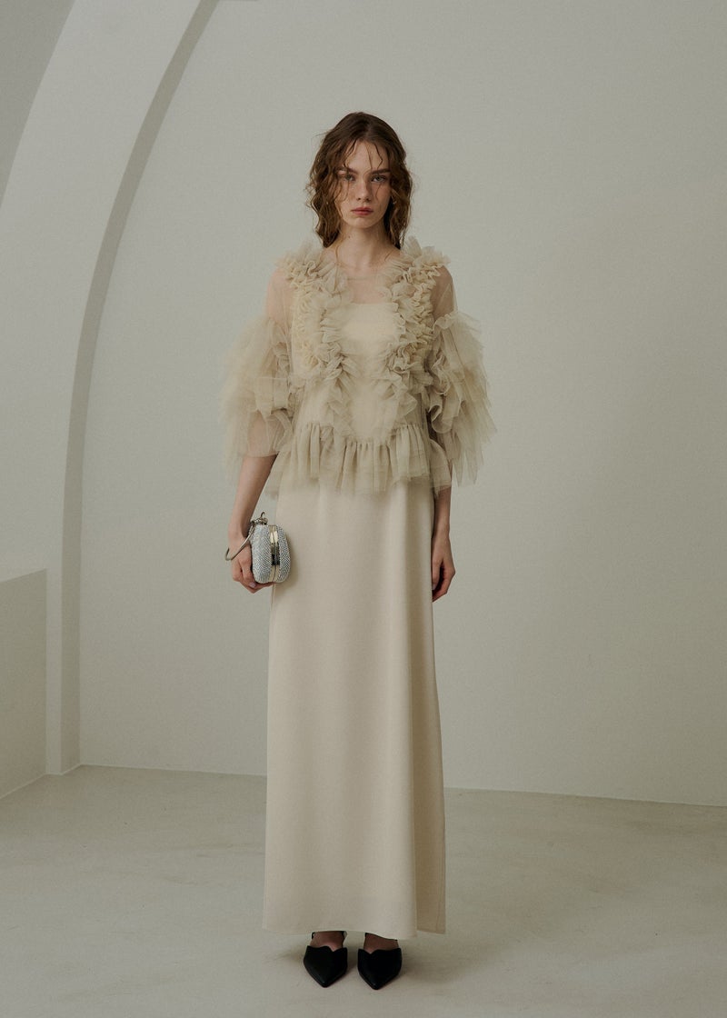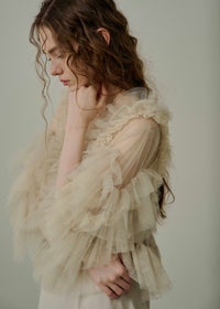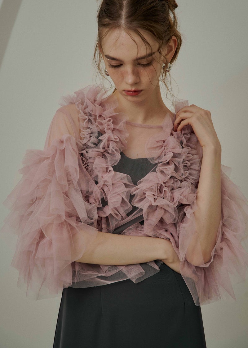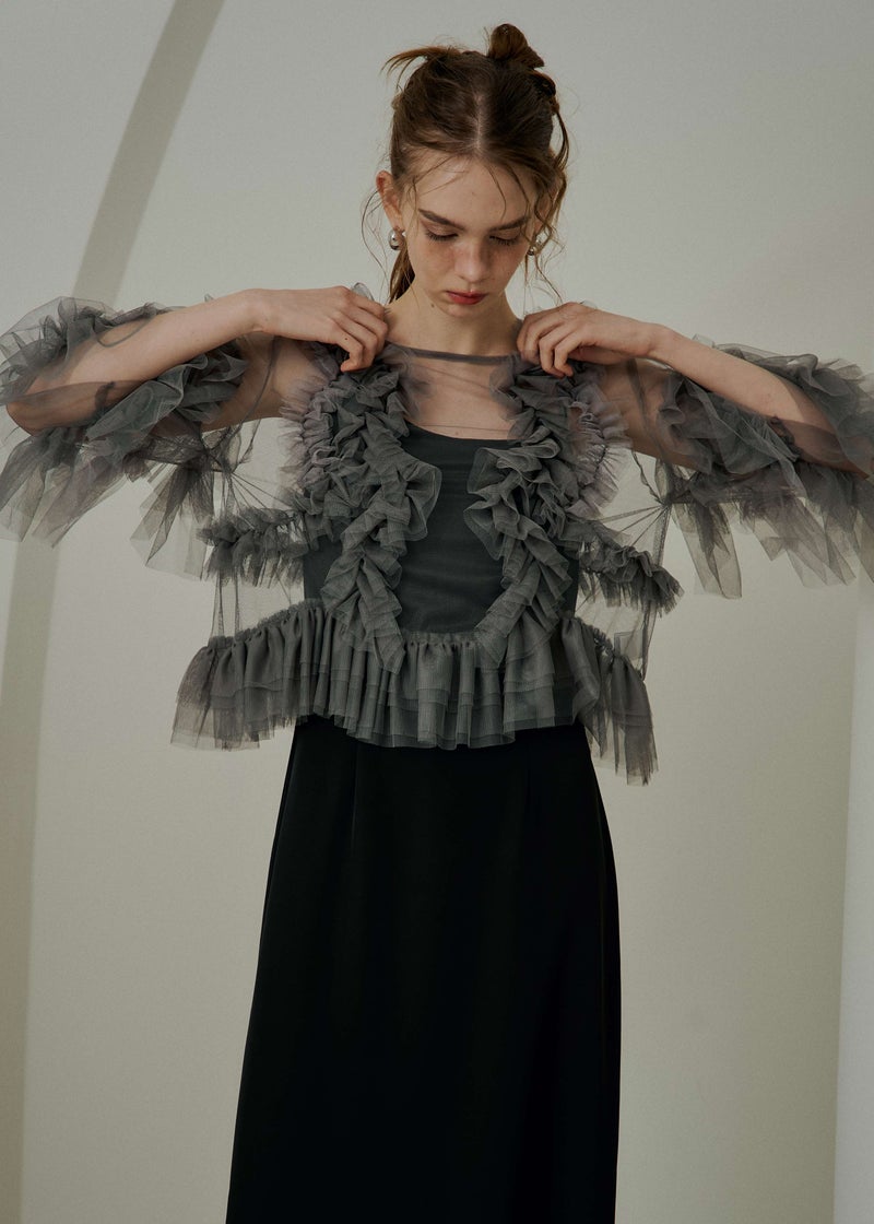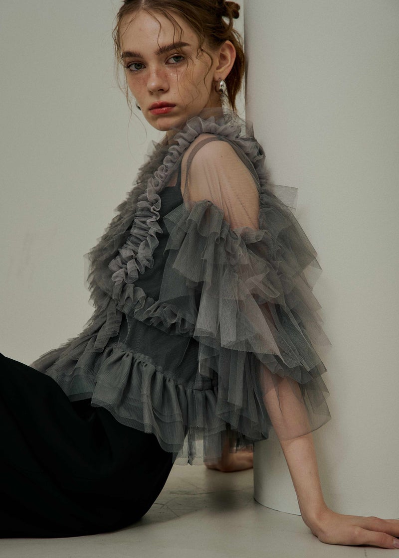 空気を纏うような軽やかなチュールに柔らかなフリルをPLUS+