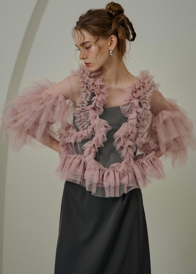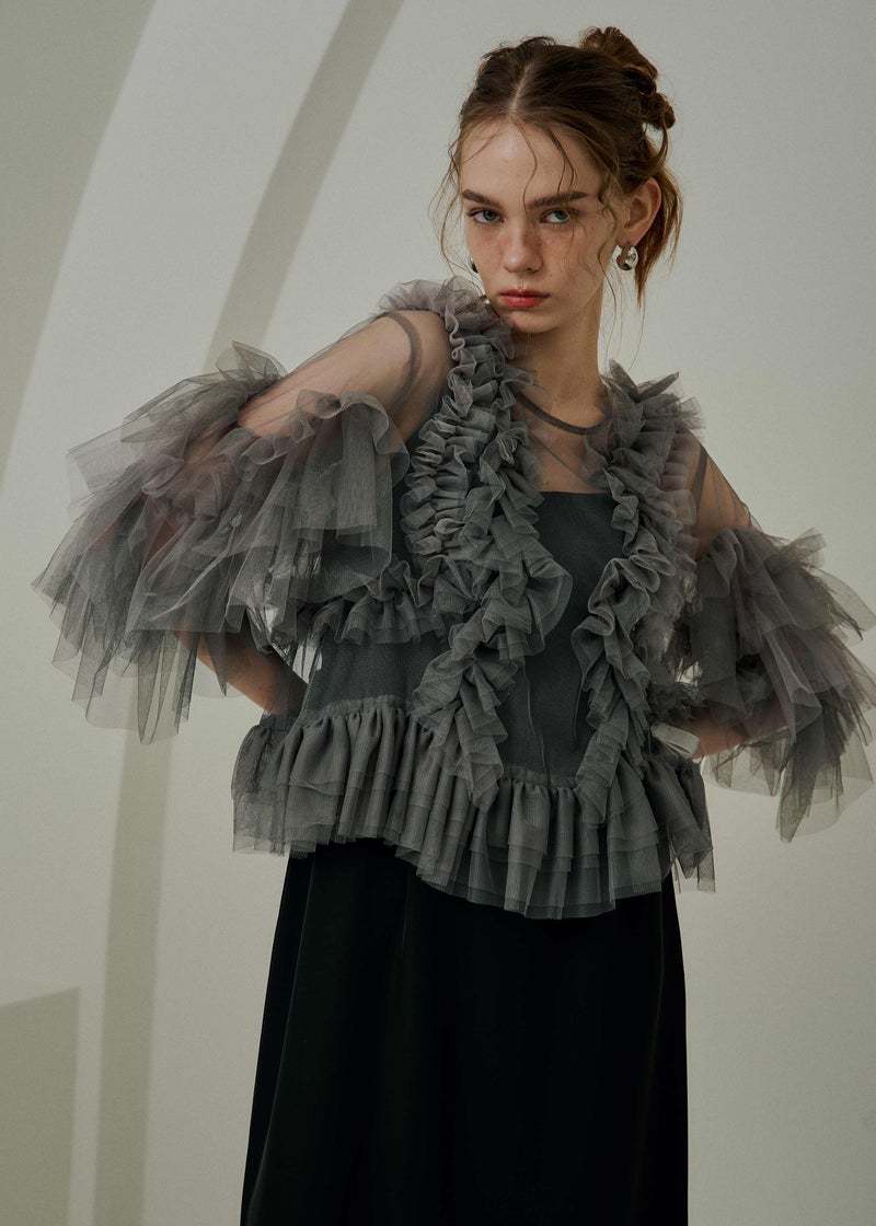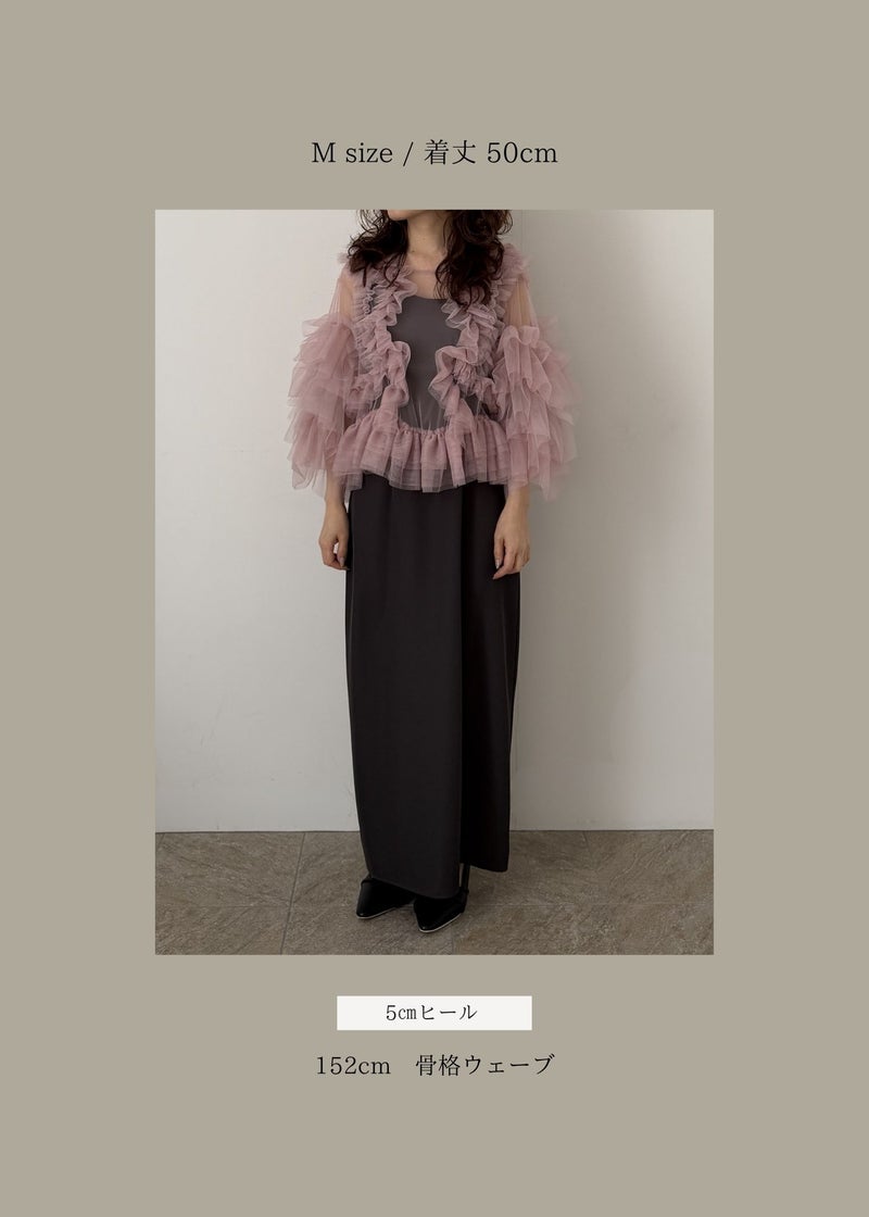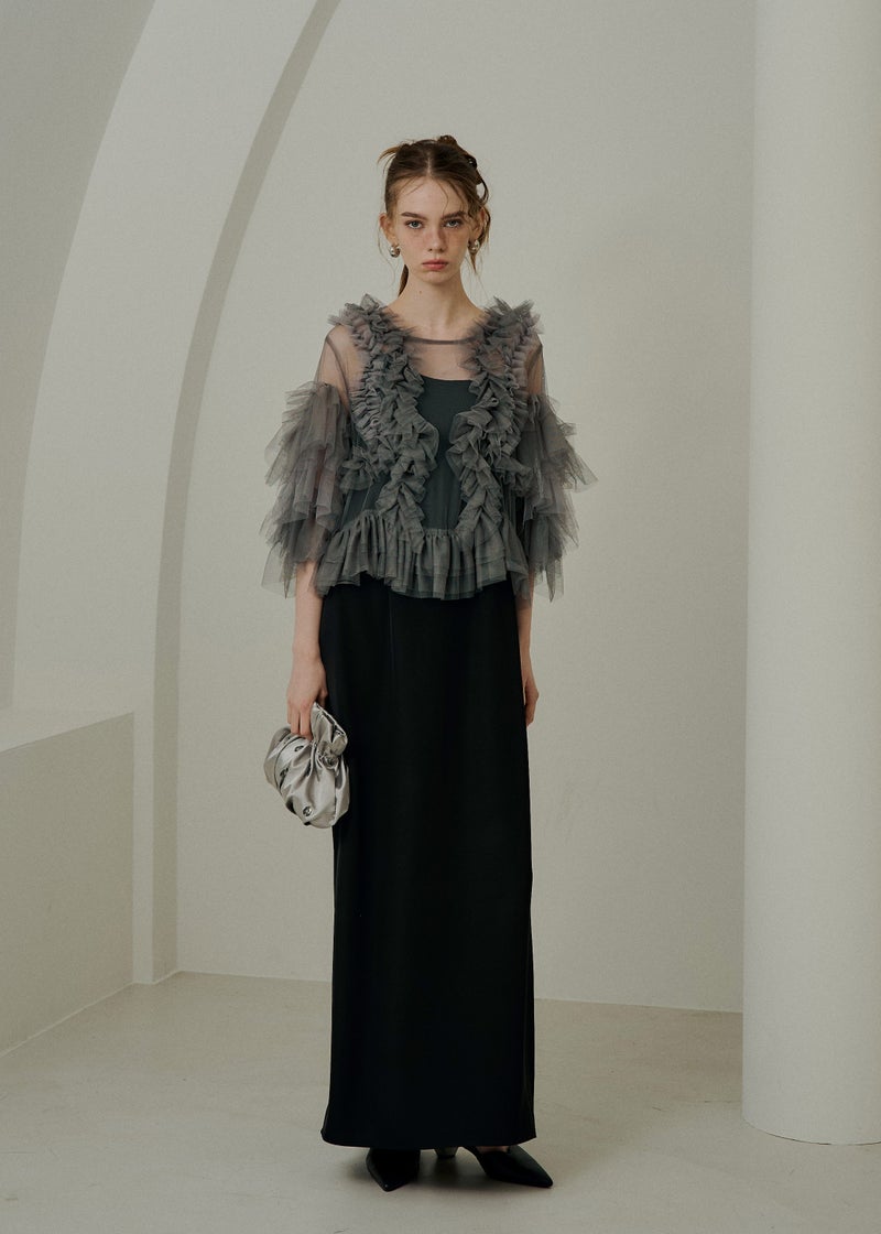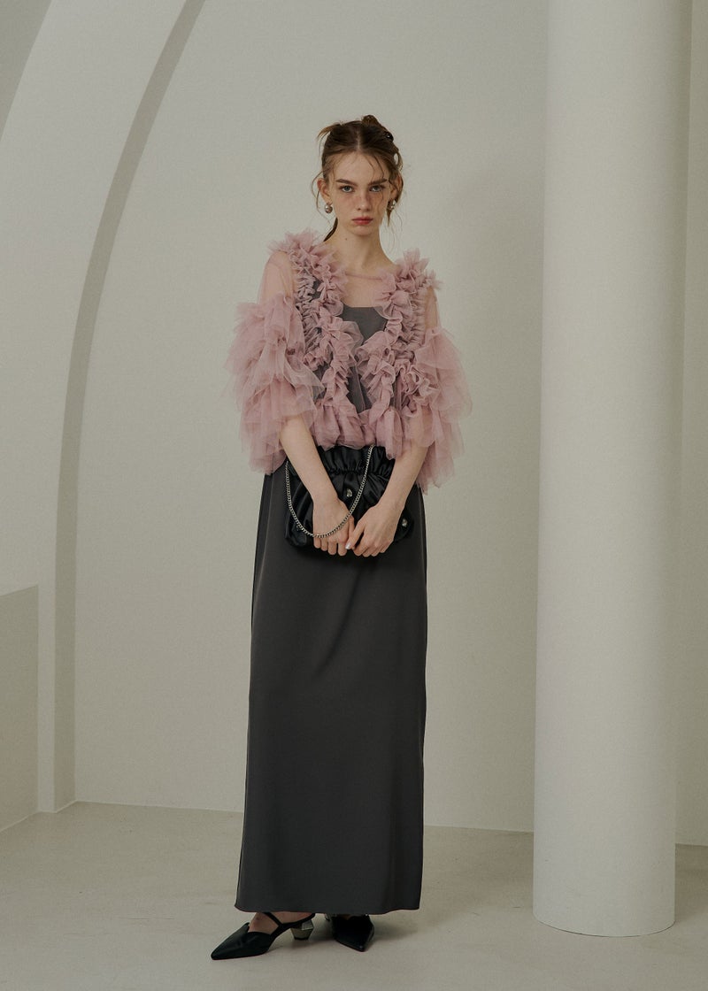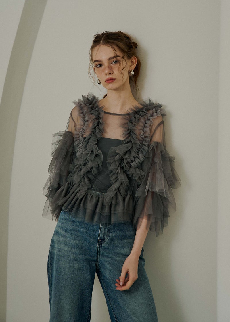 空気を纏うような軽やかなチュールに柔らかなフリルをPLUS+