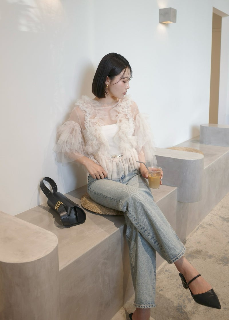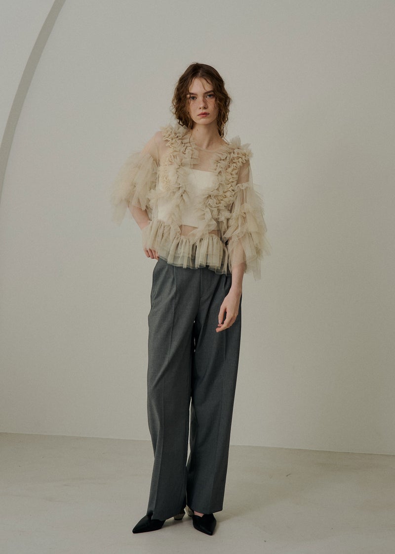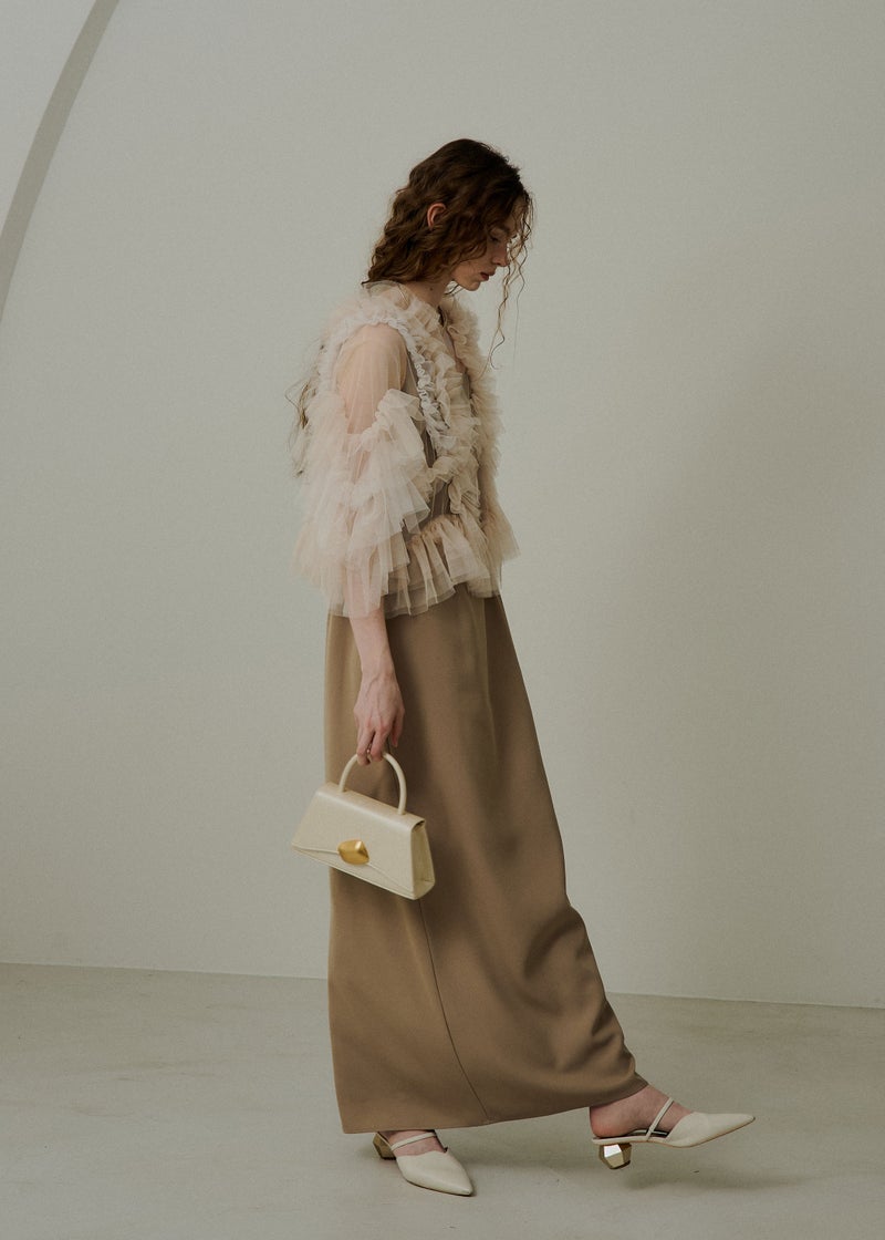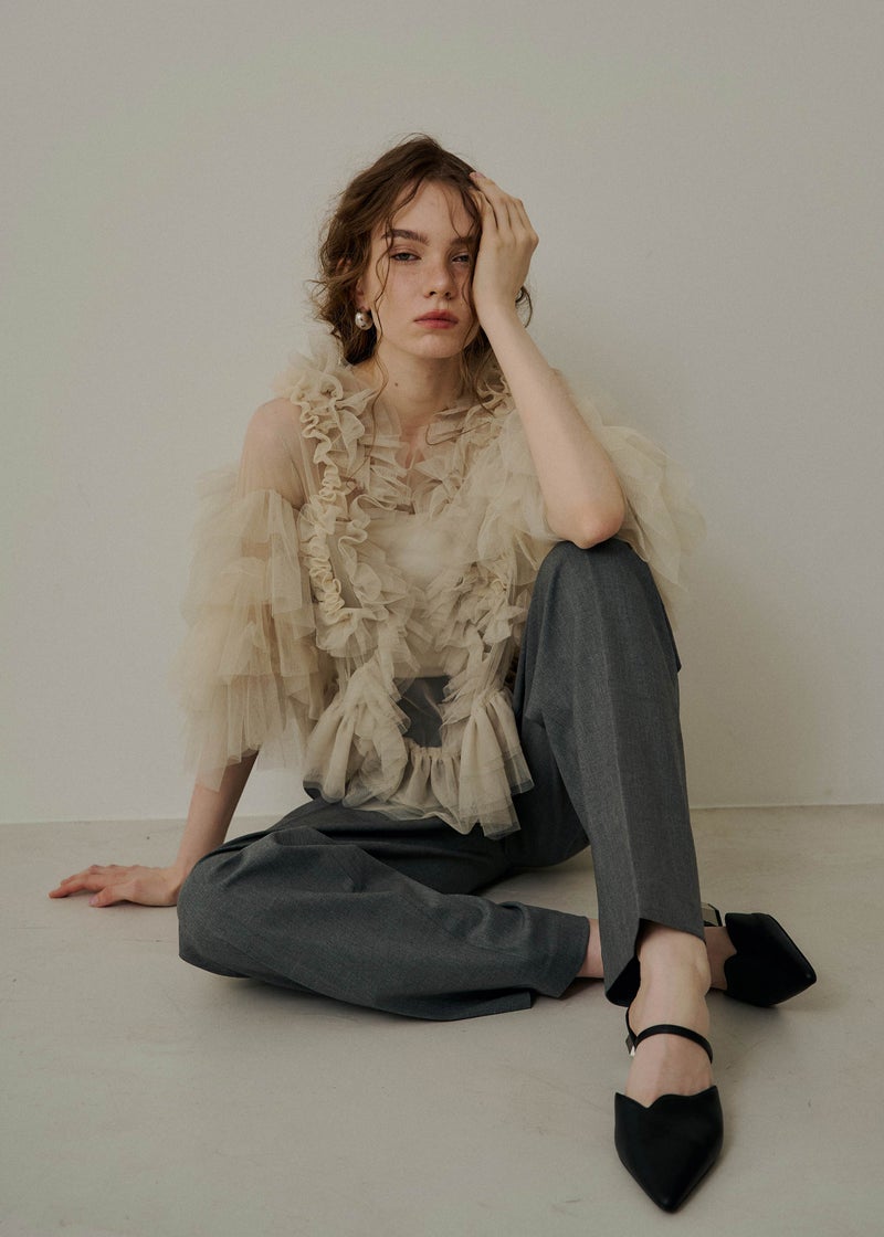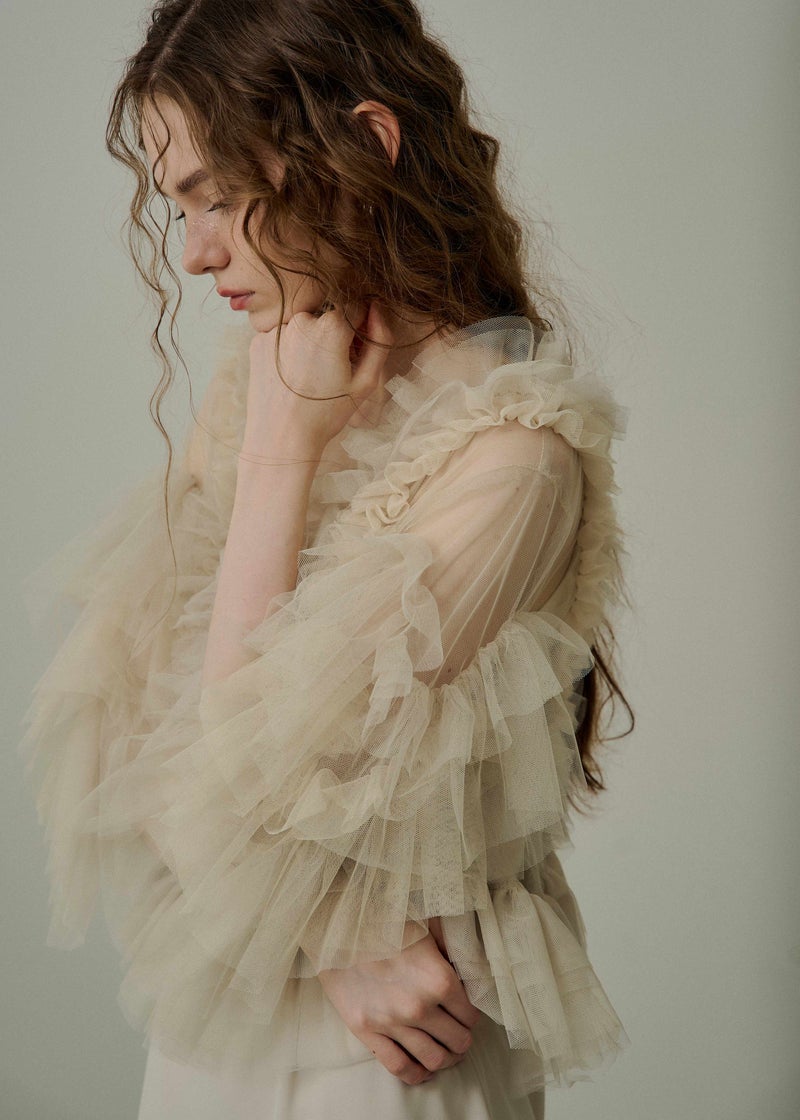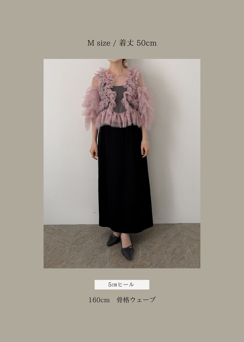 空気を纏うような軽やかなチュールに柔らかなフリルをPLUS+