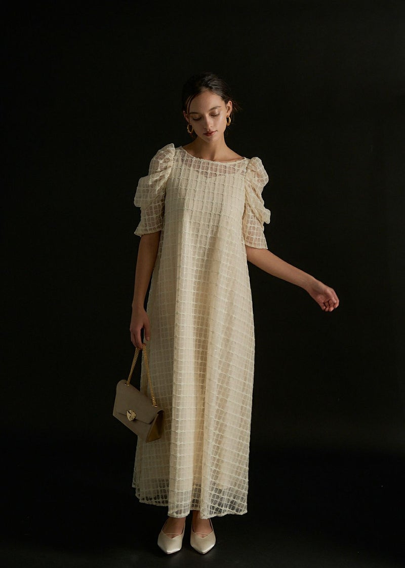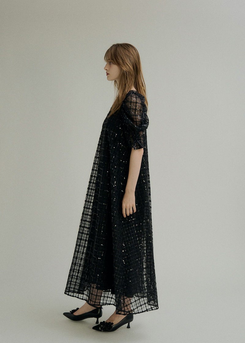 キラキラ纏う チェックレースが魅力的なワンピース。