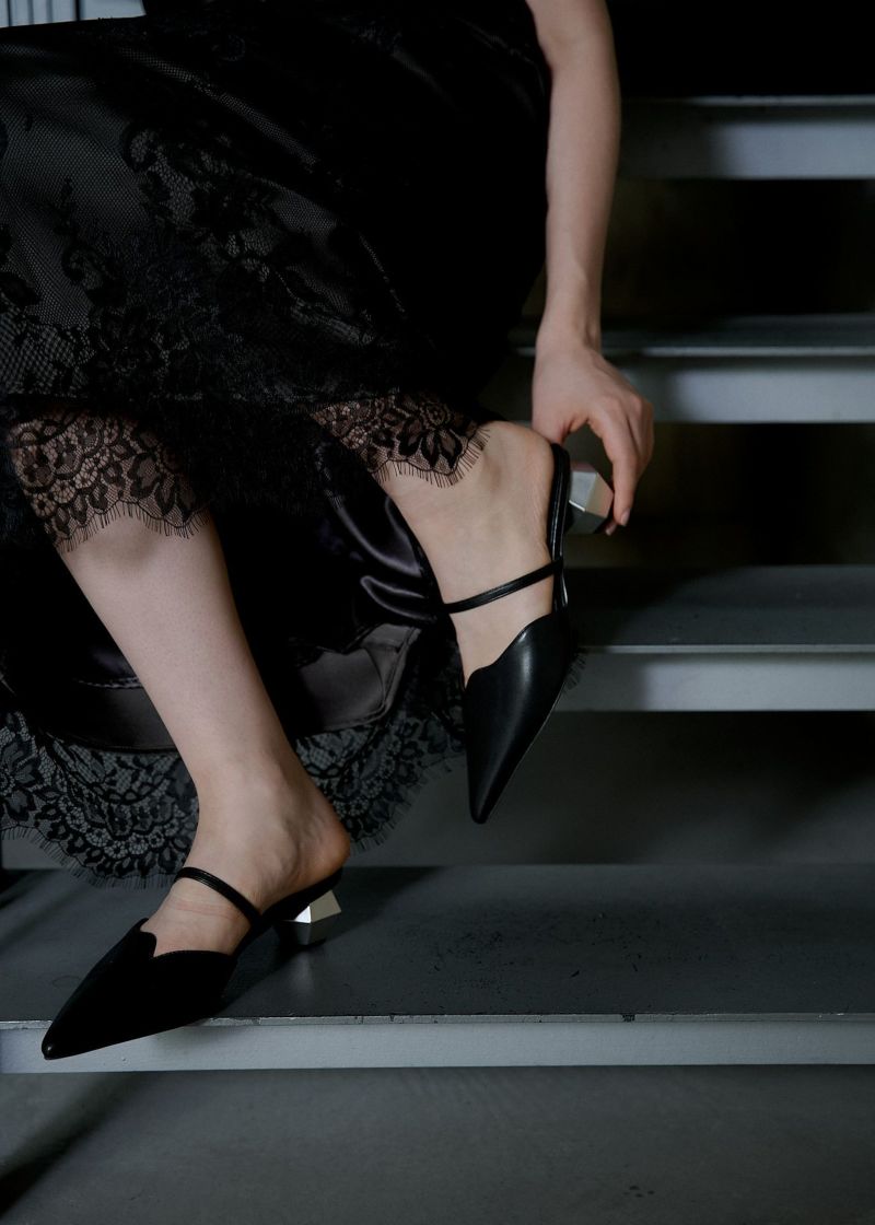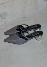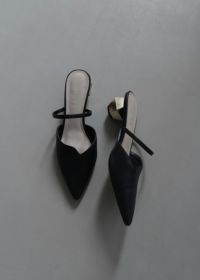 高級感溢れるレザー調でお作りしたミュールパンプスが登場。