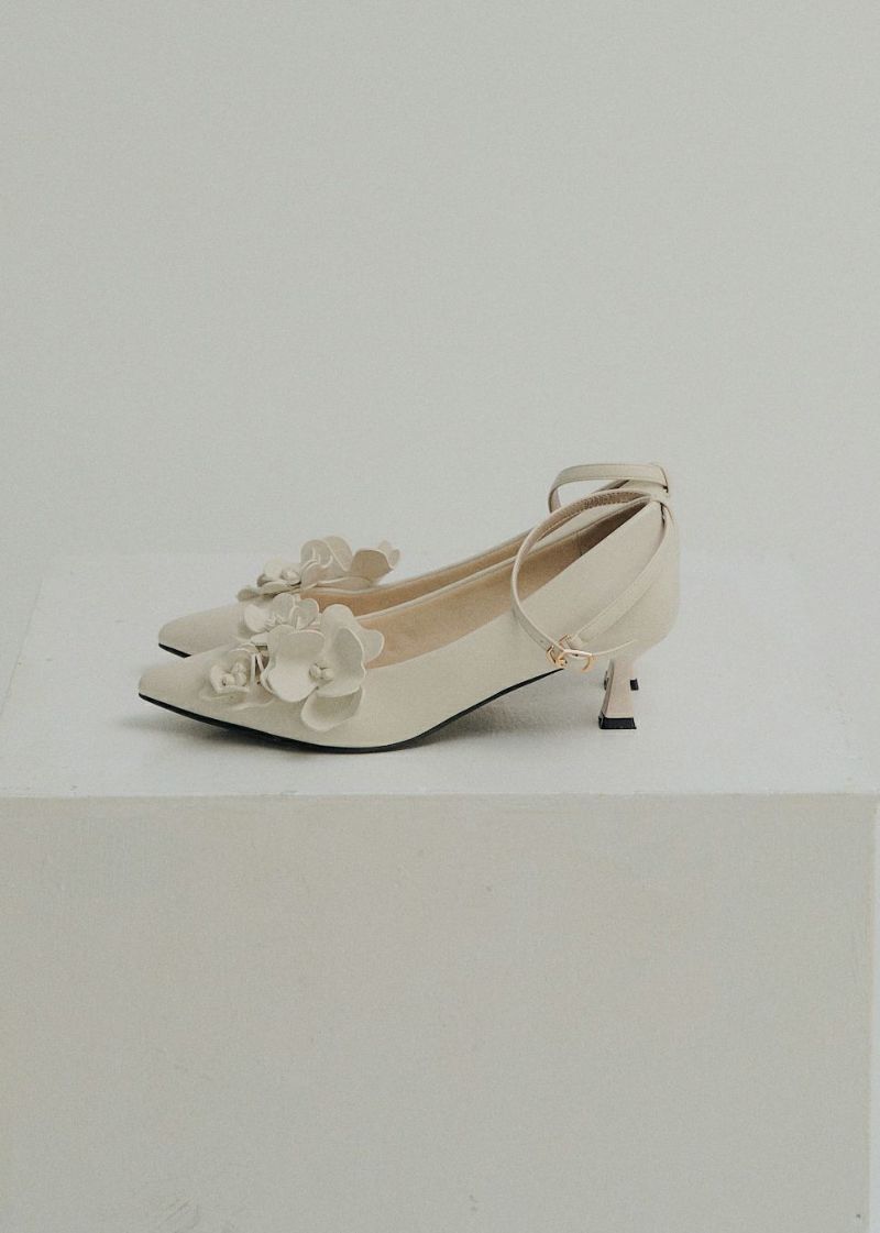 エフォートレスな佇まいに心惹かれるフラワーモチーフパンプス。