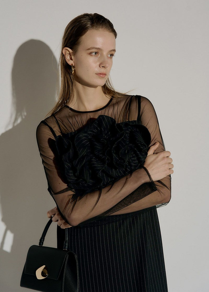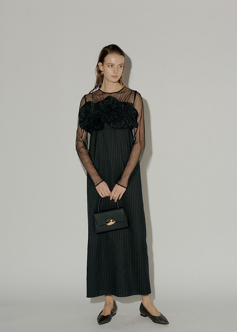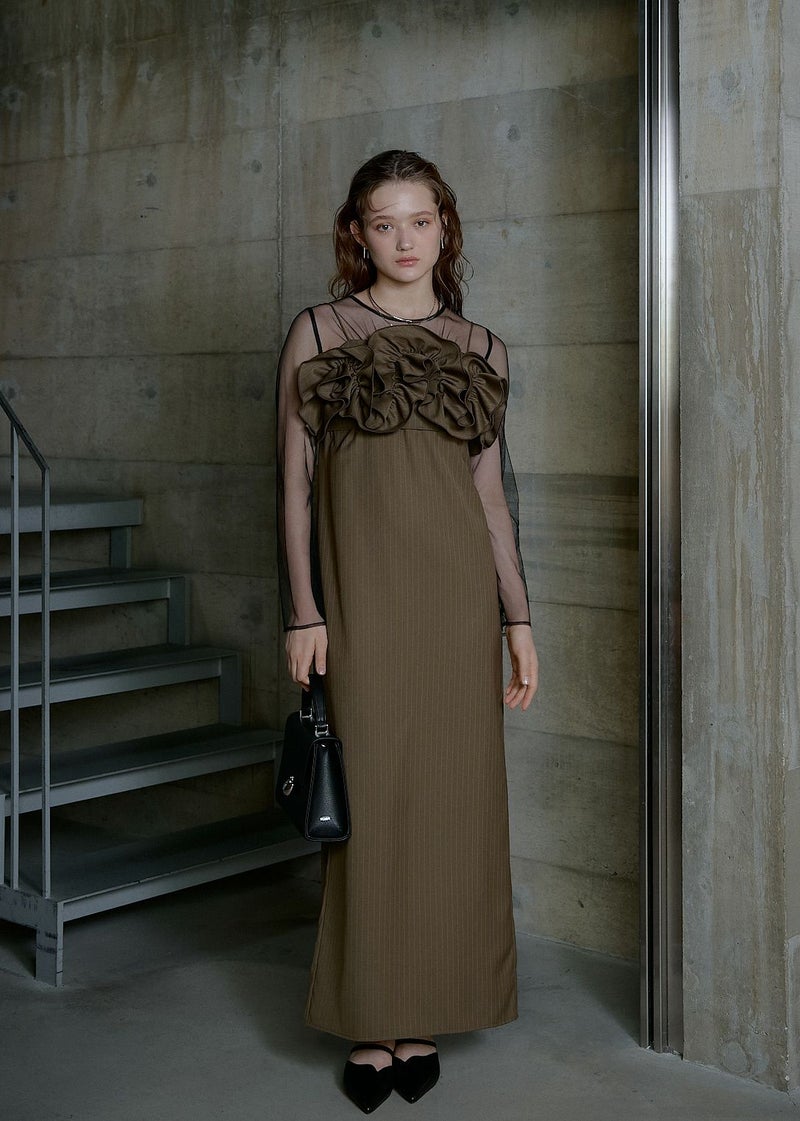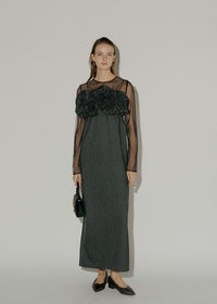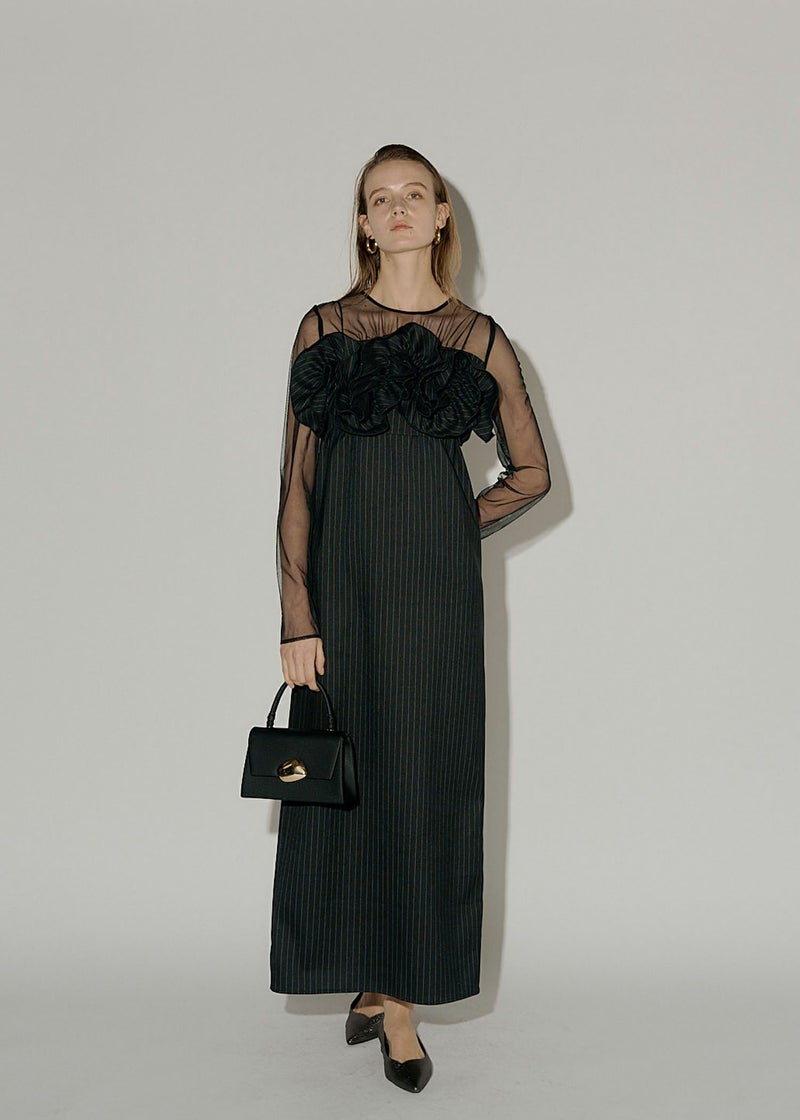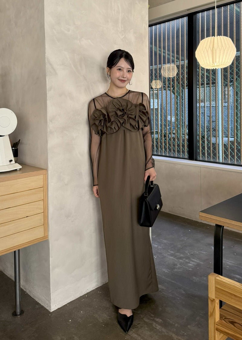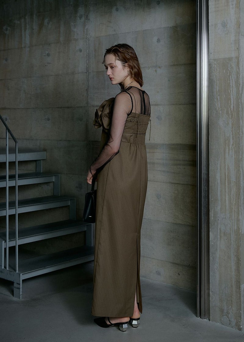 商品説明 LE'RURE初のストライプ生地を使用した 人目惹くニュアンス感たっぷりのウェーブフリルビスチェのセットドレス。 ストライプの生地は程よくハリ感がありながら 柔らかさも兼ね揃え、皺になりにくいのがポイント。 こだわりが詰まったビスチェは全体のバランス感とシルエットに追求。 身頃後ろは伸縮性があり、調節可能な肩紐でお好みの丈感に調節いただけます。 ワンピースのチュールはチクチクしない肌触りの良い生地を使用。 デコルテにはギャザーデザインを仕込みヘルシーで女性らしい印象に。 足さばきの良いスリットで、デザインに相反したストレスフリーな着心地もポイントです。 ビスチェを合わせてトレンド感のあるカジュアルなコーディネートはもちろん、 ワンピース1枚でジャケットと合わせてタイムレスなスタイルにも。 LE'RUREらしいコーディネートをたっぷりお楽しみください。 ※商品画像は、光の当たり具合や端末等の閲覧環境によって、 実際の色味と異なって見える場合がございます。予めご了承ください。 ※画像の商品はサンプルの為、実際の商品とサイズ感が異なっています。 予めご了承ください。 おすすめのシーン 結婚式・二次会・披露宴・成人式・同窓会謝恩会・パーティー・デート・演奏会・お食事会など多様なシーンのコーディネートに使えます。 商品詳細 【備考】 <ビスチェ> ・アジャスターにて着丈調節可 ・バック部分ゴム仕様 <チュールワンピース> ・バックファスナー仕様 ・デコルテ、お袖部分透け感あり ・バックスリット仕様 ・バック部分ゴム仕様 洗濯方法:クリーニング店にご相談ください。 ※その他お取り扱いに関しましては、商品に付属のアテンションタグをご覧ください。 原産国:MADE IN CHINA お問い合わせ品番:9575 着用モデル black / gray : 身長177cm brown : 身長173cm