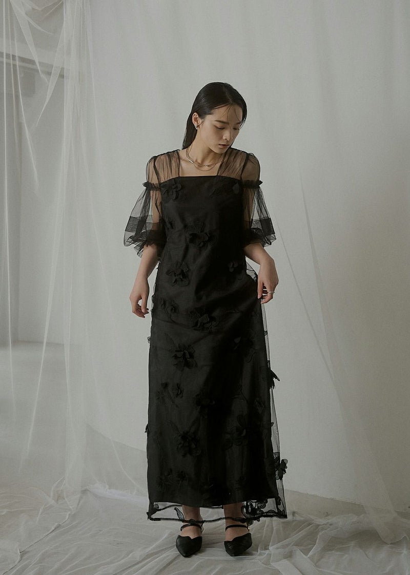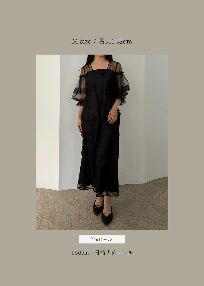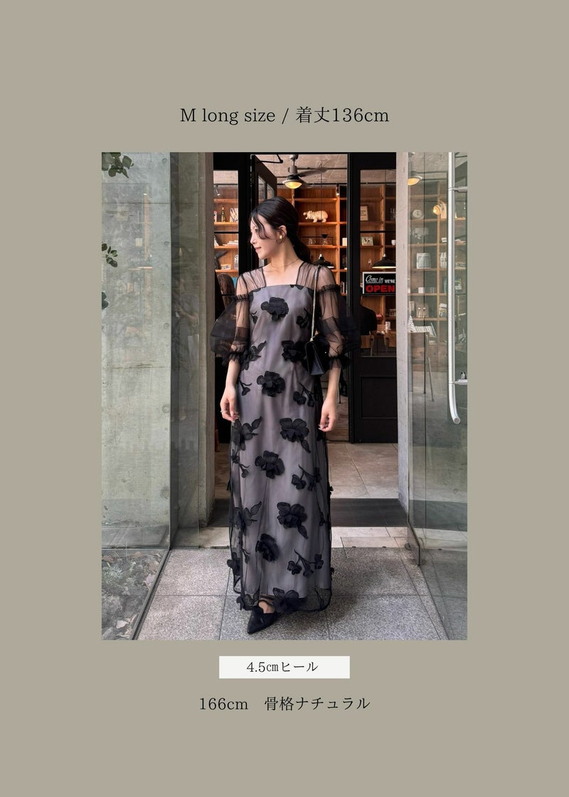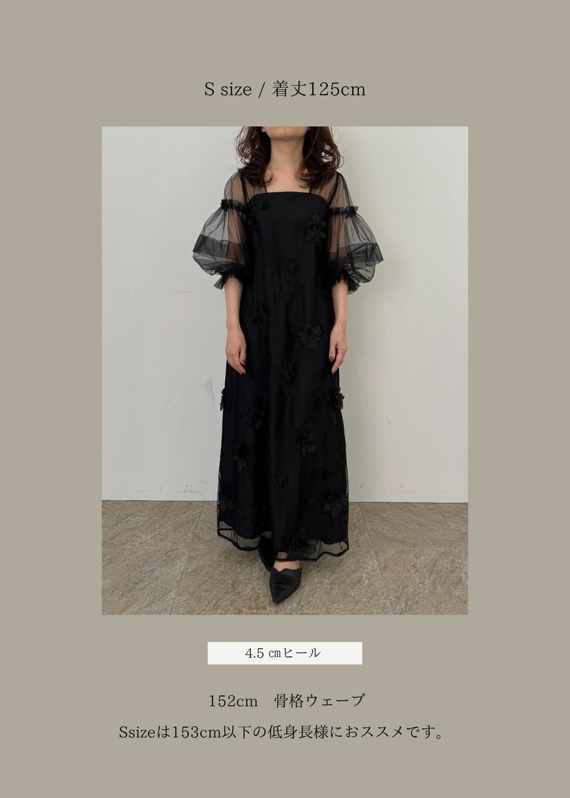 商品説明 贅沢にフラワーモチーフが施されたIラインドレス。 スクエアネックのデザインと、ショルダー部分には 透け感がありながらもギャザーをたっぷり施し、女性らしくチャーミングに。 空気を纏うようなシアー素材×ボリューム感がポイントのお袖は、 カフスにゴムを入れ、お好きな丈感に調節可能な仕様にすることでシーズンレスな一着に。 肩がストンと落ちたシルエットは華奢みえ効果もあり、細部にも拘りが詰まっています。 目を惹く上品なフラワー刺繍(※1)には、 きめ細かなチュール素材のフラワーモチーフをドッキングし、他にない立体感を。 デザインが際立つようシルエットはあえてシンプルなIラインに仕上げました。 エフォートレスでオケージョンだけでなく、幅広いシチュエーションにお勧めです。 ※1 柄の違いに個体差があります。 生地の特性として、しわ感のあるものとなっております。予めご了承ください。 ※商品画像は、光の当たり具合や端末等の閲覧環境によって、 実際の色味と異なって見える場合がございます。予めご了承ください。 ※画像の商品はサンプルの為、実際の商品とサイズ感が異なっています。 予めご了承ください。 おすすめのシーン 結婚式・二次会・披露宴・成人式・同窓会・ 2次会謝恩会・パーティー・デート・演奏会・お食事会など多様なシーンのコーディネートに使えます。 商品詳細 【備考】 ・デコルテ、お袖 部分透け感あり ・バックファスナー仕様 ・カフス部分 ゴム入り 洗濯方法:クリーニング店にご相談ください。 ※その他お取り扱いに関しましては、商品に付属のアテンションタグをご覧ください。 原産国:MADE IN CHINA お問い合わせ品番:9588 着用モデル身長163cm (M/long)