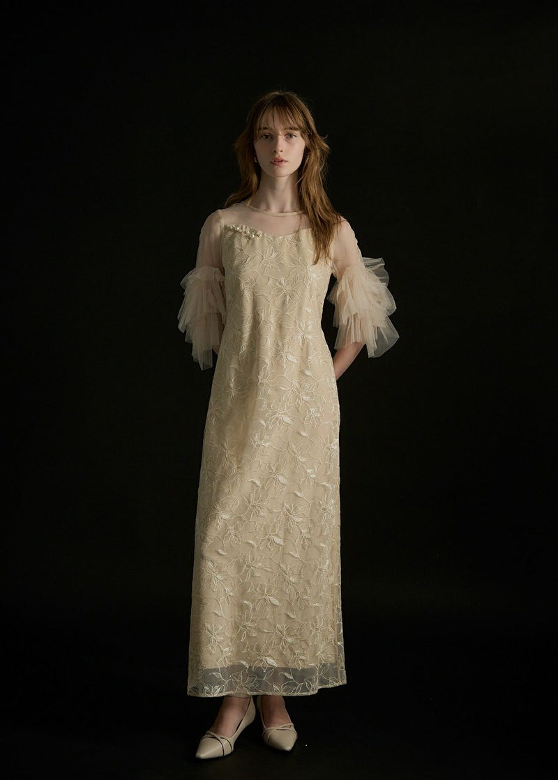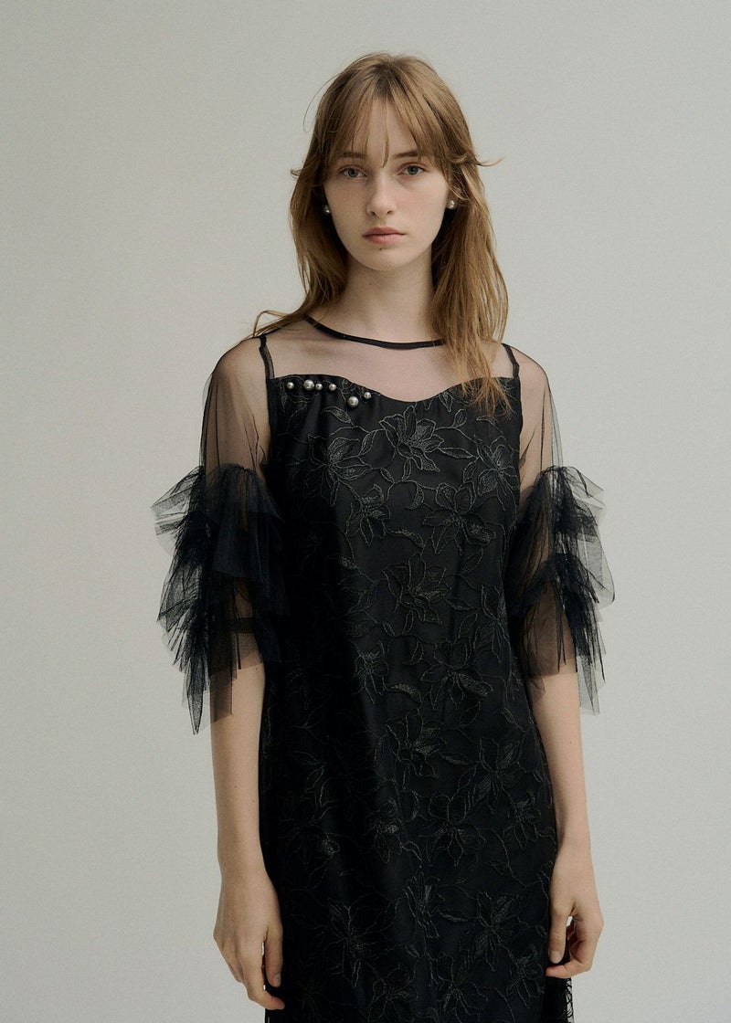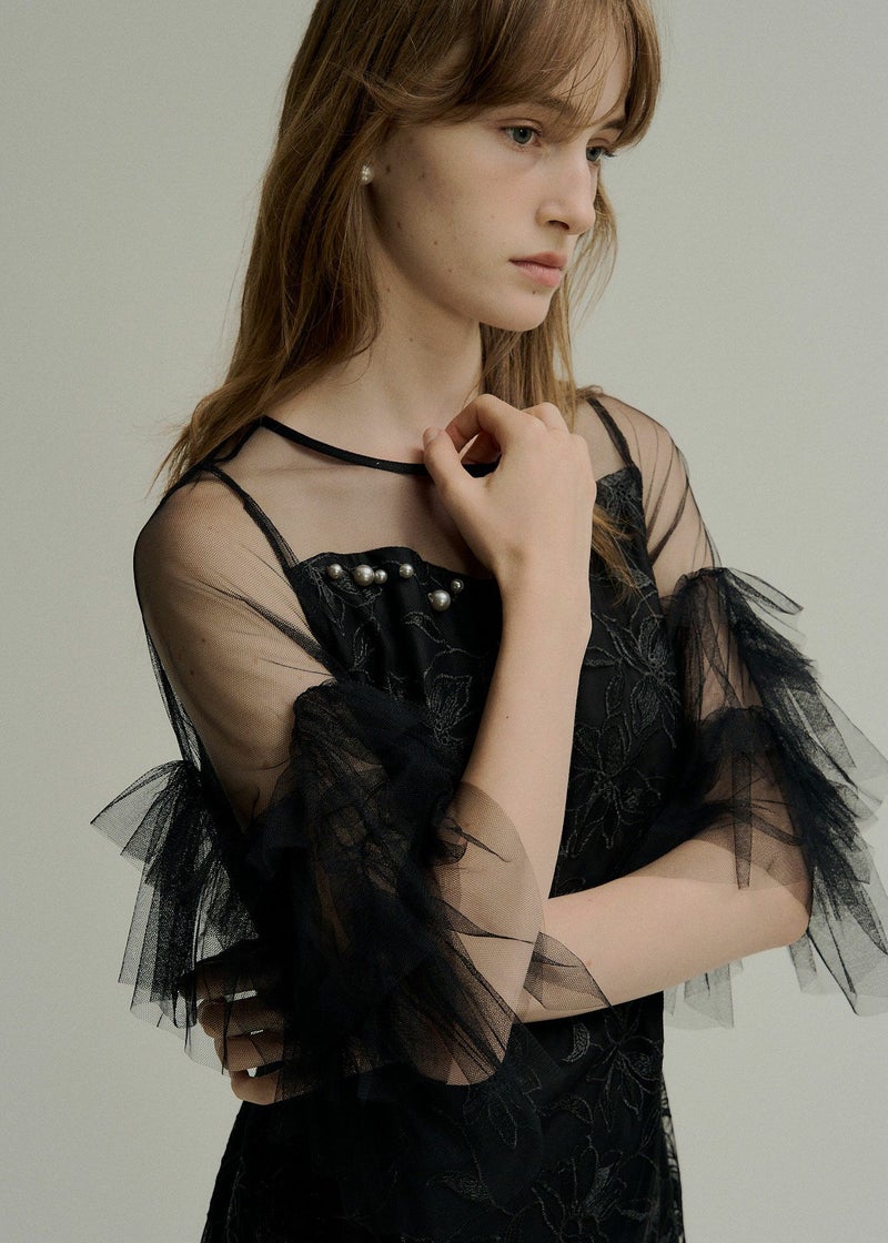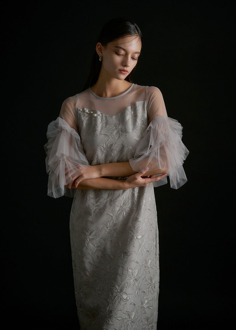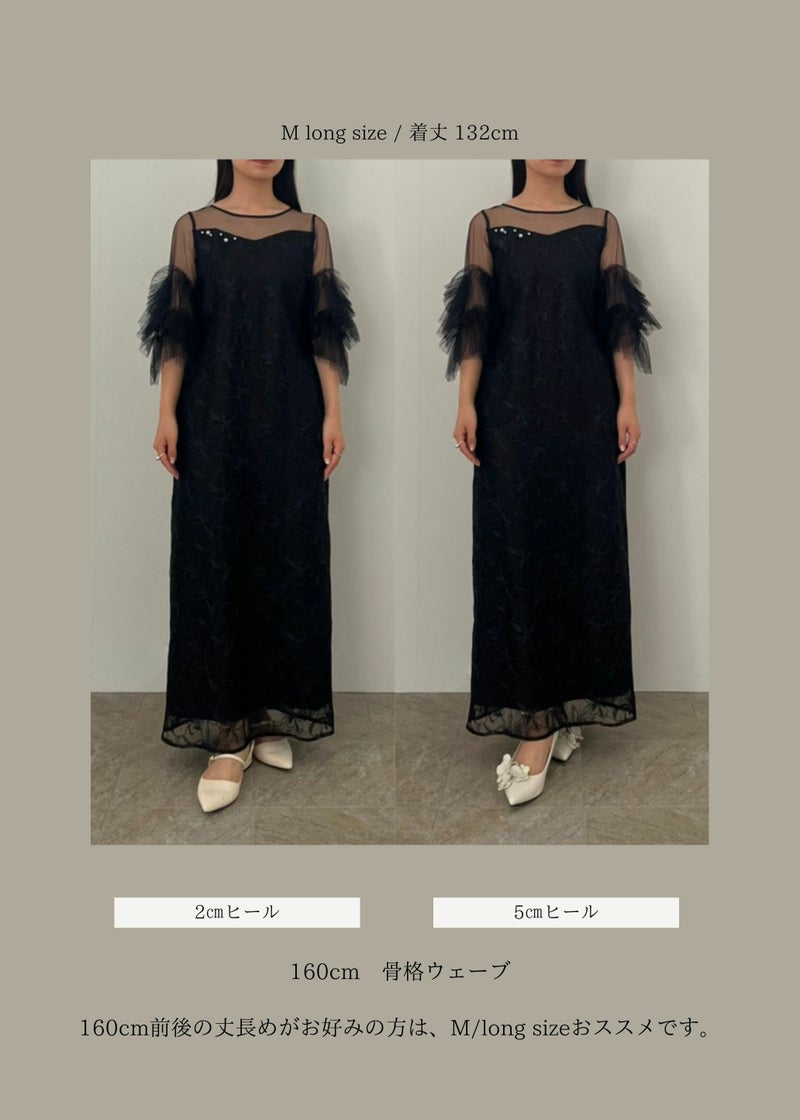 商品説明 チュール生地と刺繍を贅沢に施したオケージョンにぴったりな都会的ドレス。 着映えに追求したお袖のチュールフリルは 二の腕まわりをウェーブ状に施すことで、気になる二の腕もカバーしつつ トレンドライクな華やかしい印象に。 デコルテ部分はLE'RUREが得意とするニュアンスカットのデザインを落とし込み、 胸元にはより特別感を演出してくれるパールモチーフを+PLUS。 またボディラインを拾いすぎないゆるやかで美しいIラインシルエットには ウエストバック部分にゴムを入れ、着心地も良くスタイルUPが叶います。 オトナモードの定番BLACK , バターイエローのような女性らしいBEIGEに加え 紫がかった洗練された印象のおしゃれGRAY の3カラーをご用意。 ※商品画像は、光の当たり具合や端末等の閲覧環境によって、 実際の色味と異なって見える場合がございます。予めご了承ください。 ※画像の商品はサンプルの為、実際の商品とサイズ感が異なっています。 予めご了承ください。 おすすめのシーン 結婚式・二次会・披露宴・成人式・同窓会・ 2次会謝恩会・パーティー・デート・演奏会・お食事会など多様なシーンのコーディネートに使えます。 商品詳細 【備考】 ・お袖 部分透け感あり ・バックファスナー仕様 ・デコルテ部分パールモチーフ付 洗濯方法:クリーニング店にご相談ください。 ※その他お取り扱いに関しましては、商品に付属のアテンションタグをご覧ください。 原産国:MADE IN CHINA お問い合わせ品番:9595 着用モデル gray :身長172cm / Model size black / beige :身長174cm / Model size