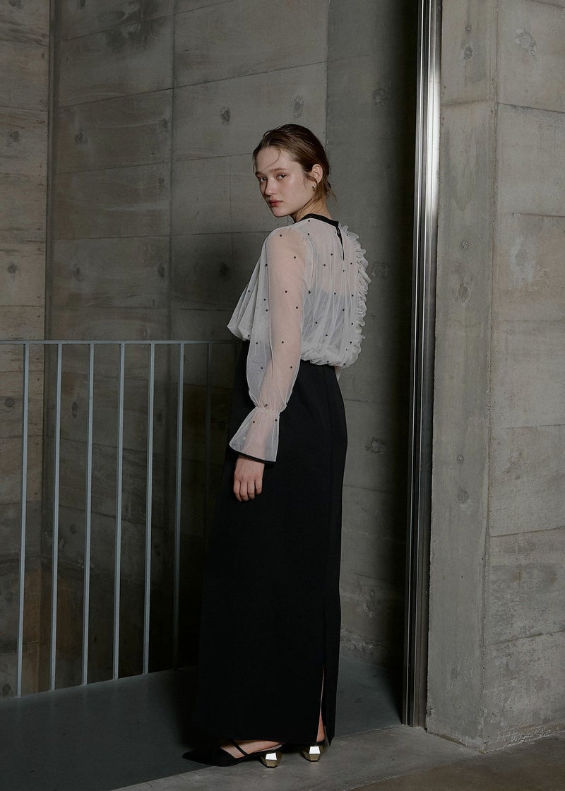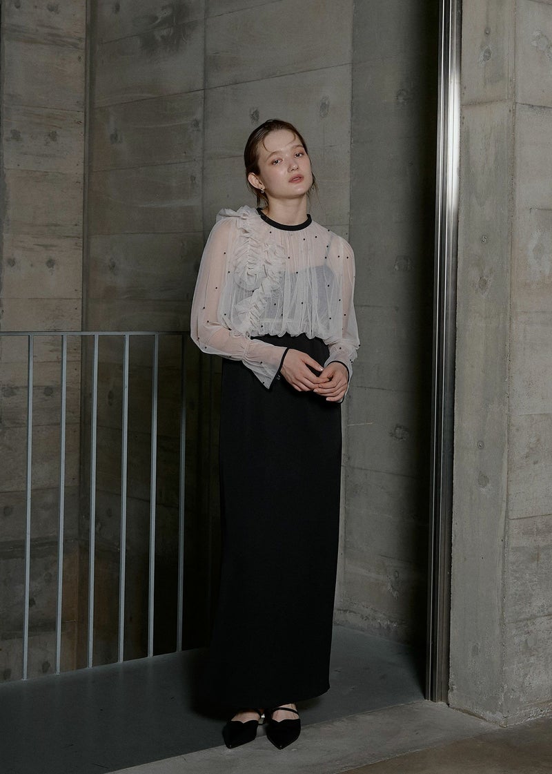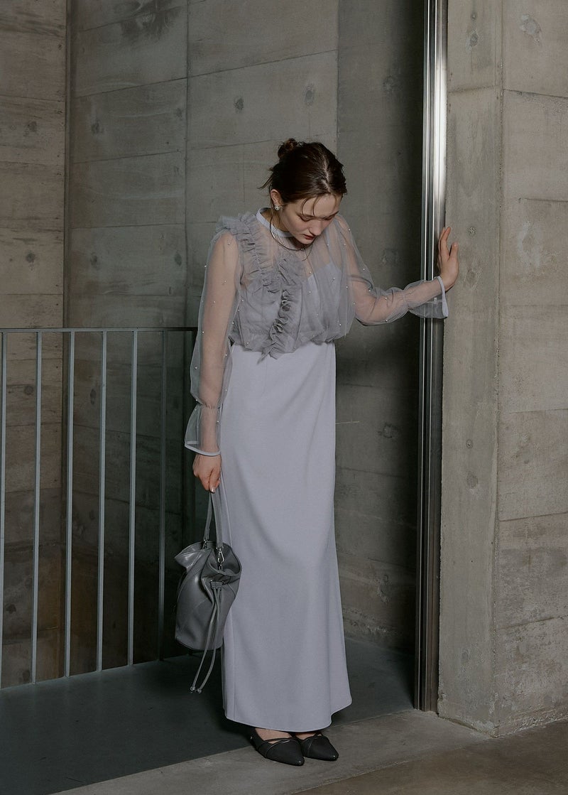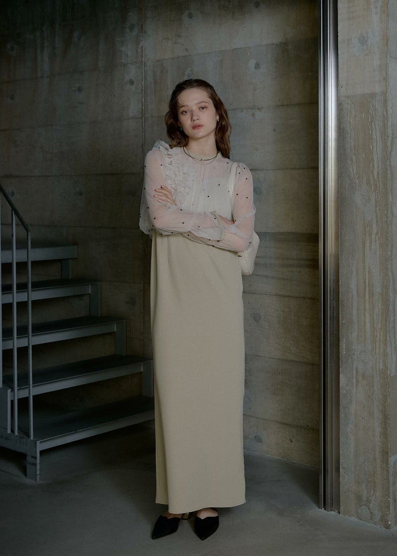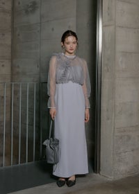 商品説明 立体的なドットと イレギュラーなフリルがポイントのセットアイテム。 キャミドレスはIラインの美シルエットに仕上げ、 シワになりにくく、デイリーにも使いやすいベーシックなデザインに。 シアートップスとのレイヤードコーデなどにも万能なワンピースです。 レイヤードしているパールトップスは カラーによってビーズカラーが異なり ブルーグレー/ベージュ にはブラックを合わせ 甘すぎない大人モードなルックに。 ブラック/ブルーグレー にはパールビーズを施すことで より女性らしくキュートな印象に。 緩やかなバルーンシルエットの裾はウエスト位置に設定し、 スタイルアップ効果のこだわりが詰まっています。 カフスにゴムを仕込むことでお好みの丈感に調節も可能。 カラーによって印象が異なるアイテムですので ぜひお好みのカラーで、特別なひと時に…? ※商品画像は、光の当たり具合や端末等の閲覧環境によって、 実際の色味と異なって見える場合がございます。予めご了承ください。 ※画像の商品はサンプルの為、実際の商品とサイズ感が異なっています。 予めご了承ください。 おすすめのシーン 結婚式・二次会・披露宴・成人式・同窓会・2次会 謝恩会・パーティー・デート・演奏会・お食事会など多様なシーンのコーディネートに使えます。 商品詳細 【備考】 <ワンピース> ・バックゴム仕様 ・アジャスターにて着丈調節可 ・サイドファスナー仕様 <パールブラウス> ・カフス部分ゴム入 ・ネック部分ホック着脱仕様 洗濯方法:クリーニング店にご相談ください。 ※その他お取り扱いに関しましては、商品に付属のアテンションタグをご覧ください。 原産国:MADE IN CHINA お問い合わせ品番:9601 着用モデル身長173cm