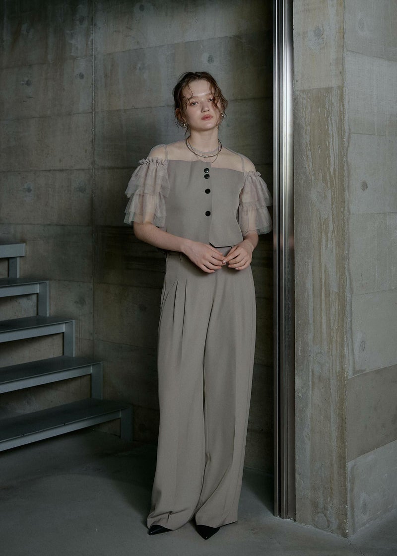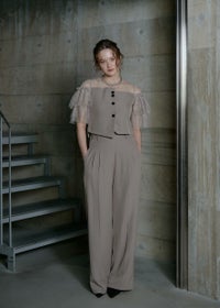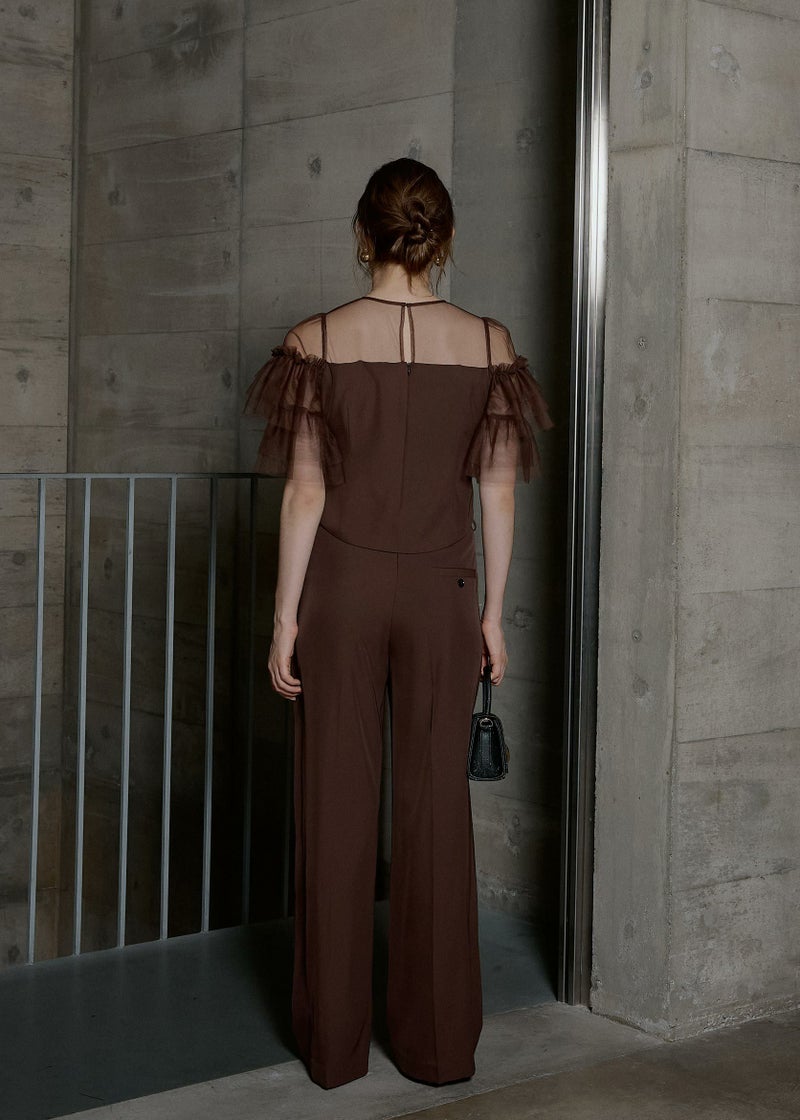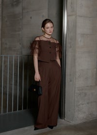 商品説明 上品さと抜け感を両立させた イレギュラーデザインのパンツドレス。 とろみのある落ち感素材が 体のラインをキレイに魅せ 動くたび、しなやかに揺れるシルエットが印象的。 肩のチュールフリルは、甘くなりすぎず 大人の華やかさをPLUS+ 二の腕まわりもさりげなくカバーしつつ、程よい肌見せで軽さを出します。 トップスはコンパクトに。 パンツはワイドストレートでスタイルUPが狙えるバランス設計。 結婚式・パーティーなどフォーマルな場はもちろん、 きちんと見せたいお呼ばれシーンにも使える一着です。 ※商品画像は、光の当たり具合や端末等の閲覧環境によって、 実際の色味と異なって見える場合がございます。予めご了承ください。 ※画像の商品はサンプルの為、実際の商品とサイズ感が異なっています。 予めご了承ください。 おすすめのシーン 結婚式・二次会・披露宴・成人式・同窓会・ 2次会謝恩会・パーティー・デート・演奏会・お食事会など多様なシーンのコーディネートに使えます。 商品詳細 【備考】 トップス ・バックファスナー仕様 ・トップにデザインボタン有り パンツ ・サイドポケット有り (バックポケットはデザイン仕様) ・バック部分ゴム入り 洗濯方法:クリーニング店にご相談ください。 ※その他お取り扱いに関しましては、商品に付属のアテンションタグをご覧ください。 原産国:MADE IN CHINA お問い合わせ品番:9607 着用モデル身長173cm/Model size