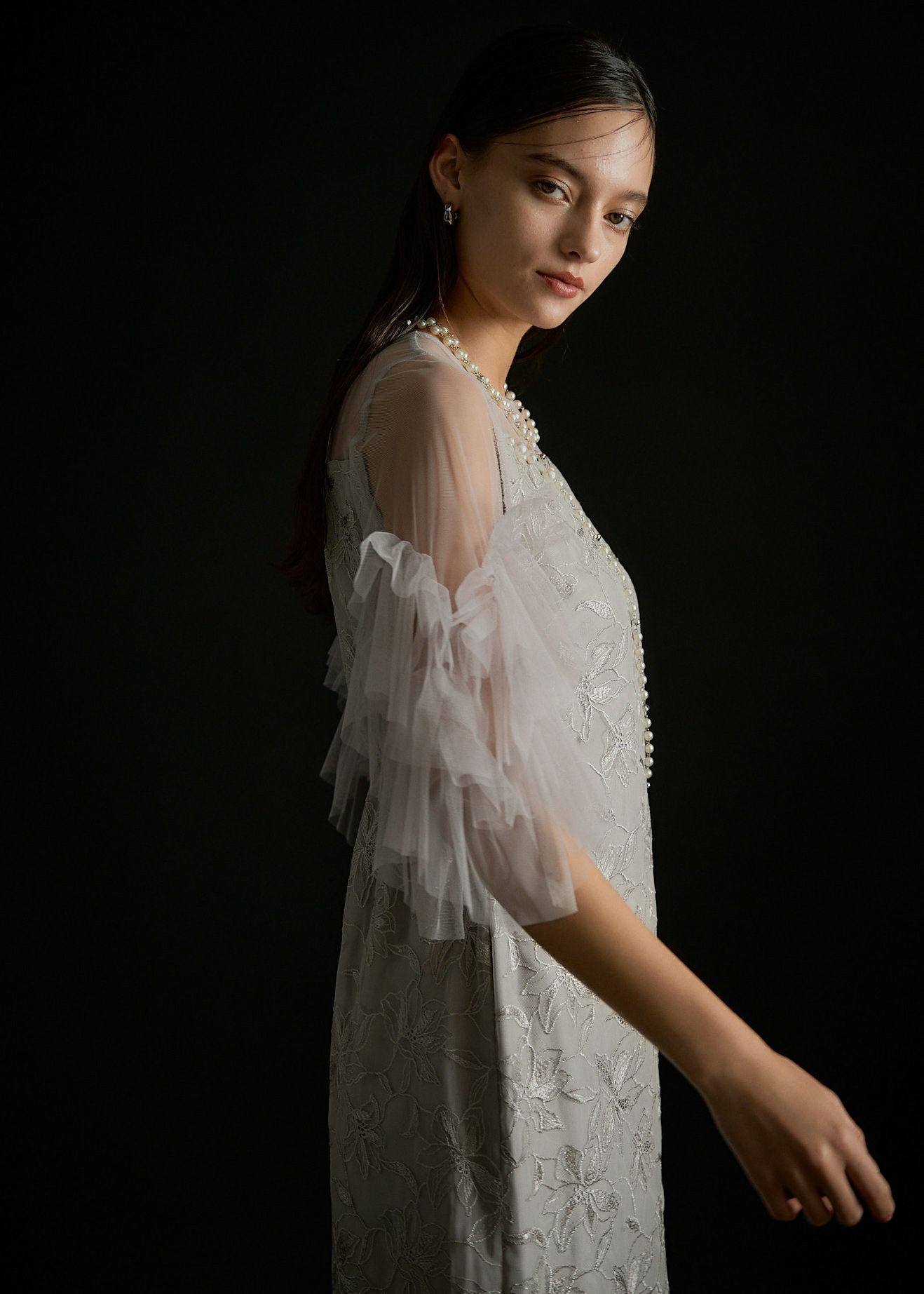 商品説明 チュール生地と刺繍を贅沢に施したオケージョンにぴったりな都会的ドレス。 着映えに追求したお袖のチュールフリルは 二の腕まわりをウェーブ状に施すことで、気になる二の腕もカバーしつつ トレンドライクな華やかしい印象に。 デコルテ部分はLE'RUREが得意とするニュアンスカットのデザインを落とし込み、 胸元にはより特別感を演出してくれるパールモチーフを+PLUS。 またボディラインを拾いすぎないゆるやかで美しいIラインシルエットには ウエストバック部分にゴムを入れ、着心地も良くスタイルUPが叶います。 オトナモードの定番BLACK , バターイエローのような女性らしいBEIGEに加え 紫がかった洗練された印象のおしゃれGRAY の3カラーをご用意。 ※商品画像は、光の当たり具合や端末等の閲覧環境によって、 実際の色味と異なって見える場合がございます。予めご了承ください。 ※画像の商品はサンプルの為、実際の商品とサイズ感が異なっています。 予めご了承ください。 おすすめのシーン 結婚式・二次会・披露宴・成人式・同窓会・ 2次会謝恩会・パーティー・デート・演奏会・お食事会など多様なシーンのコーディネートに使えます。 商品詳細 【備考】 ・お袖 部分透け感あり ・バックファスナー仕様 ・デコルテ部分パールモチーフ付 洗濯方法:クリーニング店にご相談ください。 ※その他お取り扱いに関しましては、商品に付属のアテンションタグをご覧ください。 原産国:MADE IN CHINA お問い合わせ品番:9595 着用モデル gray :身長172cm / Model size black / beige :身長174cm / Model size