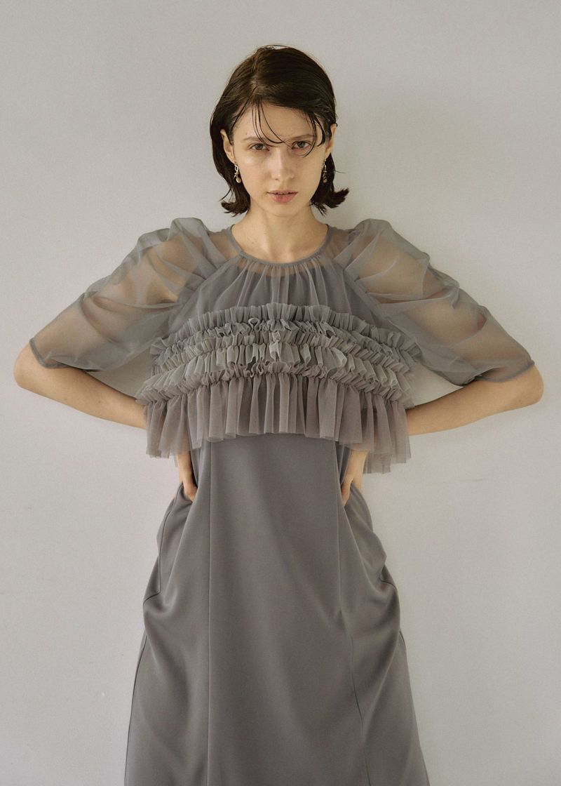 トレンド素材のチュールをたっぷりと使用したドレス。