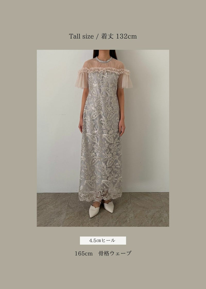 商品説明 繊細なペイズリー刺繍が映えるレースドレス。 2層のチュールを使用したお袖がより華やかな印象を与え、 うねりを効かせたデコルテのフリルデザインは 他にないLE'RUREらしさを+PLUSしました。 首元はすっきりとしたハイネックの仕様で 甘くなりがちなレースドレスを、大人っぽく引き締めてくれます。 SSにぴったりなペイズリー刺繍のレース より季節感を感じる風合いに仕上げました。 ワンランク上の一癖あるレースドレスを是非。 ※商品画像は、光の当たり具合や端末等の閲覧環境によって、 実際の色味と異なって見える場合がございます。予めご了承ください。 ※画像の商品はサンプルの為、実際の商品とサイズ感が異なっています。 予めご了承ください。 おすすめのシーン 結婚式・二次会・披露宴・成人式・同窓会・ 2次会謝恩会・パーティー・デート・演奏会・お食事会など多様なシーンのコーディネートに使えます。 商品詳細 【備考】 ・お袖 部分透け感あり ・バックファスナー仕様 洗濯方法:クリーニング店にご相談ください。 ※その他お取り扱いに関しましては、商品に付属のアテンションタグをご覧ください。 原産国:MADE IN CHINA お問い合わせ品番:9616 着用モデル身長 / Model size 75_gray :身長174cm 99_black / 05_beige :身長168cm