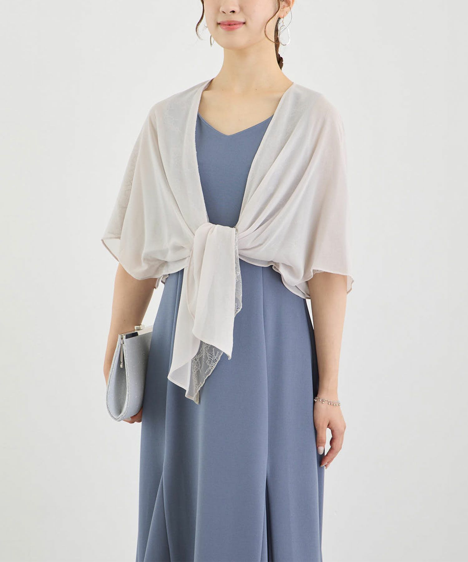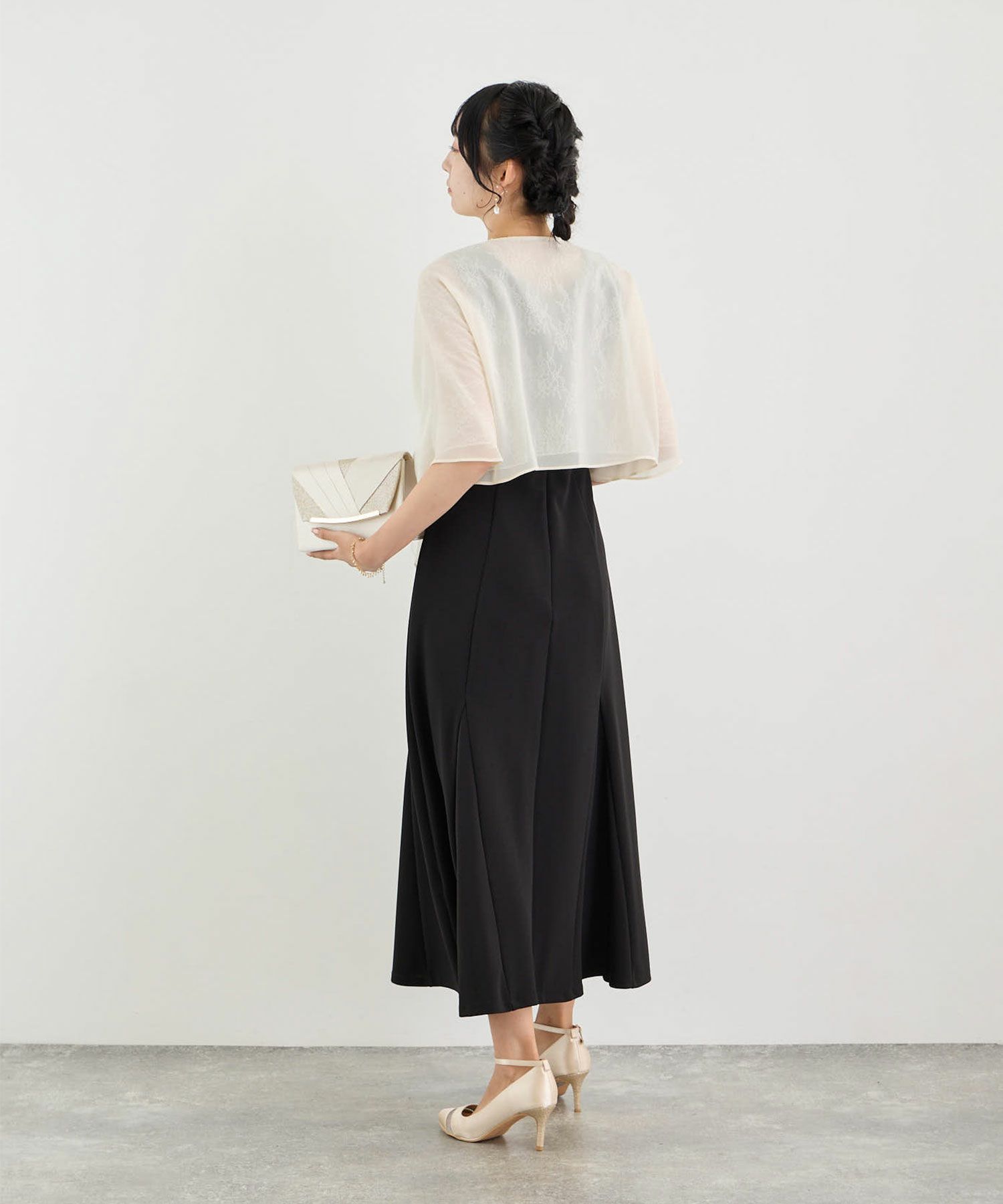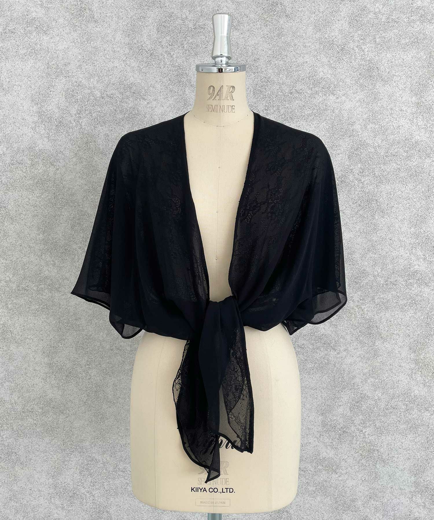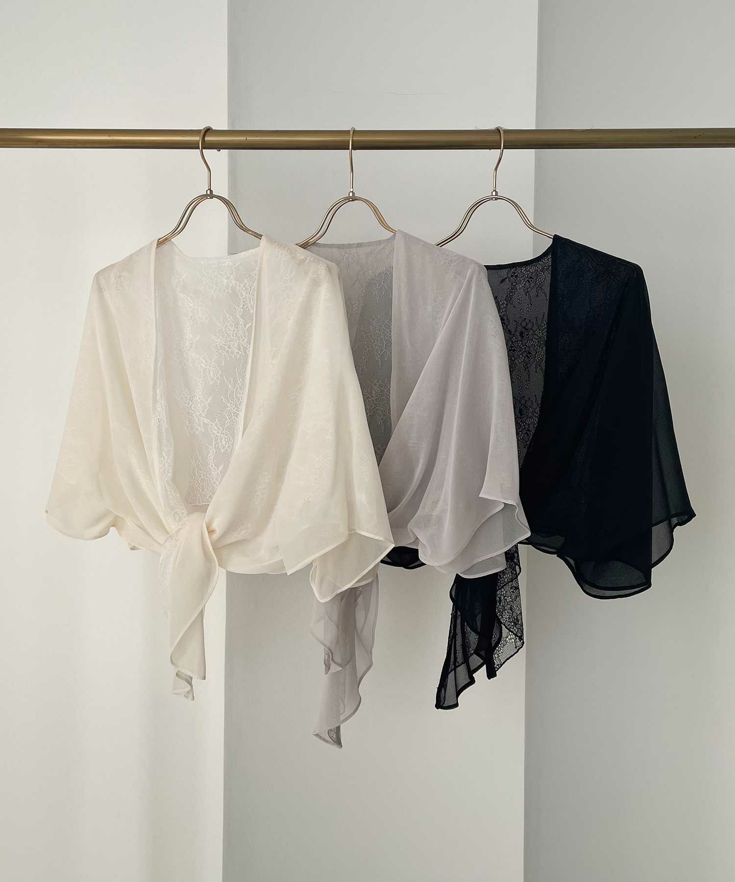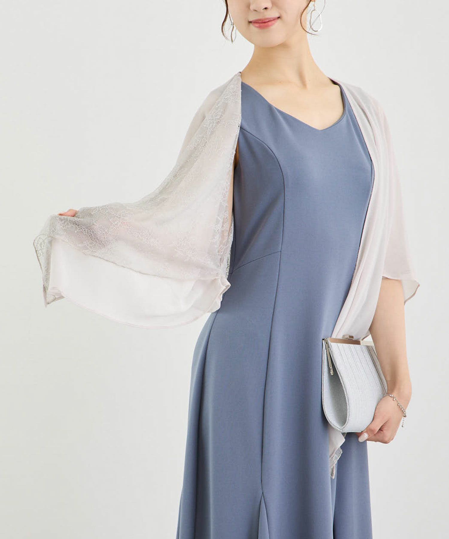 裏地にはレース素材が重ねられ、無地シフォンの表地からレースの柄がうっすら透ける事で