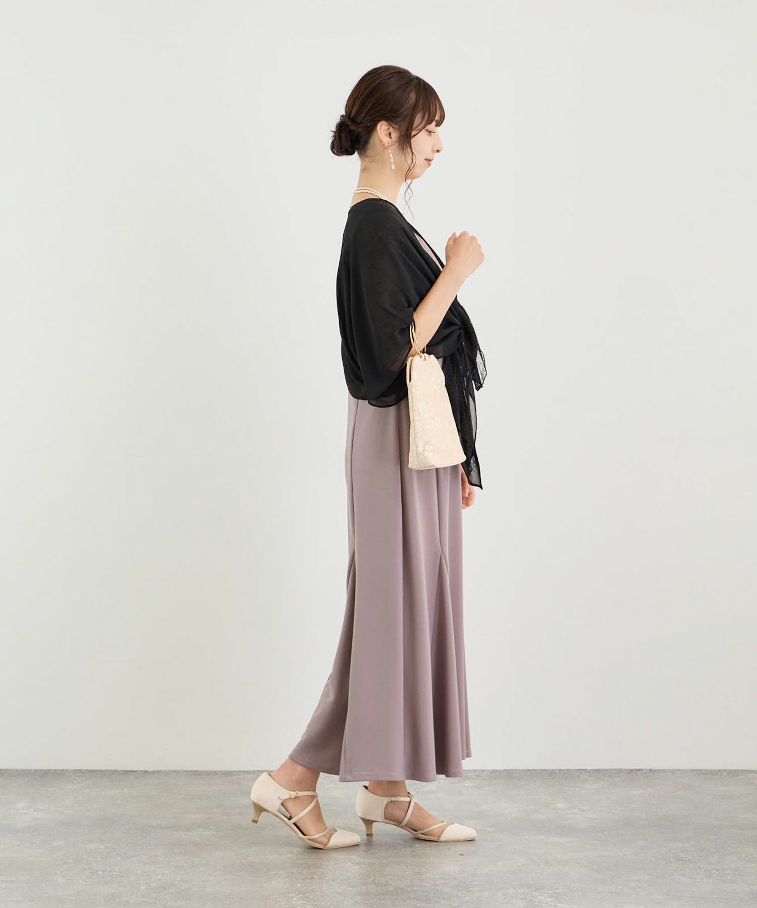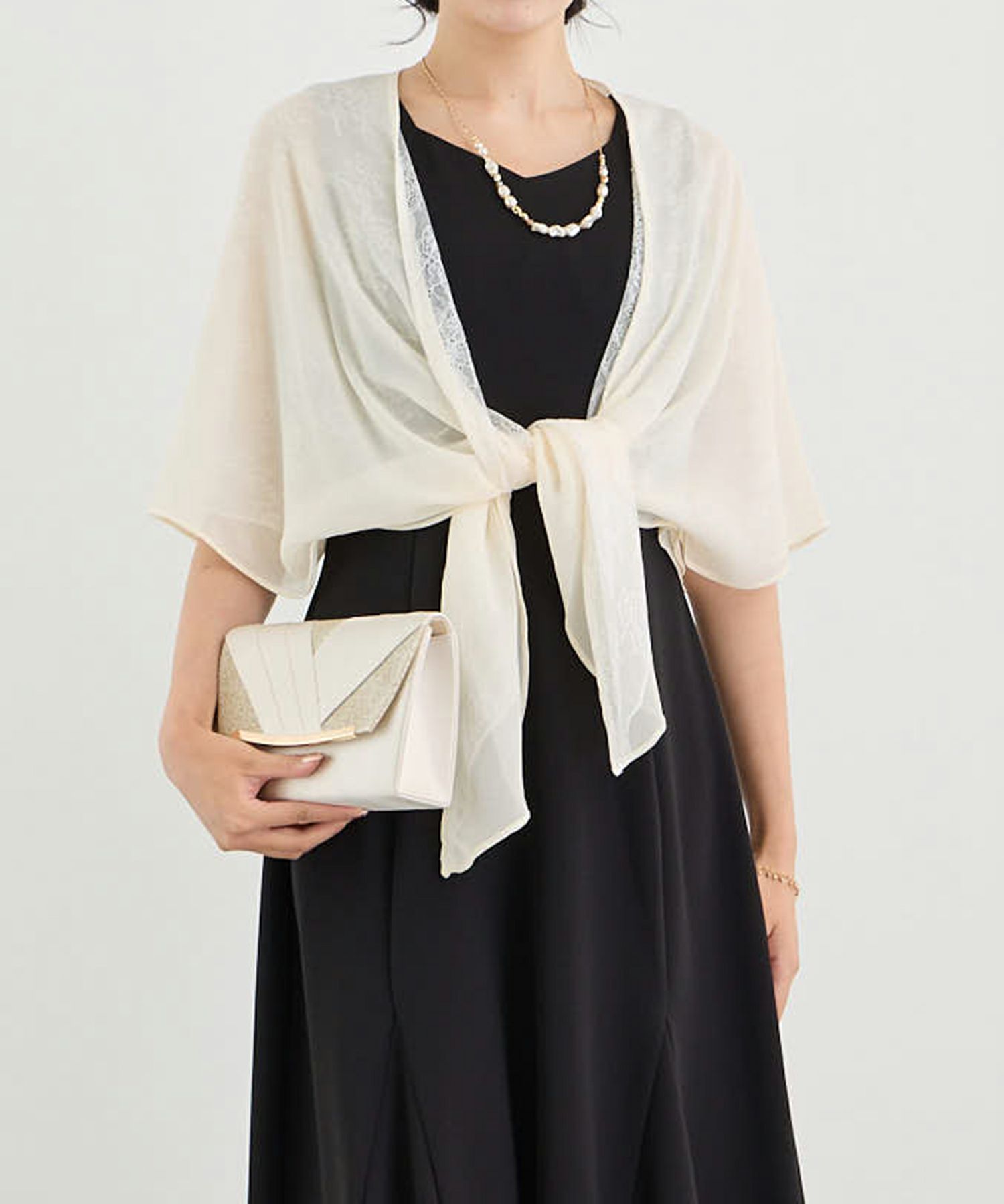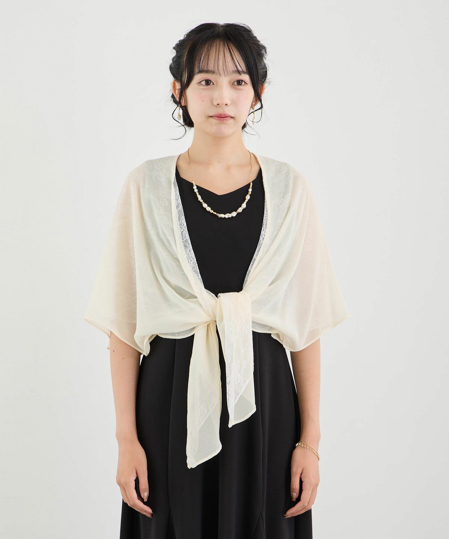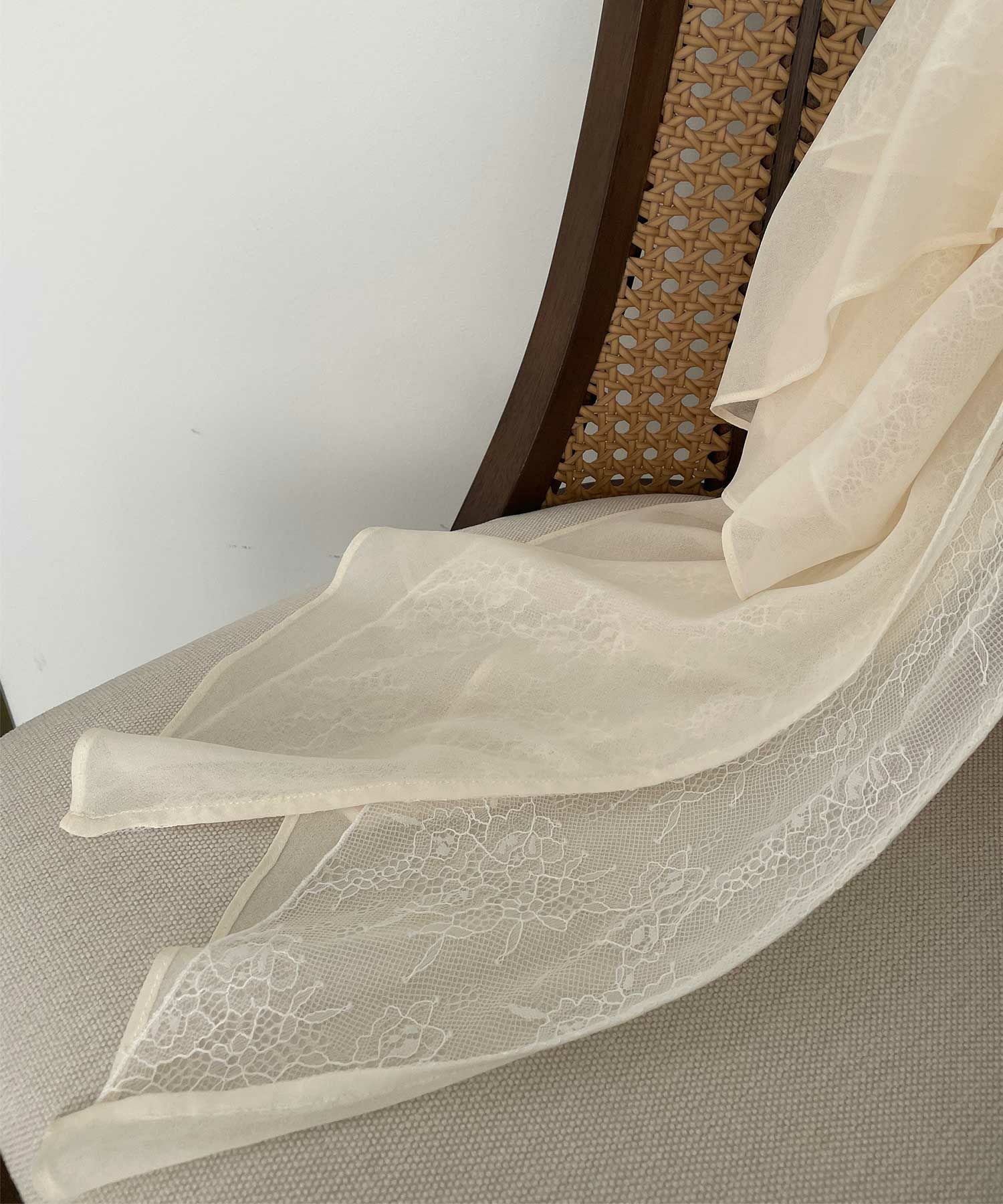 裏地にはレース素材が重ねられ、無地シフォンの表地からレースの柄がうっすら透ける事で