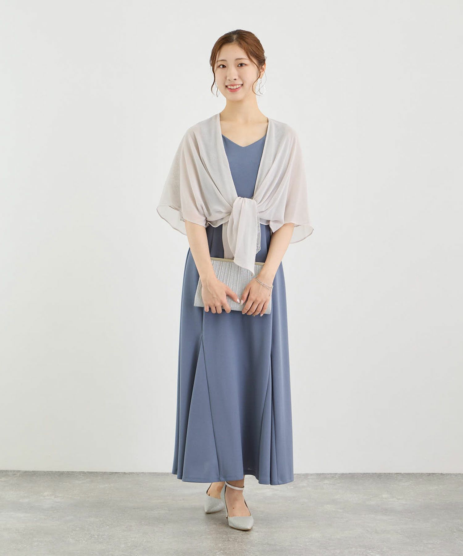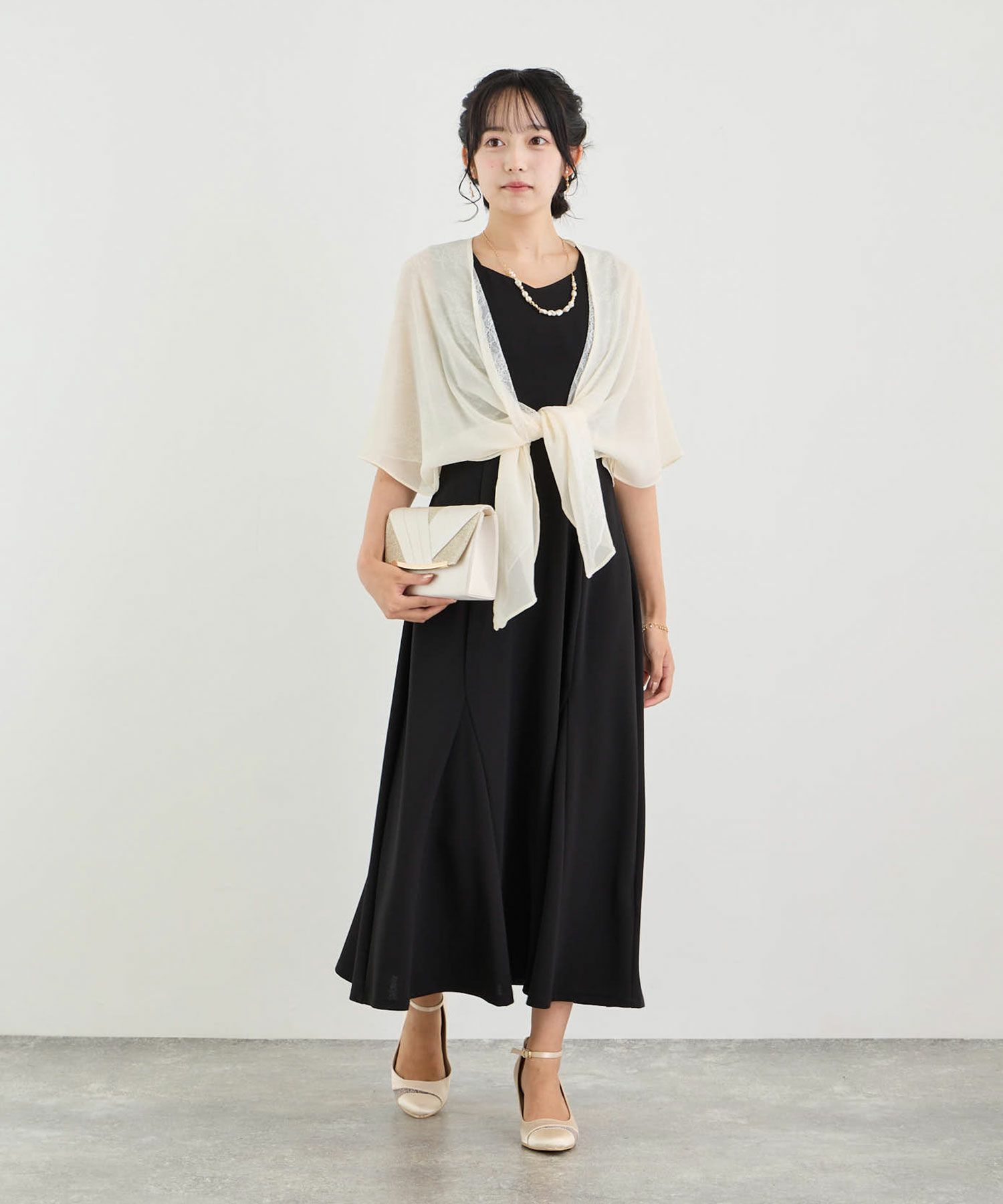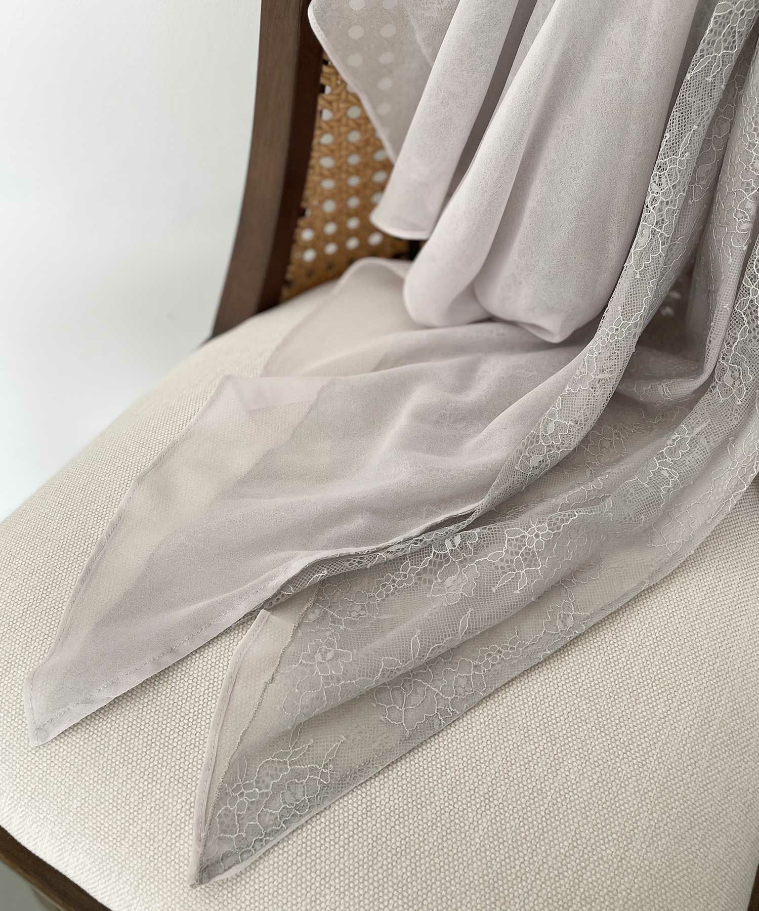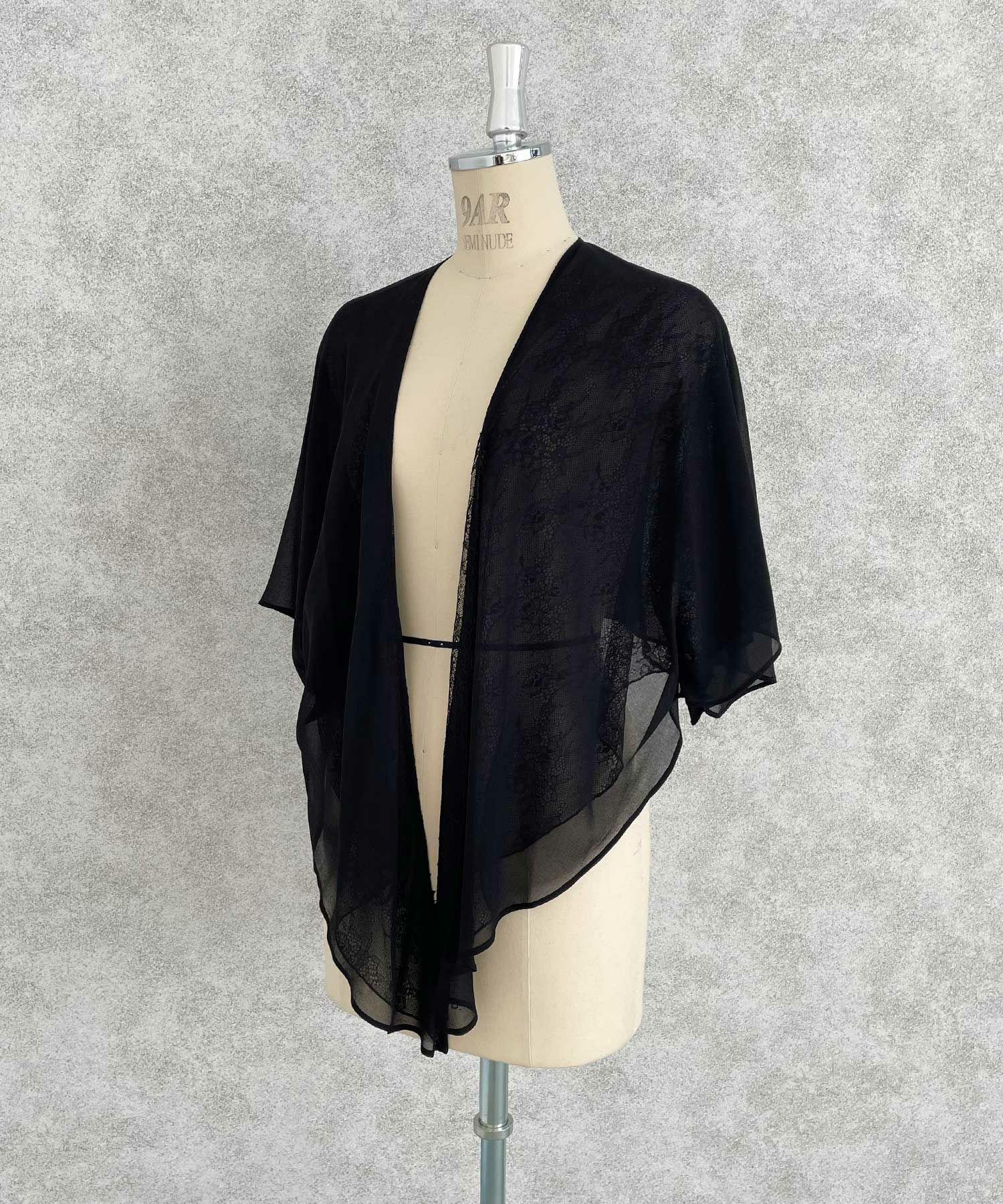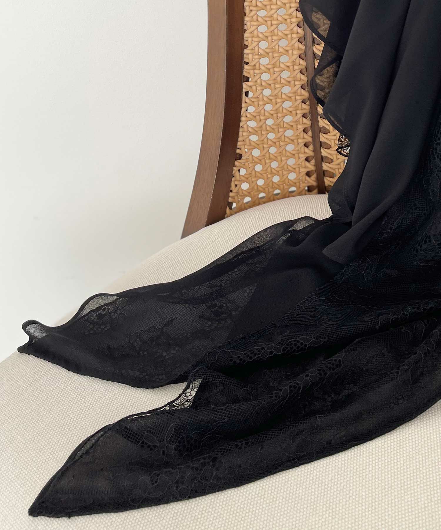 裏地にはレース素材が重ねられ、無地シフォンの表地からレースの柄がうっすら透ける事で