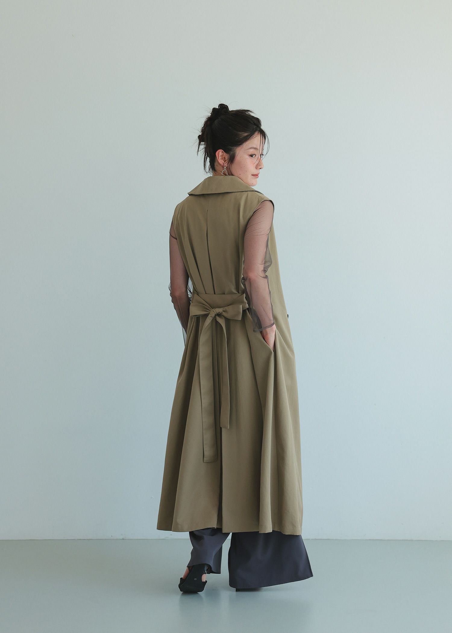 商品説明 肌寒い季節に重宝するトレンチコート 結婚式やパーティー会場までの移動や、普段使いにも使いやすいベーシックなトレンチコートです。 生地はつるっとした程よいハリ感のあるものを使用し、上品に仕上げました。 袖はラグランタイプのボリュームスリーブなので、肩幅を気にすることなく着用でき、肩回りを華奢みせしてくれます。 また、ゆったりとしているので中にニット等を着こむことも出来ます♪ ボレロとジレに分かれるセパレートタイプになっており、 ・トレンチコートとして ・ロングジレとして ・ショートジャケットとして ・ショートジャケットの上にジレを重ねて と、4WAYの着こなしが可能な万能アイテムです。 どんなドレスにも、またオフィススタイルやカジュアルにも合わせやすく、着こなし次第でオールシーズン着用いただけるアイテムです。 ・黒に近い、シックなダークネイビー ・トレンチ定番のキャメルタイプのベージュ ・グレイッシュなニュアンスがおしゃれなライトベージュ 以上の3色でご用意いたしました。 【関連トピックス】是非ご覧ください! 「会場までアウター何を着る?結婚式でのコート選びマナー」 ※商品画像は、光の当たり具合やパソコンなどの閲覧環境により、実際の色味と異なって見える場合がございます。予めご了承ください。 おすすめのシーン 卒業式(卒園式)、入学式(入園式)、七五三、結婚式、発表会、同窓会、保護者会、懇談会、オフィスまで、多様なシーンのコーディネートにご使用いただけます。 商品詳細 〈備考〉 ・裏地:あり ・伸縮性:なし ・生地の厚さ:薄手 ・光沢:なし ・ポケット:あり ・ベルトあり ・ベルトループあり 洗濯方法:クリーニング店にご相談ください。 ※その他お取り扱いに関しましては、商品に付属のアテンションタグをご覧ください。 原産国:中国 お問い合わせ品番:25184 着用モデル身長160cm