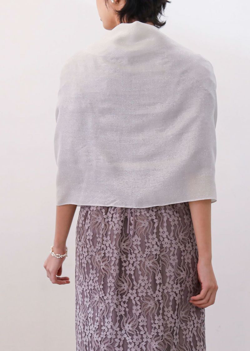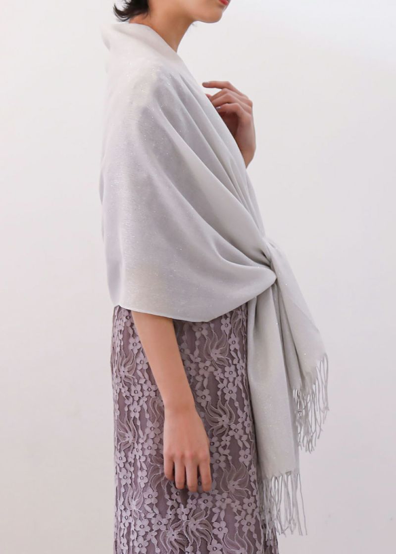 キラキラと輝くラメストールは結び方で様々な表情に結婚式・パーティーシーンはもちろん、デイリー使いにもOK。