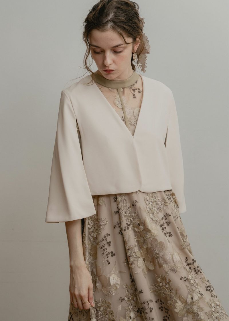 袖付きのドレスと合わせて、レイヤード感を楽しむのもおすすめ。
