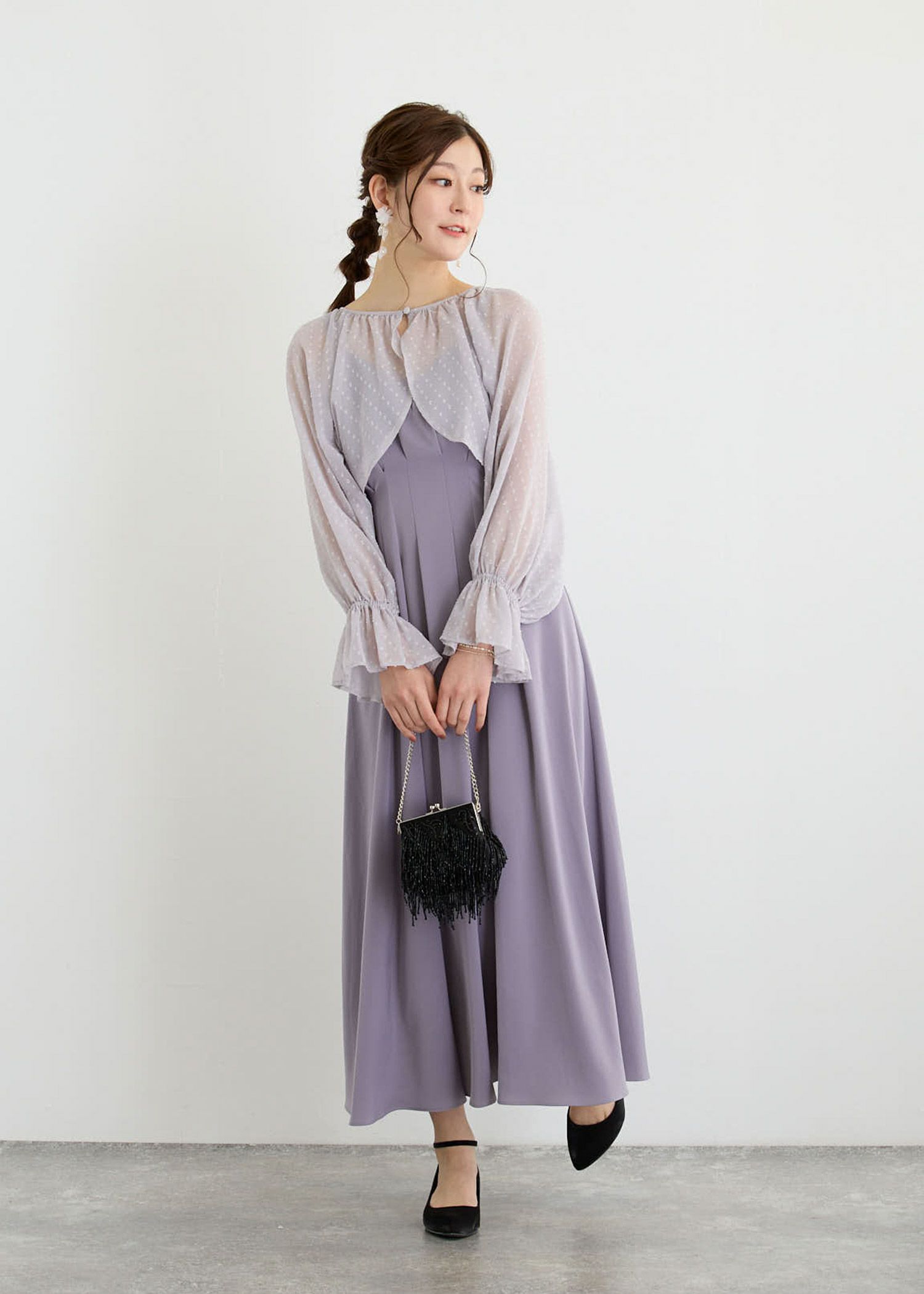 商品説明 パールボタンを飾り付けたたドット柄のシアーボレロ。 さりげないドット柄がアクセントになり、オシャレ度がぐっと上がります。 たっぷり分量のキャンディスリーブで気になる二の腕をカバーしてくれます。 羽織るだけで上品かつ華やかさを醸し出します。 ショート丈なので、どんなドレススタイルにも合わせやすいのもポイント。 お手持ちのキャミワンピース合わせもおすすめです。 しわになりにくく、かさばらないのでバッグに携帯して防寒や夏の冷房・紫外線対策にも◎ ※ハンガー掛けの商品画像が実際の商品のお色味に近くなっております。 ※商品画像は、光の当たり具合やパソコンなどの閲覧環境により、 実際の色味と異なって見える場合がございます。予めご了承ください。 こちらの商品はWeb限定商品です。 おすすめのシーン 結婚式・披露宴・二次会・同窓会・謝恩会など 多様なシーンのコーディネートに使えます。 商品詳細 【備考】 ・前つき合せくるみボタンあり ・伸縮性なし ・透け感あり ・袖口ゴム入り 洗濯方法:クリーニング店にご相談ください。 ※その他お取り扱いに関しましては、商品に付属のアテンションタグをご覧ください。 原産国:中国 お問い合わせ品番:24321 着丈袖口巾後裾巾袖丈 M:28115064 単位(cm) 着用モデル身長173cm 着用サイズMサイズ REVIEW レビュー