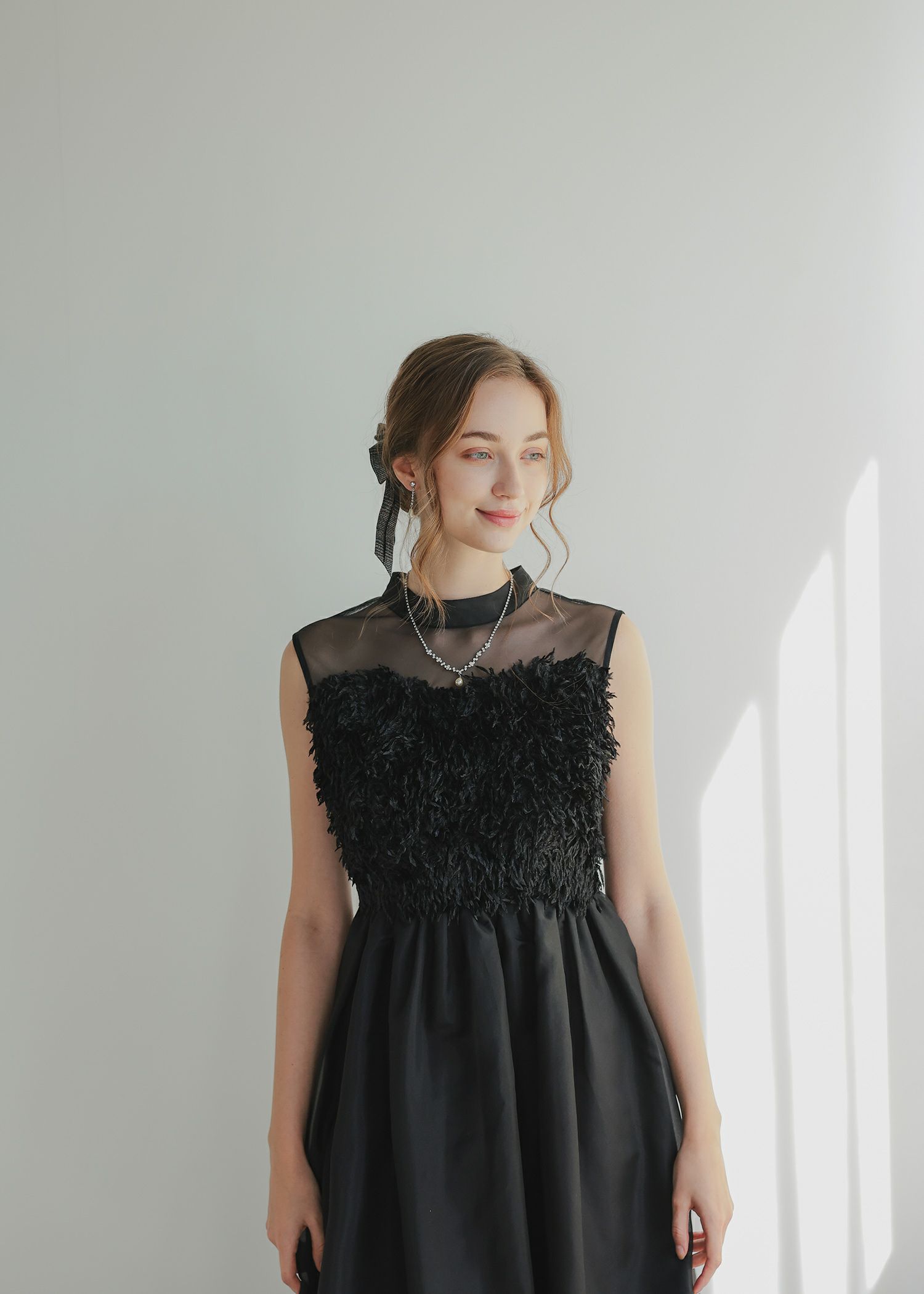 材質 表地 ファー部分 ポリエステル100% オーガンジー部分 ポリエステル100% 裏地 サテン部分 ポリエステル100% チュール部分 ポリエステル100% 厚地 薄地 透ける 透けない 柔らかい 固い 光沢 マット 洗濯方法:クリーニング店にご相談ください。 ※その他お取り扱いに関しましては、商品に付属のアテンションタグをご覧ください。
